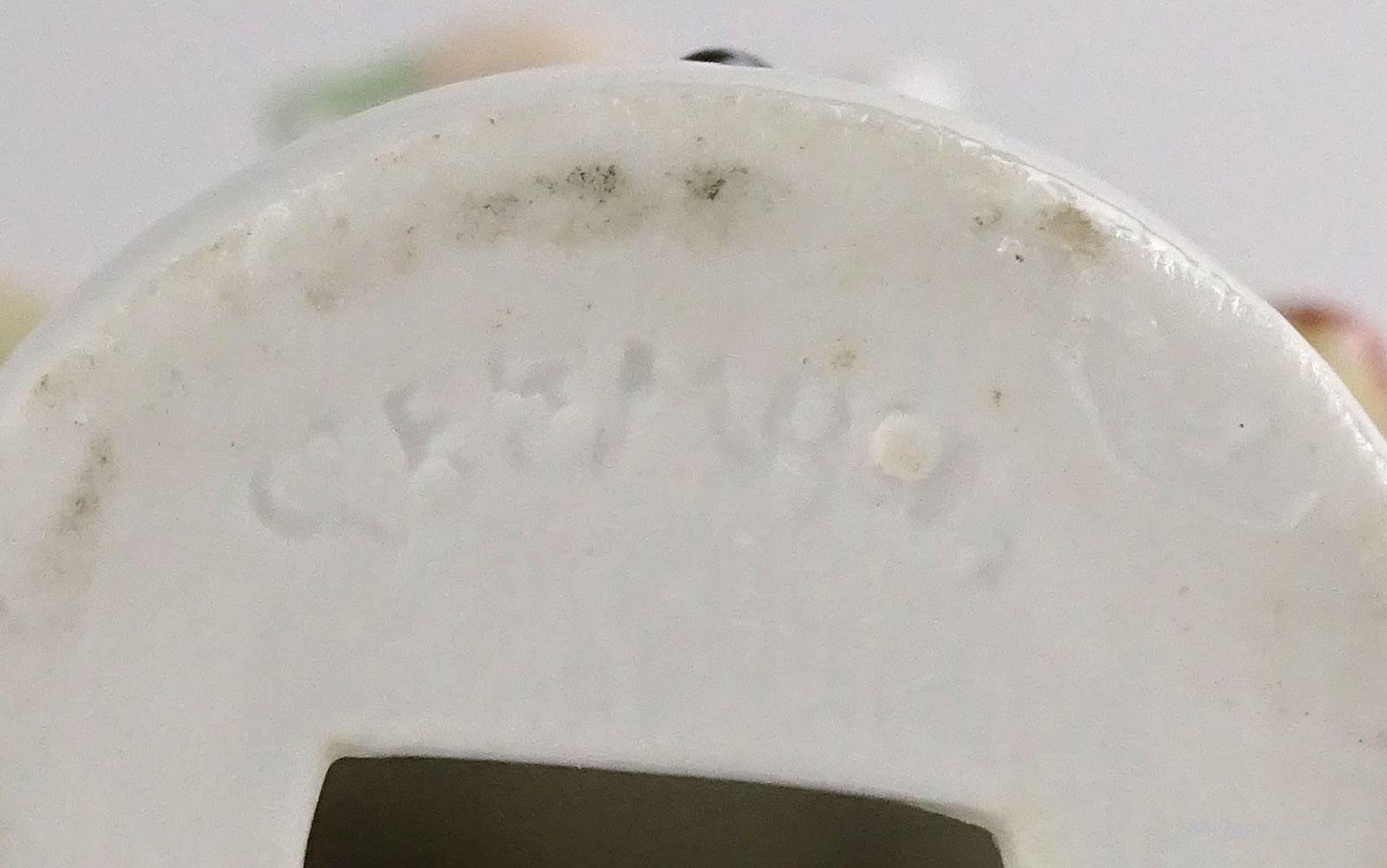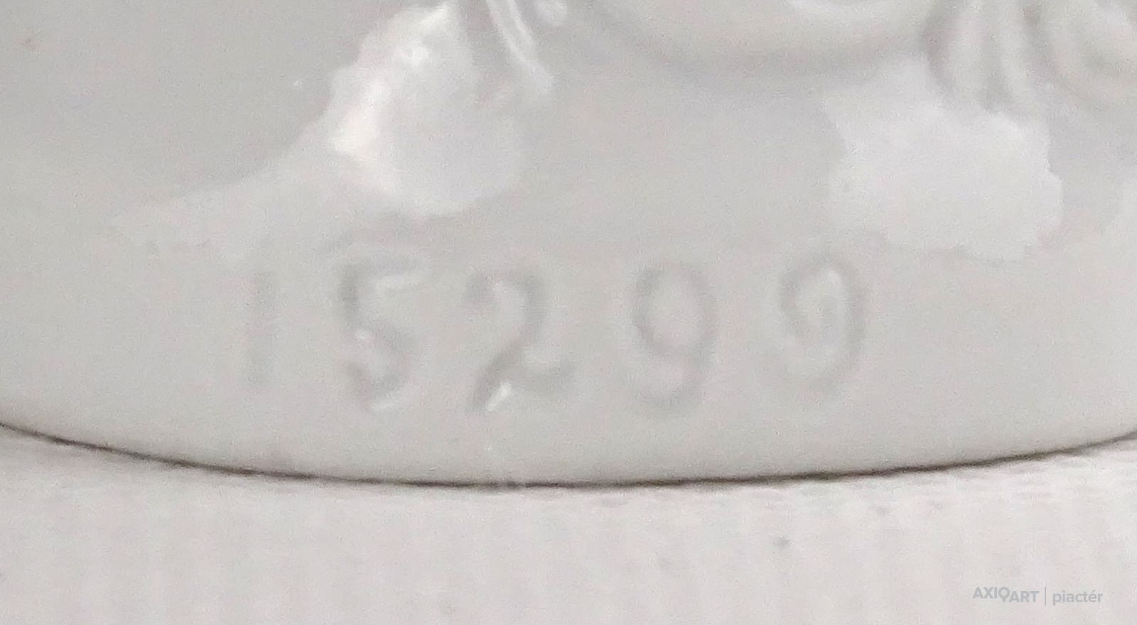 [1N579/X225] Hibátlan állapotú, jelzett porcelán figura. Ülő, galambot etető nő figura. Alján zöld Kőbányai Porcelángyár márkajelzés és felirat: KP KÉZIFESTÉS Kézifestés monogramja: ZM (Z.M.) Magasság: 12.7 cm Szélesség: 18.5 cm Súly: 0.305 kg Egy kis történelem Kőbányai Porcelángyár a hatvanas években, fekete-fehér képekből összeállítva, színezve; Fotó: ismeretlen   Az ős gyár Alois Miesbach X. Külső Jászberényi út 41. téglagyárának kibővítése révén jött létre. A termelés 1846.-ban indult meg és 1908.-ig kizárólag tégla, tetőcserép és keramit útburkoló kockákat gyártottak. A társulat a fajansz- és porcelángyárat 1908.-ban hozta létre. A termelés főként falburkoló áruk, műszaki és egészségügyi porcelánok készítésével folyt. A díszmű gyártás, bár erről pontos adatok nem állnak rendelkezésre, a húszas évek elejéig tarthatott és 1936.-ig a Porcelángyár újraindításáig megint csak ipari és egészségügyi árut termelt. 1936.-tól ismét beindult a díszműgyártás. A gyárat 1941.-ben hadiüzemmé nyilvánították, majd 1944.-ben súlyos bombatalálat érte. A termelés a szovjet parancsnokság alatt 1945.-ben indult be újra. 1949.-ben a Kőszénbánya és Téglagyár Társulat Pesten (azelőtt Drasche) államosításakor három téglagyárra, egy tűzállógyárra és a Drasche Porcelángyár Nemzeti Vállalatra osztották.   A gyár profilja műszaki porcelán, edény és díszműporcelán lett. 1949. május 31-től a Nagybátony-Újlaki Téglagyár telepén működött elektrokerámiai üzemet átadták a Porcelángyárnak. Ezzel egy időben megkezdődött Kőbányán a szteatit szigetelők és pirolit nevü hőtechnikai szigetelők gyártása is. Az elektrokerámiai (híradástechnikai) üzemet először a megszűnt edénygyár területére helyezték, később 1953 végén külön épületet kapott. Fotó: ismeretlen, 1975, a kémény mögött a magas Drasche lakóházon jól látszik a később épített felső szint, az utca felé a gyár épületén még csak a vörös csillag van, nincs ott a nagy "Finomkerámiaipari Művek", aminek a helyére a KŐPORC felirat került később. Fotó: archivum.mtva.hu, 1961, Liget utcai telephely 1950-51-ben új laboratórium épült a gyárban. A modern 5 szintes épületben az anyagvizsgáló kémiai laboratóriumon kívül itt kapott helyet a híradástechnikai fejlesztés-, és vizsgálólabor, valamint új nagyfeszültségű vizsgálólabor is. A gyárban a termelést gyáregységekbe szervezték. Így alakult ki a porcelán, a híradástechnikai és gépészeti gyáregység. A gépészeti gyáregységben a folyamatos karbantartási munkák mellett jelentős helyet foglalt el a gépfejlesztés, azaz új célgépek és kemencék tervezése és kivitelezése. A híradástechnikai gyáregység részére terveztek és készítettek számos speciális gyártó és szerelő gépet, automatákat. Fotó: ismeretlen, a massza üzem eleje Fotó: ismeretlen, a mai Porcelán utca a 70-es években 1951 Kőbányai Porcelángyár lett a gyár neve. 1954-ben a megszűnt Solus Csiszolókoronggyár kőbányai Liget utcai telepét a gyárhoz csatolták, ahol sajtolt porcelánszerelési cikkeket, porcelán díszműárut, kordierit-, és pirolit hőtechnikai termékeket állítottak elő. 1969-ben a Budapesti Porcelángyár nógrádverőcei telepét a gyárhoz csatolták, ahol laboratóriumi porcelánokat gyártottak. A Liget utcai telepet 1969-ben átadták a Hollóházi Porcelángyárnak, ezzel megszűnt a díszmű gyártás. A festést végző dolgozókkal együtt a tervező csapat is a Hollóházi Porcelángyárhoz került. A széntüzelésű, szennyező kemencéket bezárták. Fotó: ismeretlen, 1976(?), főbejárat A híradástechnikai gyáregységben a kísérleti és kutatómunka alapján megkezdték a csőkondenzátorok gyártását. Ezek égetésére előbb egy periódikusan működő, gáztüzelésű (Pb-gáz), majd egy folyamatos üzemű gáztüzelésű, tolólapos kemencét építettek. 1957-ben megkezdték a trimmer kondenzátorok gyártását. Úgyszintén eredményesen végződtek a lágymágnes-ferrit termékek gyártására megindított kísérletek is és ferrit gyártó üzem létesült. Fotó: ismeretlen, 1982 előtt 1959-60-ban jelentős beruházások kezdődtek. Megkezdődött a porcelán gyáregység rekonstrukciója. Ennek keretében újjáépítették, ill. korszerűsítették a nyersanyagtárolót és a porcelánmassza üzemet. 1970-ben sajtolómassza előkészítésére porlasztószárítási (atomizer) technológiát vezettek be. Fotó: ismeretlen, 1976(?) A gyár 1960-ban új telephelyet létesített Balassagyarmaton, ahol saját tervezésű és készítésű célgépekkel kondenzátor termékeket gyártottak. A IV. ötéves terv keretében Debrecenben és Bernecebarátiban létesült híradástechnikai üzem. Fotó: Bognár József - KŐPORC 1836-1988, 1982(?)   1982 Átnevezik KŐPORC Elektronikai Alkatrész és Műszaki Kerámiagyártó Vállalat névre a gyárat. A kilencvenes évek felé az elektronika-technikai fejlődés annyira felgyorsult, hogy a hagyományos termékek folyamatosan kiszorultak a piacról. Ez és a KGST piac összeomlása azt eredményezte, hogy a gyár fokozatosan megszűntetni kényszerült először a vidéki telephelyeit, majd Budapesten is megszűnt a híradástechnikai termékek gyártása. A porcelánszigetelő gyártmányok iránt is csökkent a kereslet, ezért a porcelán gyáregység átszervezésére is sor került. Fotó: ismeretlen, 1982 előtt, még a FINOMKERÁMIAIPARI MŰVEK felirat látható 1990 Megkezdődött a privatizáció. A minisztériumi felügyelet átkerült az Állami Vagyonügynökséghez. Az új vevő a termelést leállította és nem is kívánta folytatni. Az értékes berendezések jelentős része tönkrement, a kemencéket lebontották, fejlesztési laboratóriu