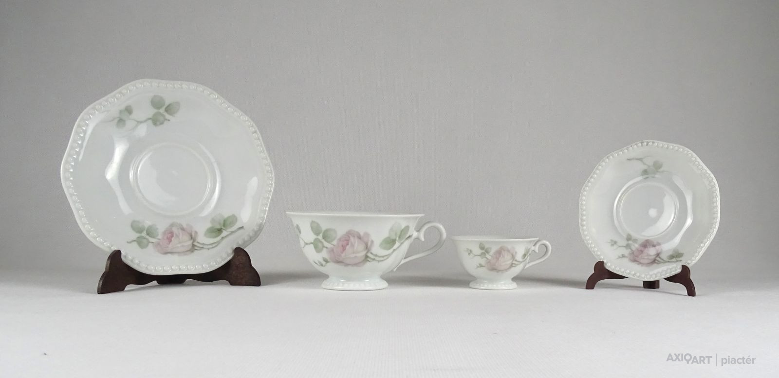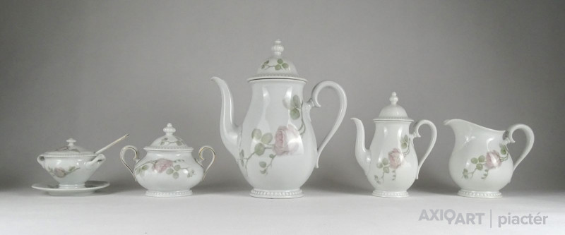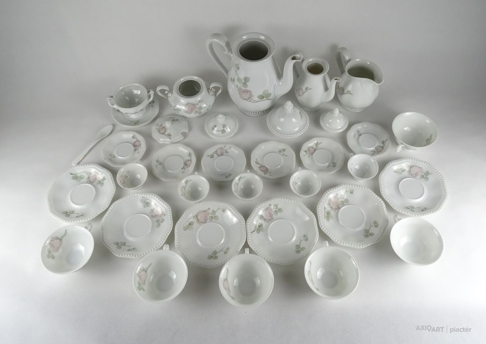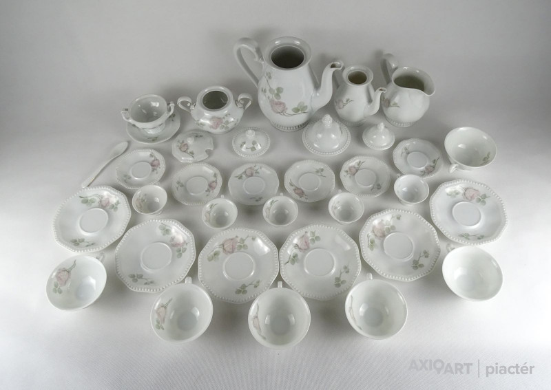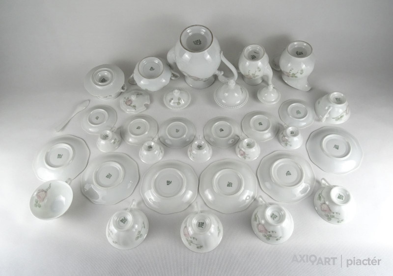 Hibátlan állapotú, jelzett rózsadíszes 29 darabos porcelán készlet.