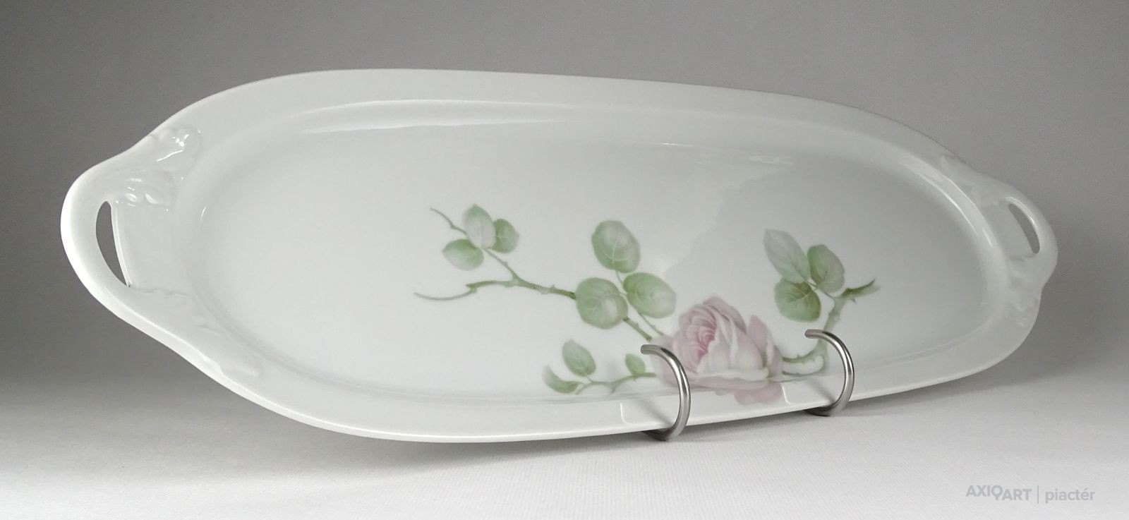 Hibátlan állapotú, jelzett rózsadíszes nagy méretű porcelán kínáló tál, tálca.
