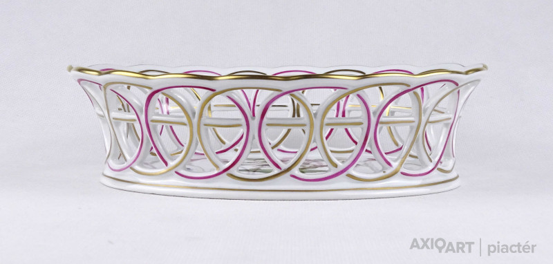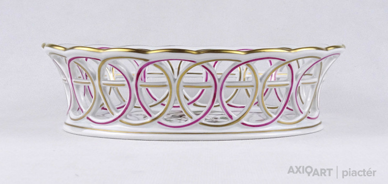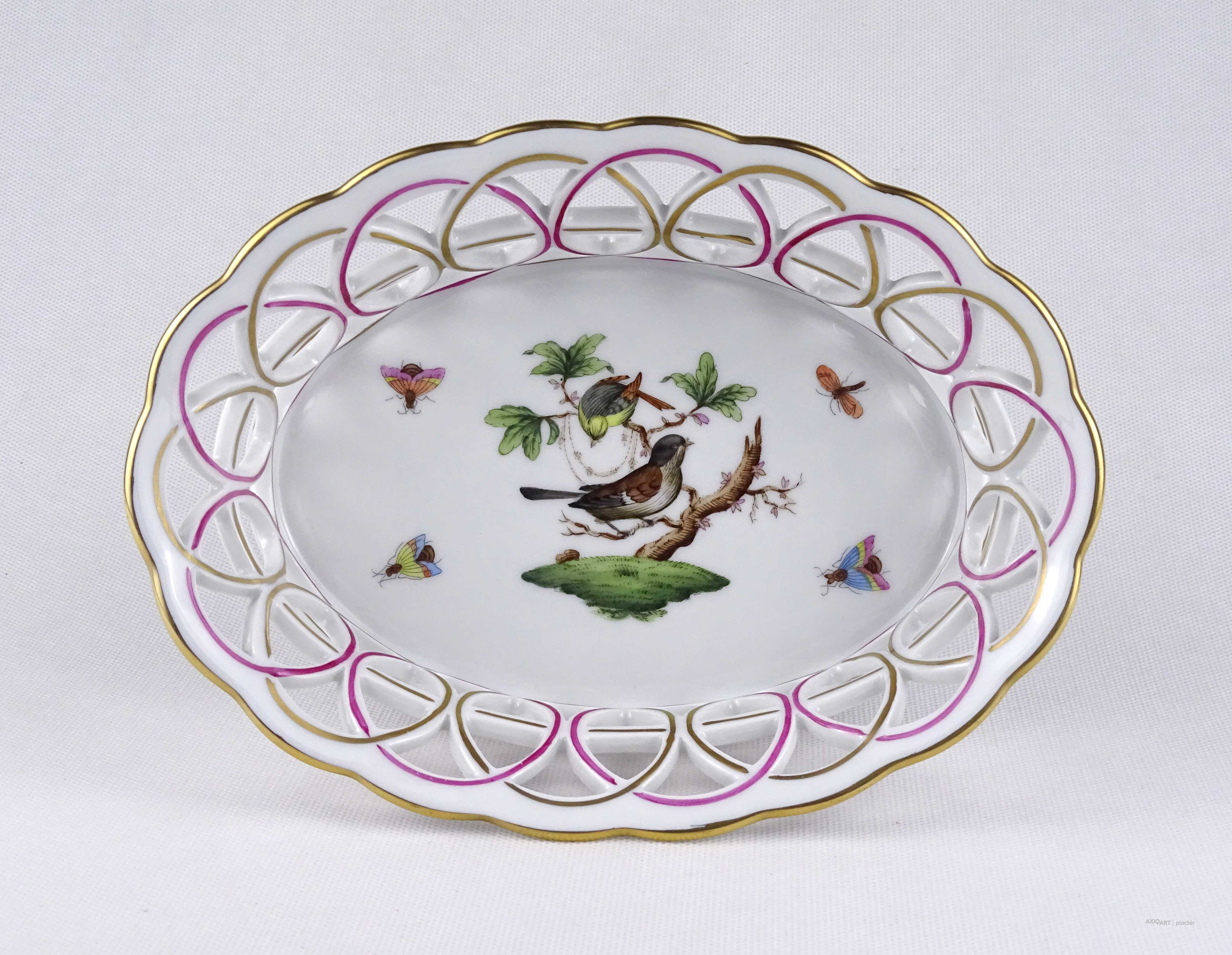 Hibátlan állapotú, áttört díszítéses, aranyozott szélű, Rothschild mintás Herendi porcelán asztalközép kínáló tál.