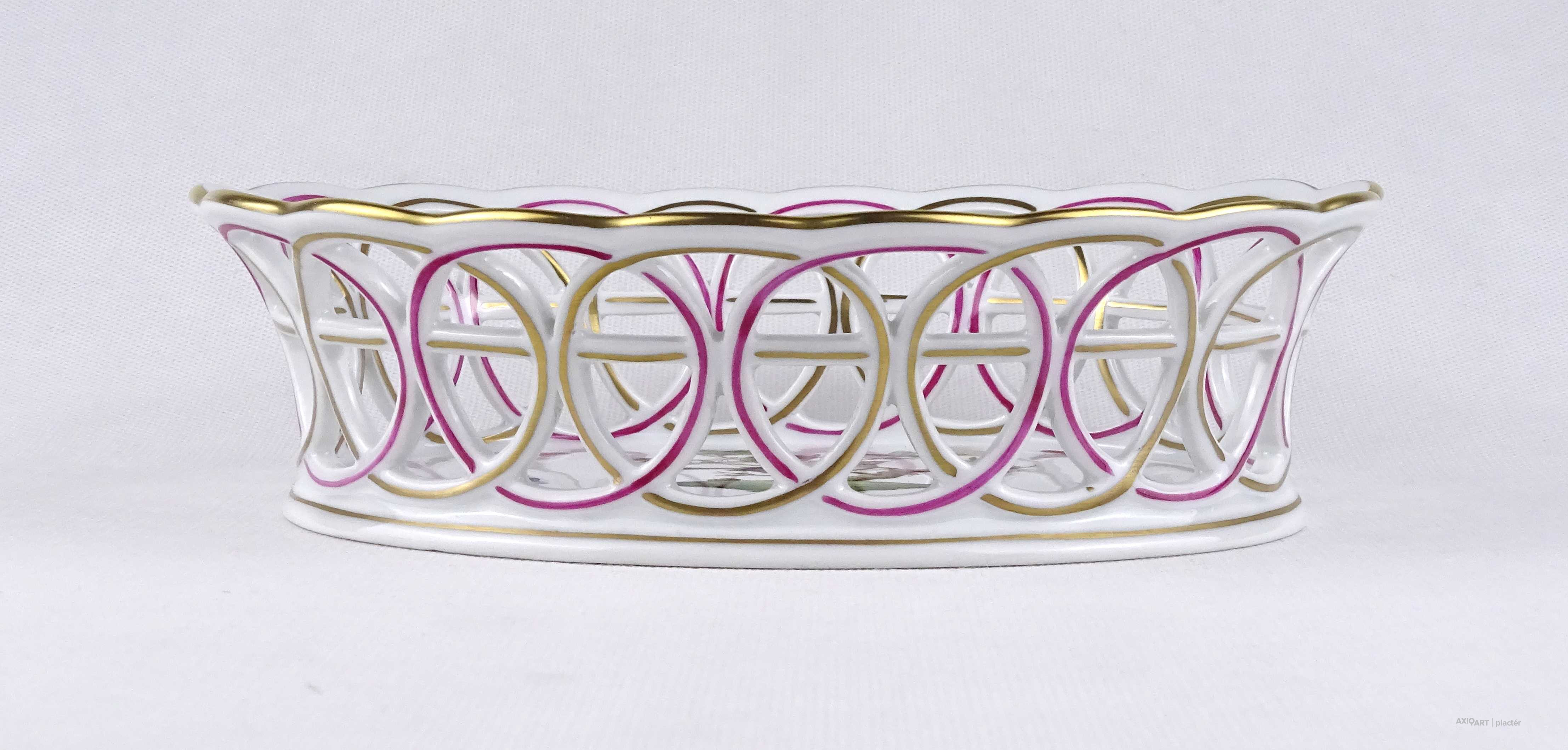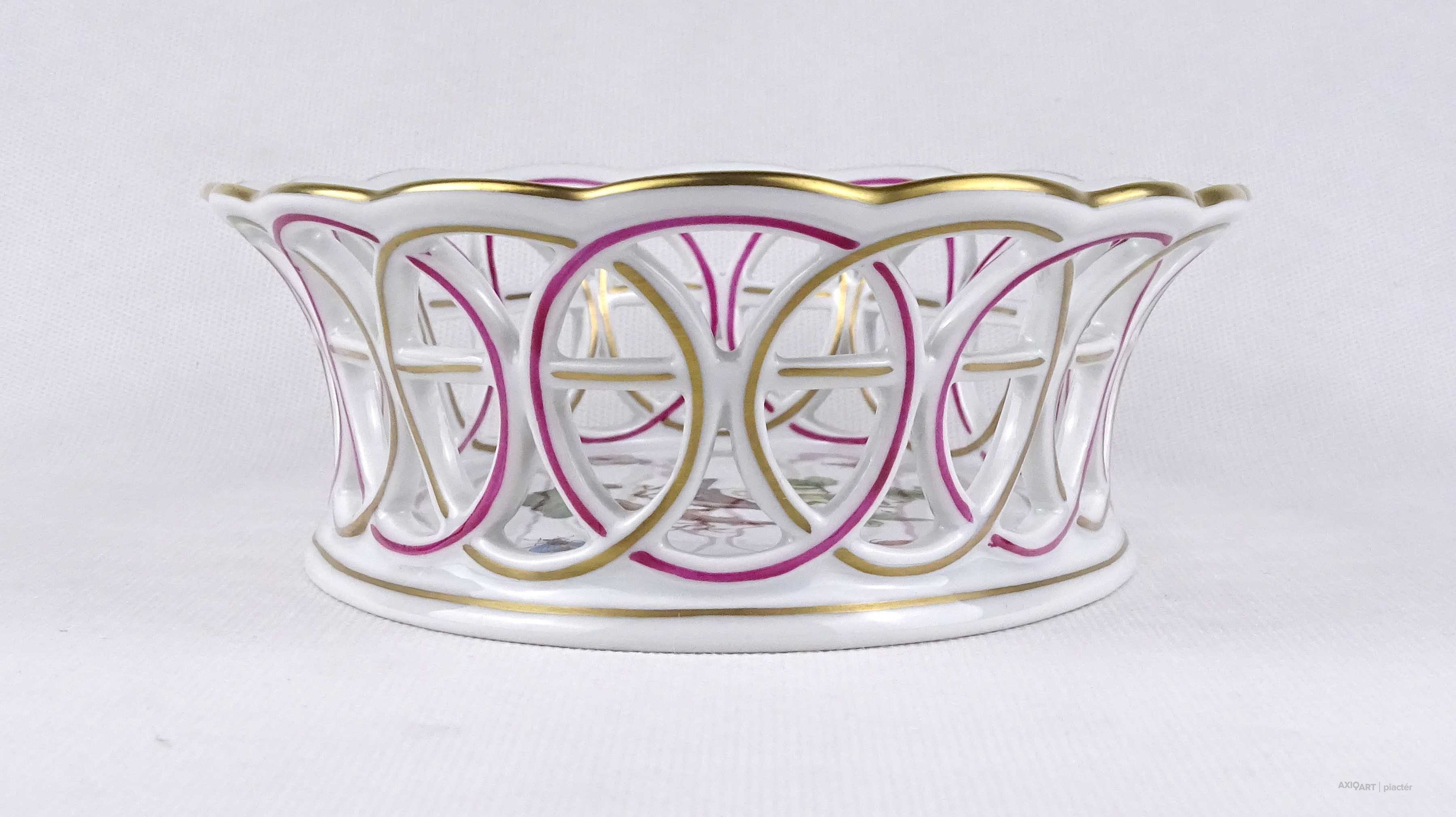 Régi Rothschild mintás áttört herendi porcelán kosár