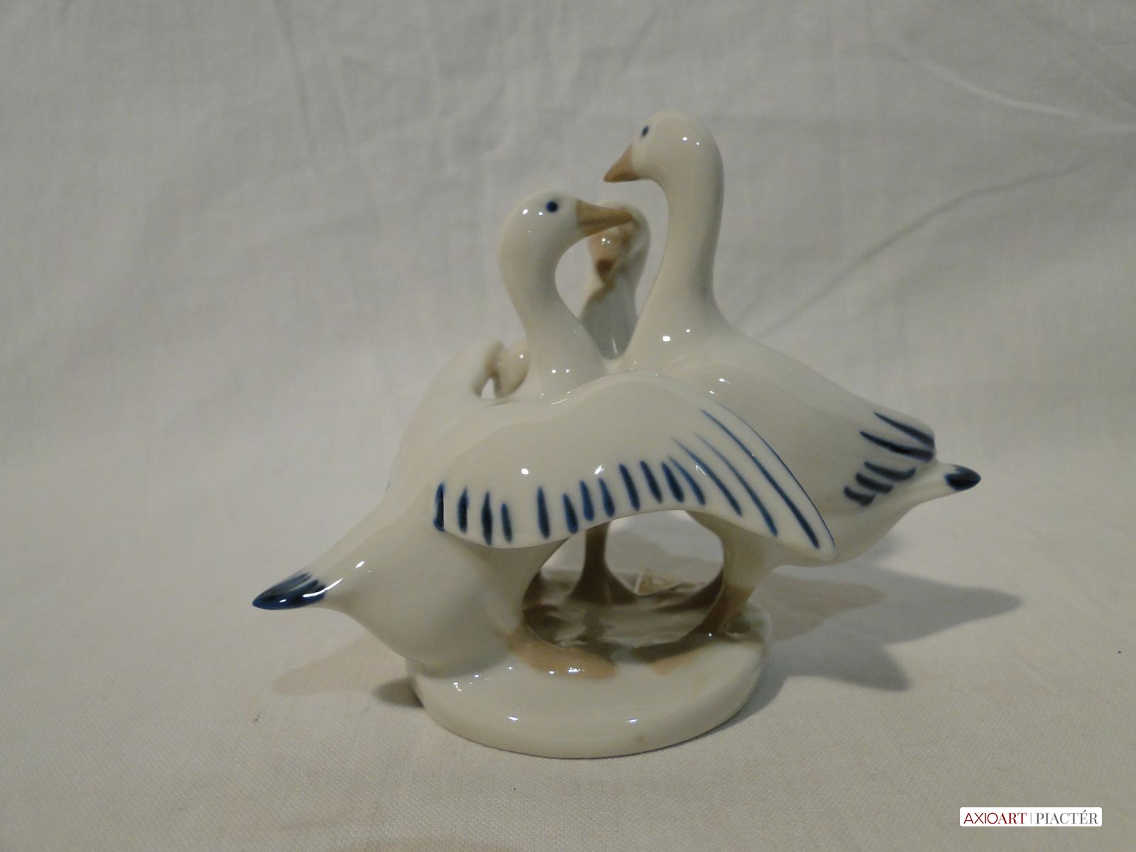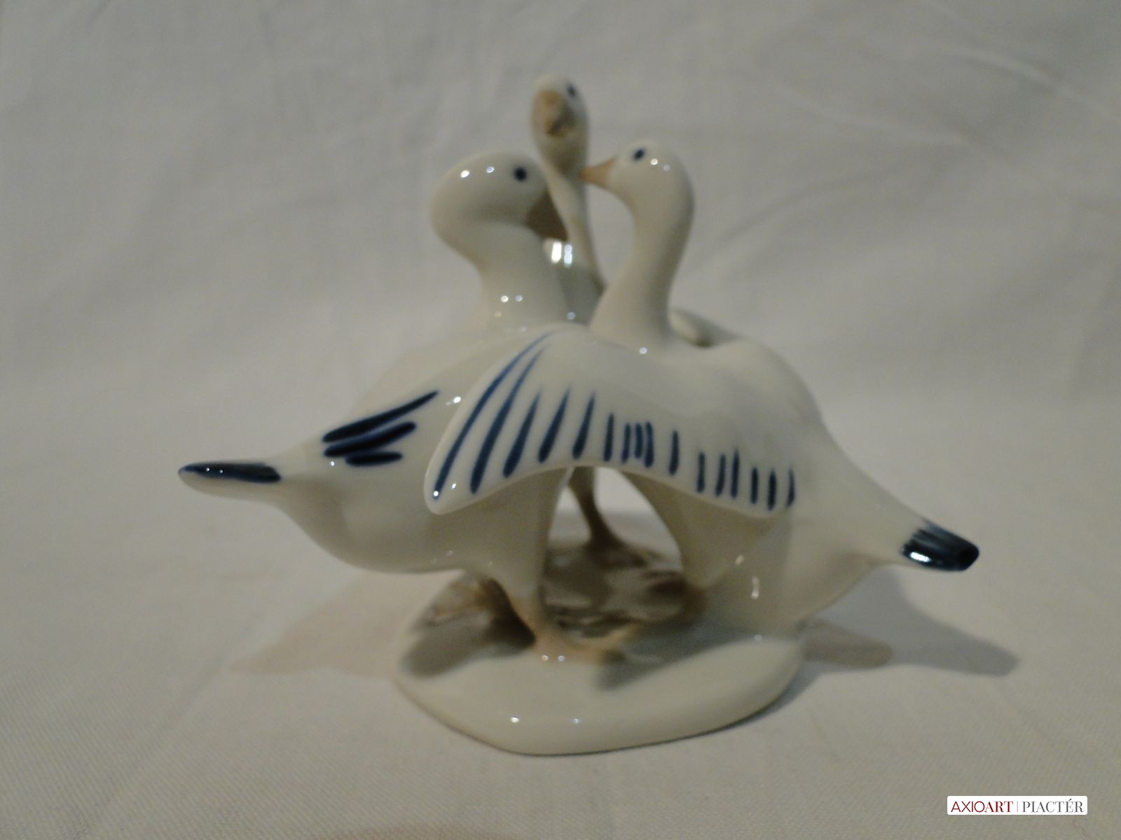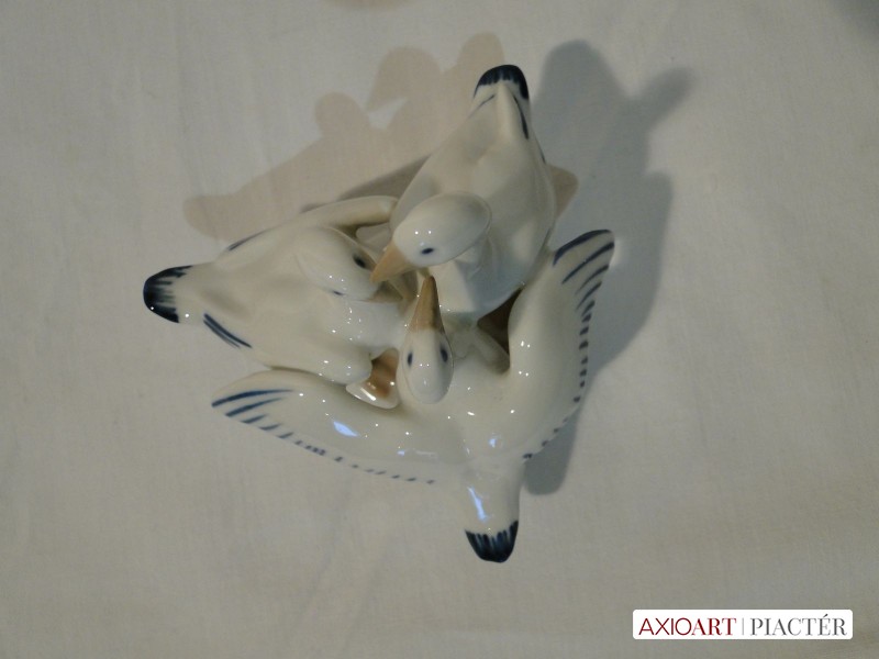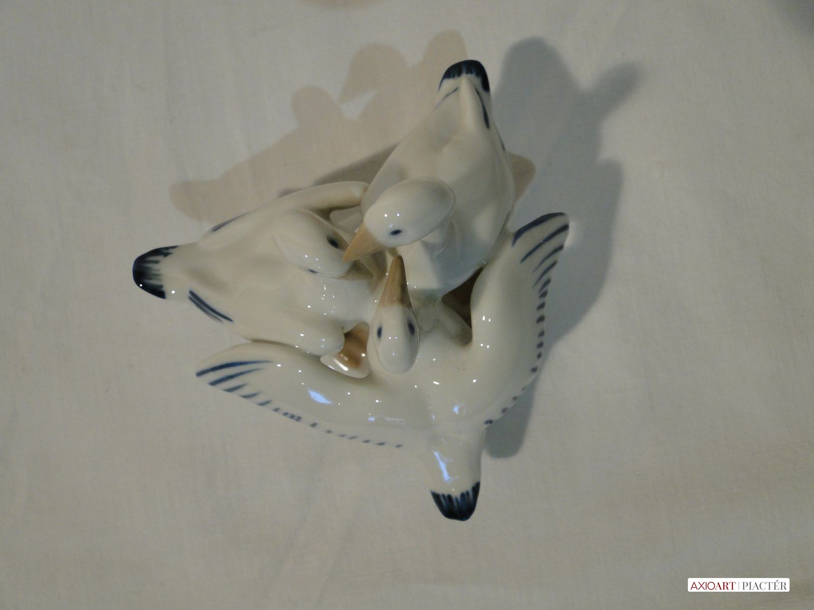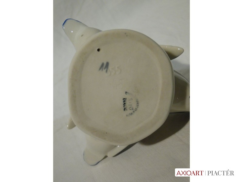 [5219/UZ-K] Hibátlan állapotú, régi jelzett, kézi festéssel díszített porcelán csoport talapzaton. A talapzaton papír vignetta: BOHEMIA ROYAL DUX Alján zöld márkajelzés: ROYAL DUX CZECHOSLOVAKIA Magasság: 9.5 cm Szélesség: 11.5 cm Súly: 0.166 kg