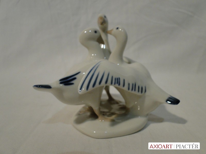 Hibátlan állapotú, régi jelzett, kézi festéssel díszített porcelán csoport talapzaton.