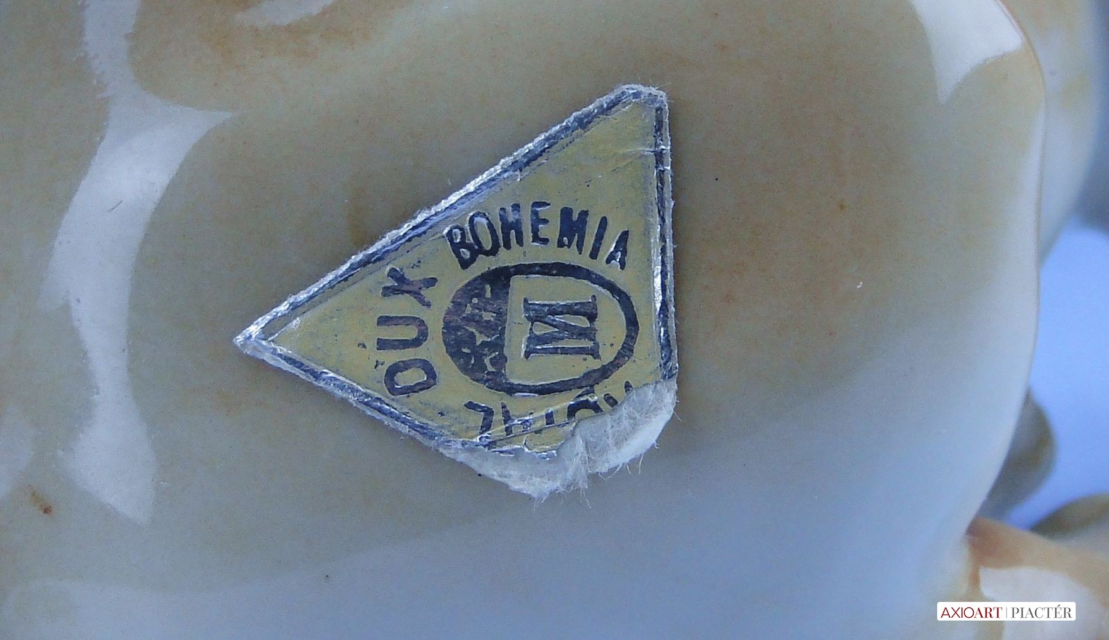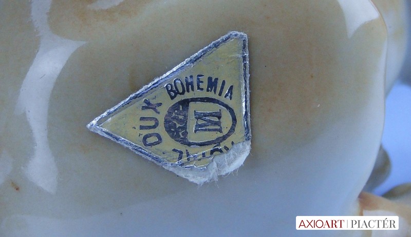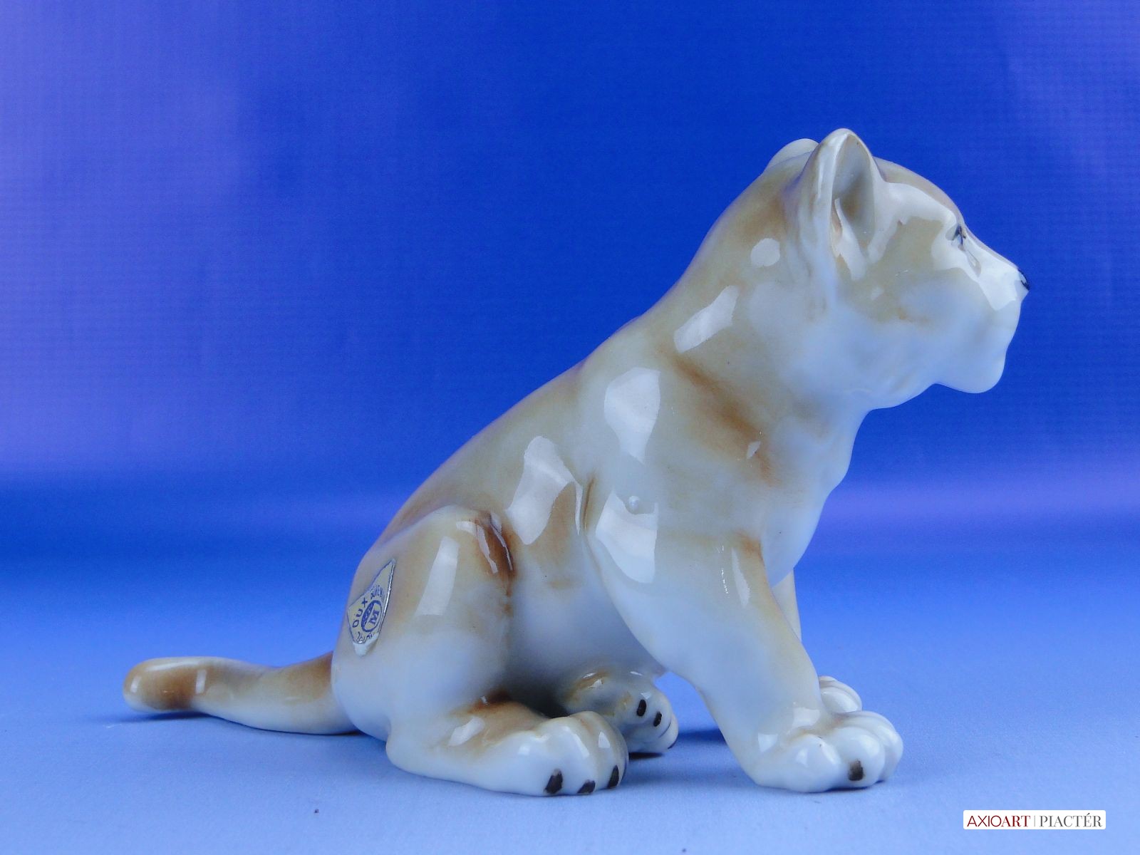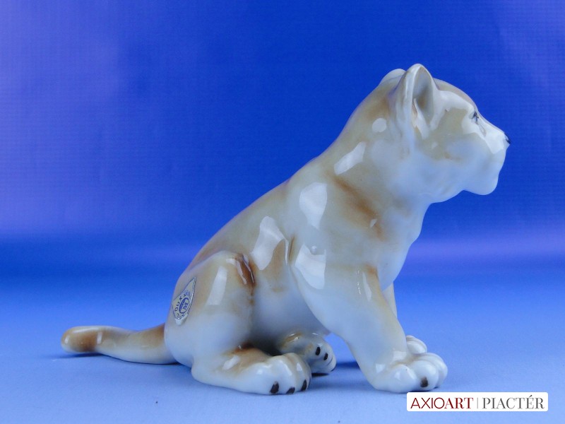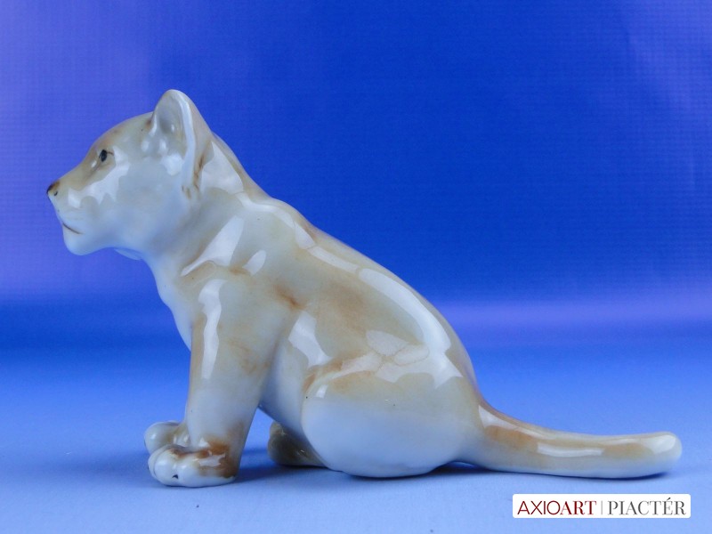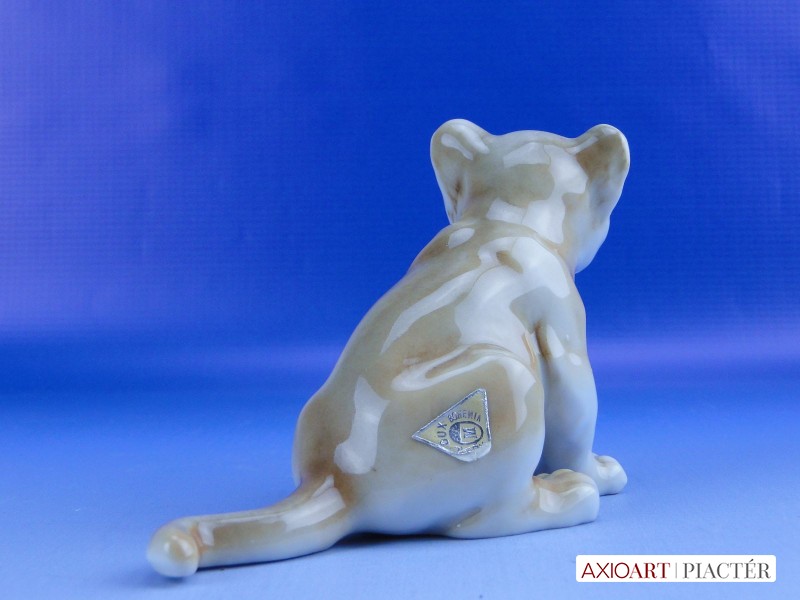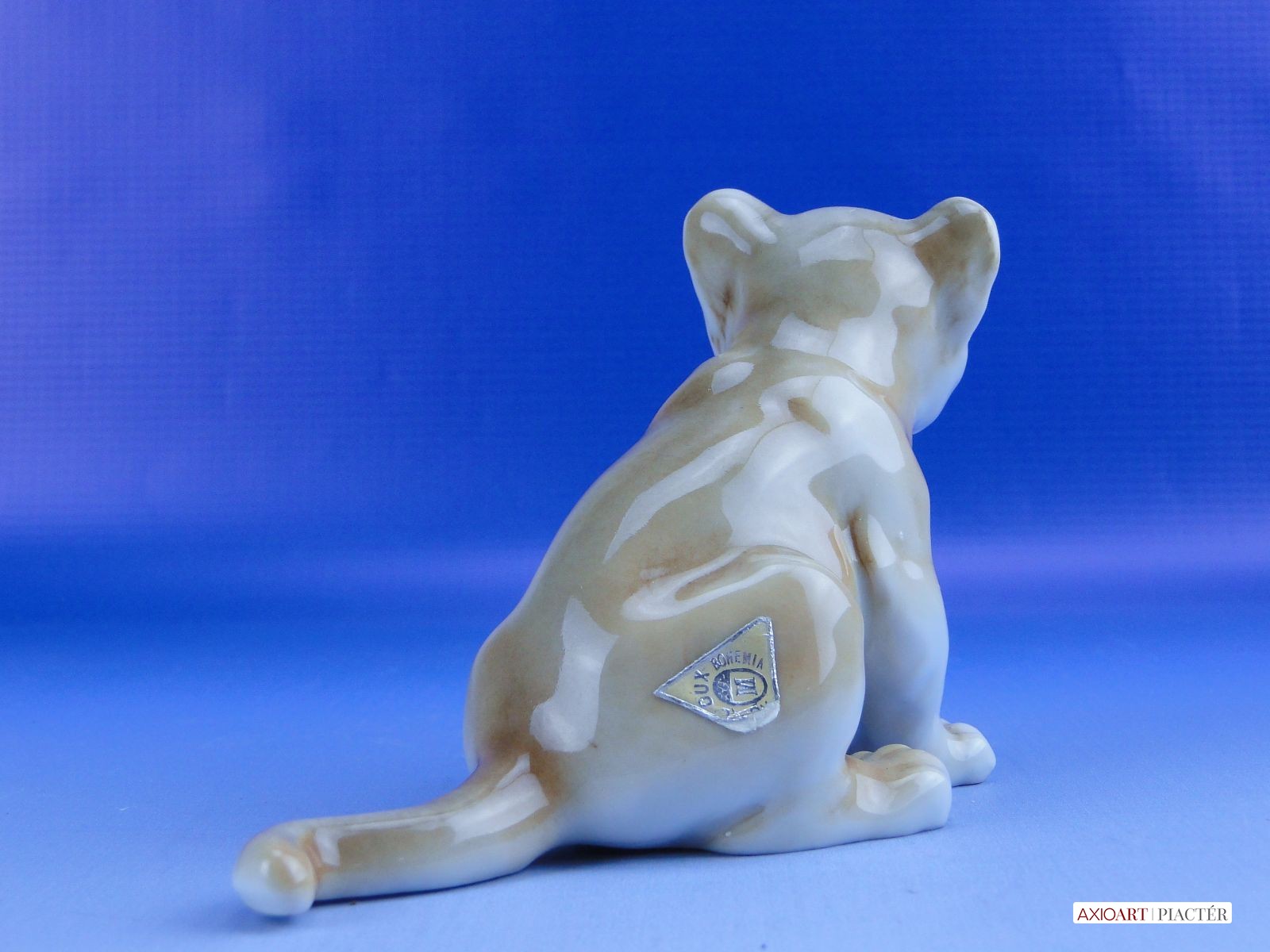 Hibátlan állapotú, jelzett cseh porcelán oroszlánkölyök szobor.