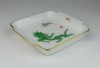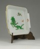 [0R094/X059] Szép állapotú, aranyozott szélű, gyönyörű, kézi festésű, zöld sárkányos kisméretű porcelán kínáló tál, gyűrűtartó tál, tálka. Alján kék kardos Meisseni márkajelzés, lásd fotó. Formaszám: N234 Szélesség: 10 cm Hosszúság: 10.5 cm Súly: 0.182 kg