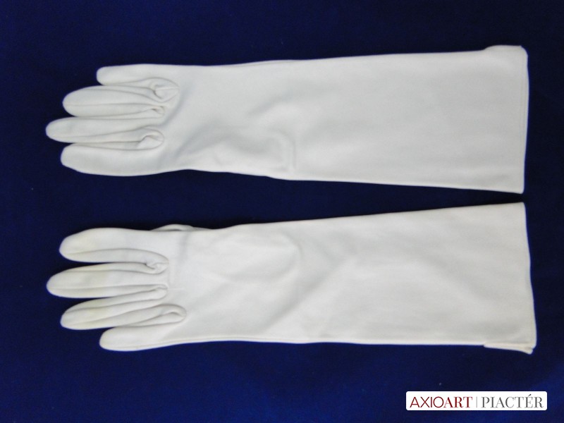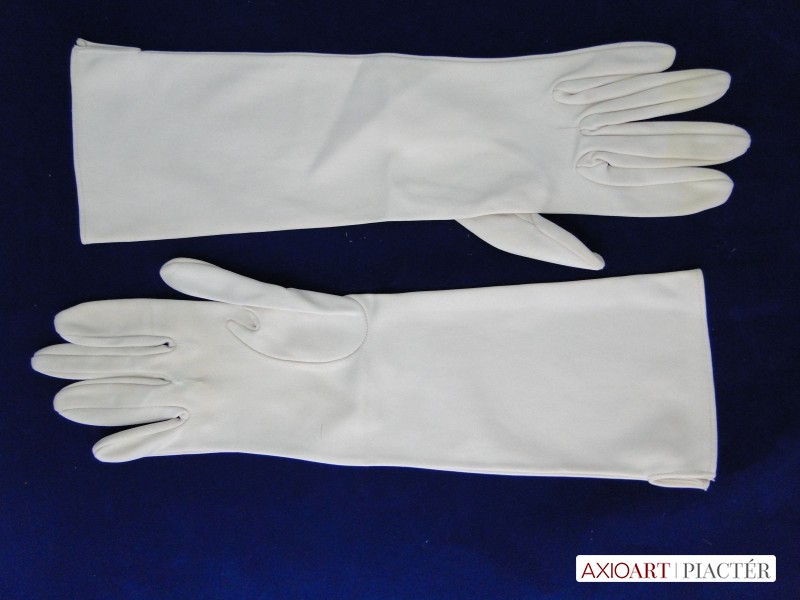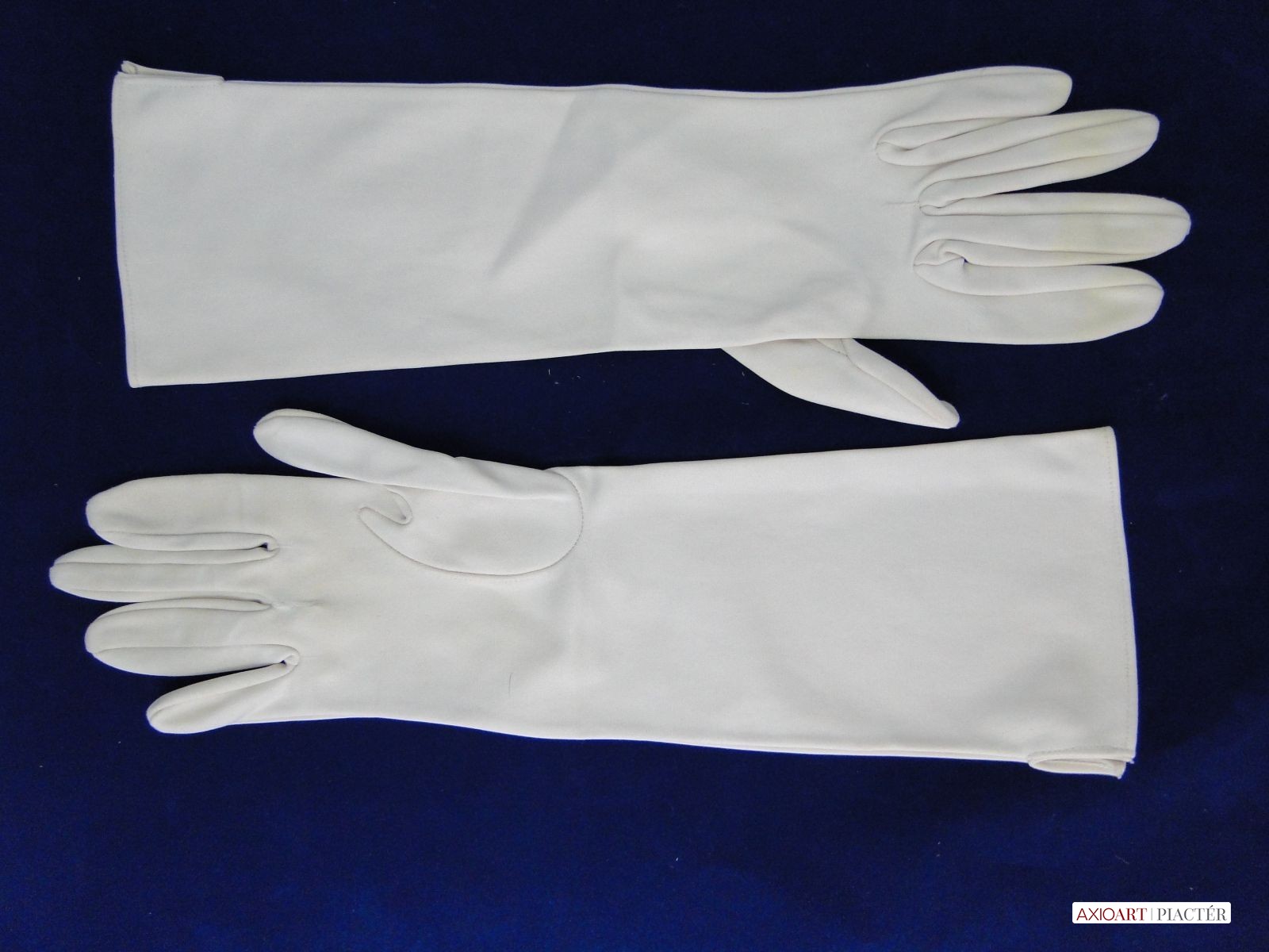 Szép állapotú kisméretű elegáns krémszínű női selyemkesztyű, báli kesztyű.