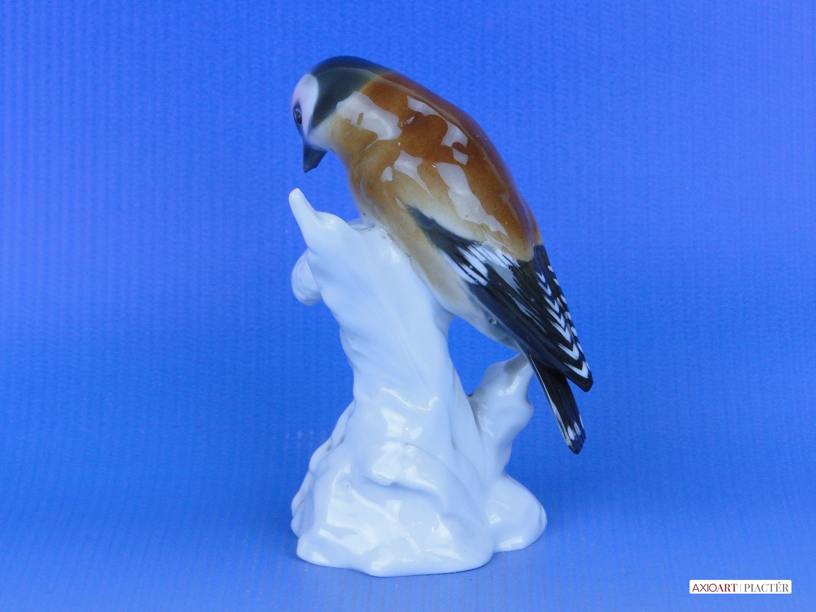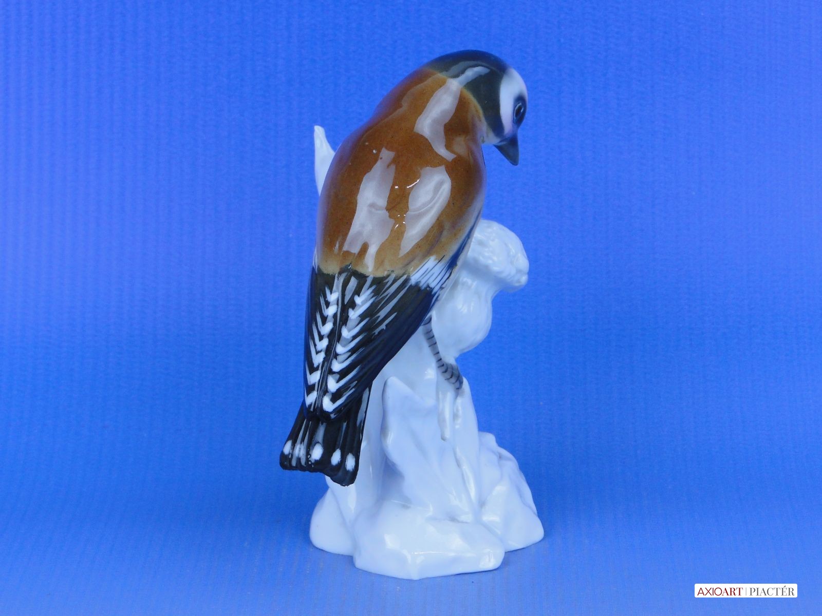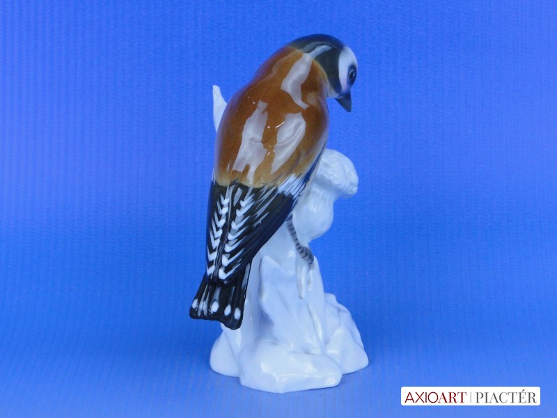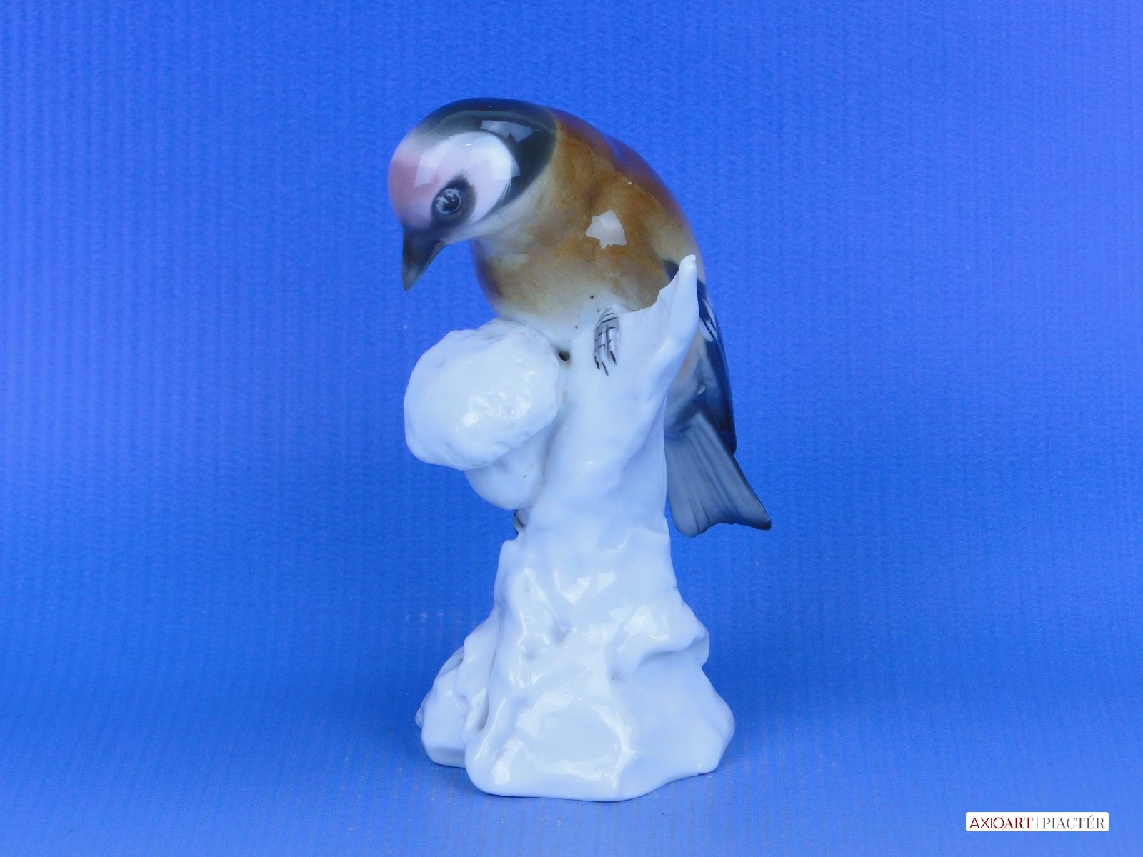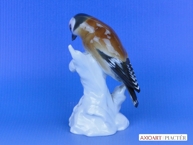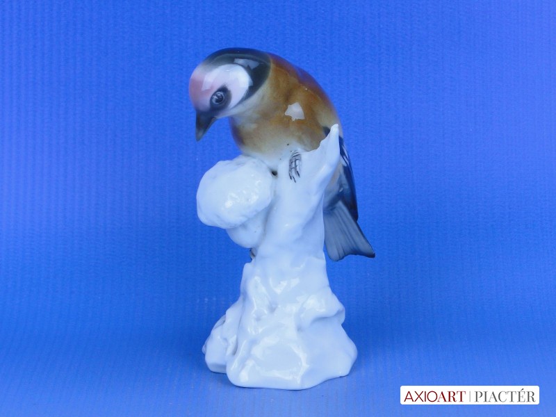 Hibátlan állapotú, talapzaton álló, kézi festéssel díszített porcelán sármány, madár.