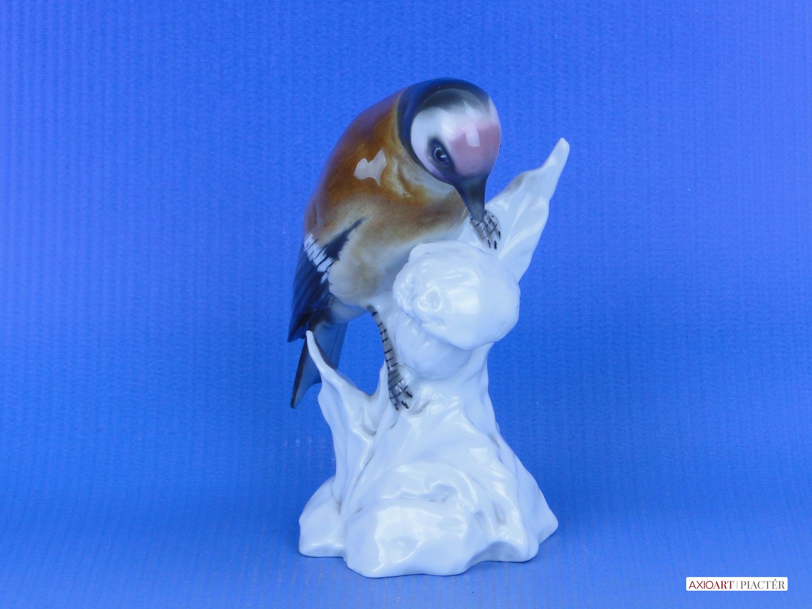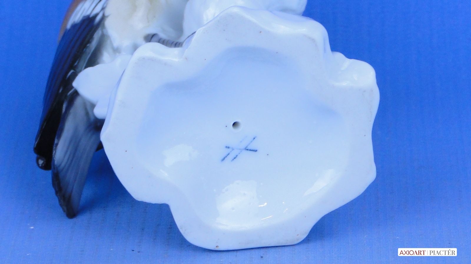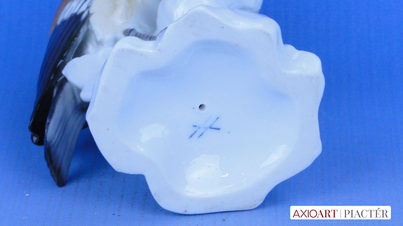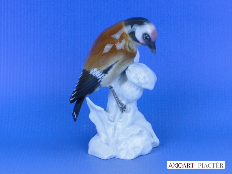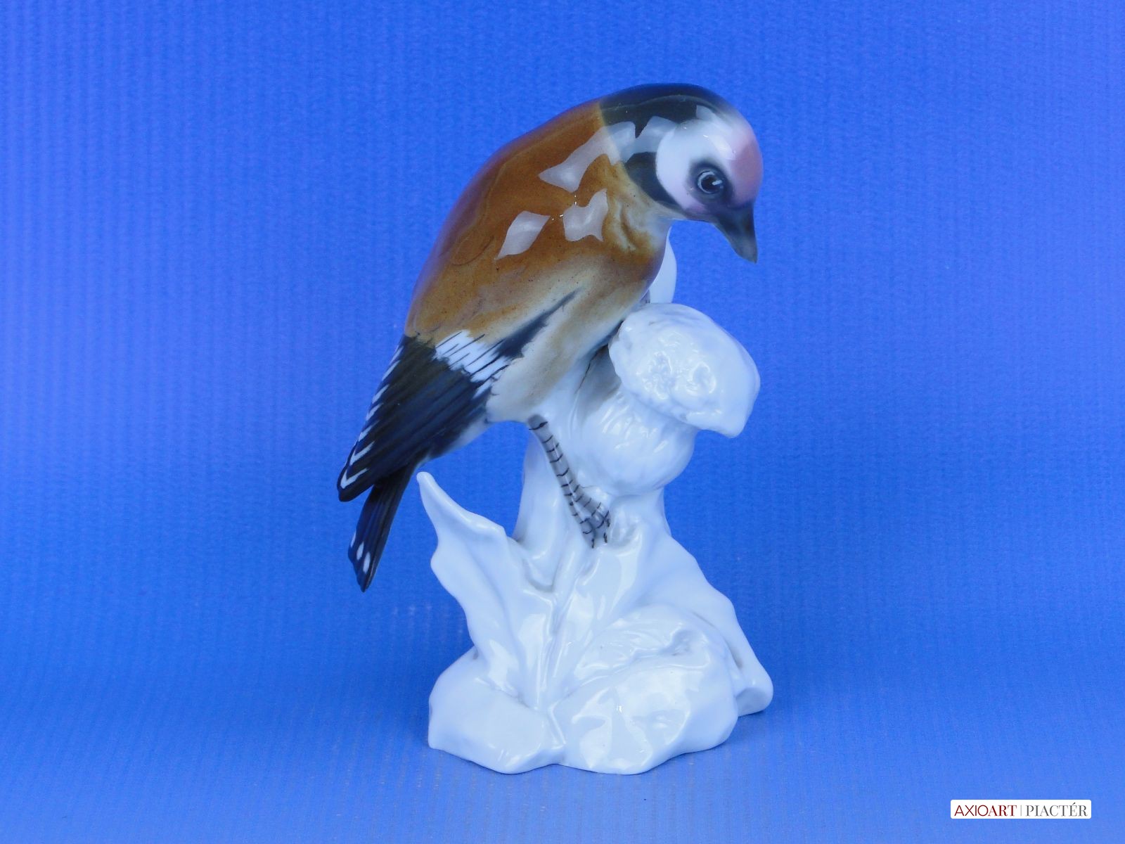Hibátlan állapotú, talapzaton álló, kézi festéssel díszített porcelán sármány, madár.
