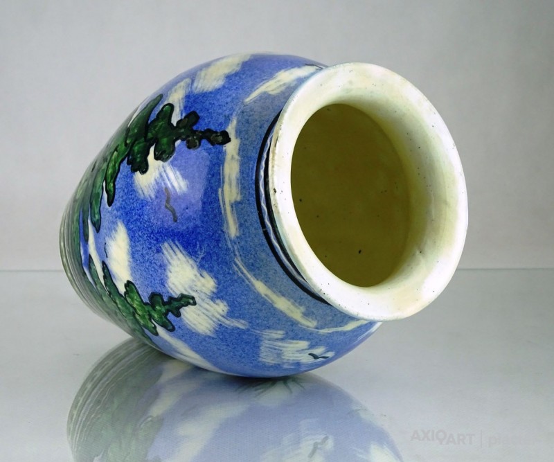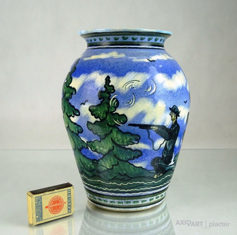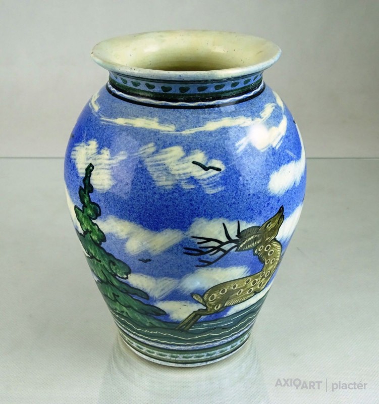 Hibátlan állapotú, kézi festéssel díszített kerámia váza.