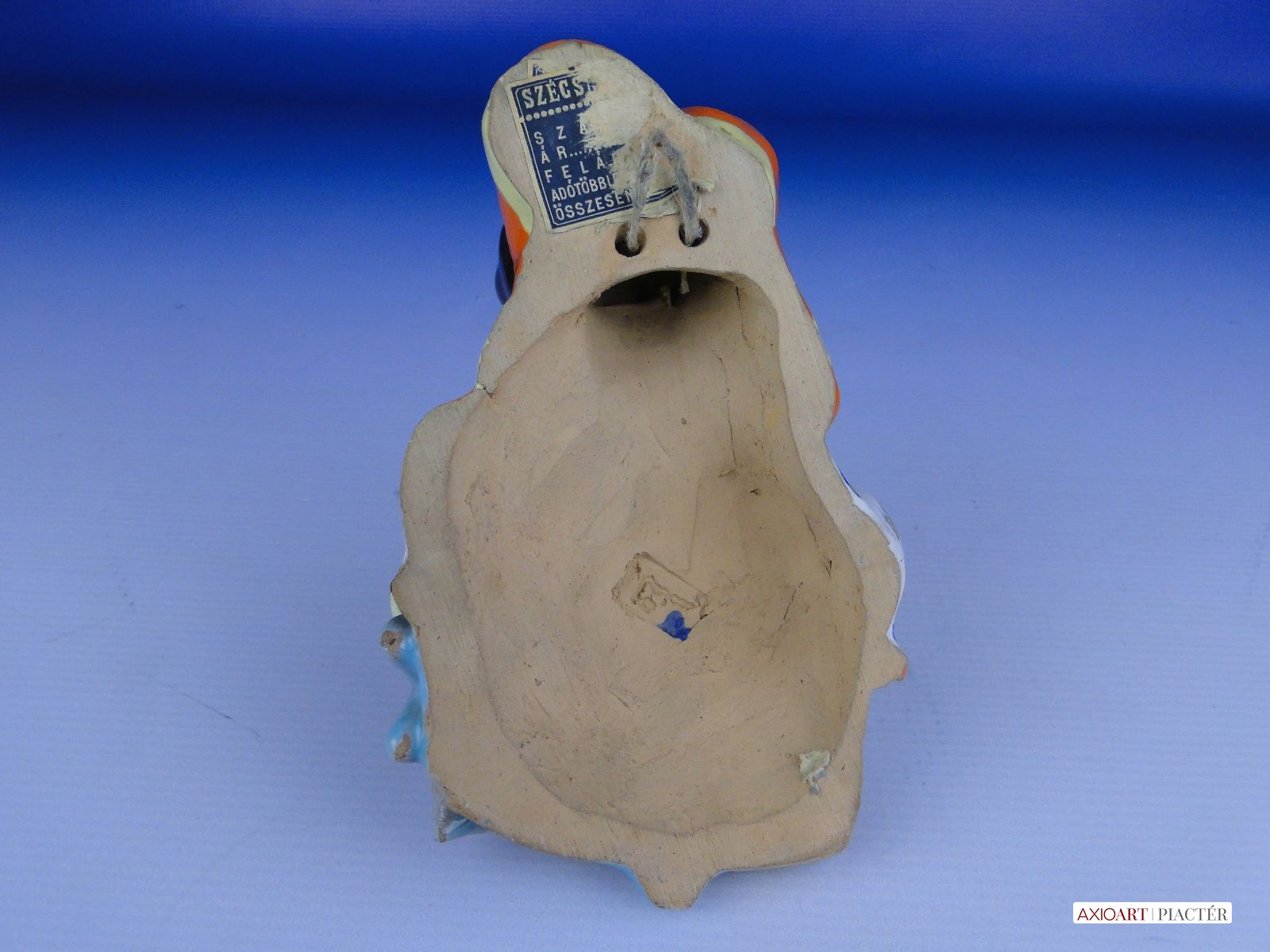 [1T107/Z029] Régi, szép állapotú kézzel festett három darab orientalista terrakotta kisplasztika, mellszobor. - 1 darab sárga ruhás, turbános szerecsen férfi büszt (20 x 12 x 23 cm) Vállán jelzés: IFJ. VASTAGH GY. - 1 darab kék ruhás, turbános szerecsen férfi büszt (17.5 x 15 x 23.5 cm) Vállán repedés, lásd fotó. - 1 darab barna ruhás szerecsen férfi büszt (19 x 15 x 23.5 cm) Vállán pecsételt és kopottas jelzés: IFJ. VASTAGH GY. ALGIR 1898 Súly: 3.945 kg Vastagh György (szobrász) Vastagh György Született 1868. szeptember 18. Kolozsvár Elhunyt 1946. június 3. (77 évesen) Budapest Állampolgársága magyar Nemzetisége magyar Házastársa Benczúr Olga Gyermekei Vastagh Éva Vastagh László Szülei Vastagh György Foglalkozása szobrász Sírhelye Fiumei Úti Sírkert (37/1-1-32) A Wikimédia Commons tartalmaz Vastagh György témájú médiaállományokat. Sablon • Wikidata • Segítség Ifjabb alsó-torjai Vastagh György (Kolozsvár, 1868. szeptember 18. – Budapest, 1946. június 3.) magyar szobrászművész. Az erdélyi Háromszékről származó Vastagh művészcsalád különböző műfajokban alkotó tagjai három generáción keresztül, százhúsz éven át voltak jelen a 19-20. század magyar képzőművészetében.  Családja Alsó-torjai székely lófő eredetű családból származott. Ősei 1661 körül a tatárdúlást követő pestis elől menekülve Szegeden telepedtek le, az ottani anyakönyvekben először 1667-ben fordul elő nevük. Nagyapja Vastagh János szegedi hajósgazda, apja id. Vastagh György festőművész, édesanyja Schell Jozefin, bátyja Vastagh Béla jogász és Vastagh Géza festőművész, sógora Kenyeres Balázs orvosprofesszor. Ifjabb Vastagh György 1900-ban kötött házasságot Benczúr Gyula lányával, Benczúr Olga képző- és iparművésszel. Három gyermekük született. Lánya, Vastagh Éva és fia, Vastagh László szobrászművészek voltak, kisebbik fia, Pál (közlekedési mérnök) a második világháborúban halt meg.  Tanulmányai Első mestere a nála mindössze egy évtizeddel idősebb Zala György volt. 1889 és 1891 között Münchenben a Képzőművészeti Akadémián tanult, előbb rajzot Gabriel Hacklnál, majd mintázást Syrius Eberlénél. 1893-ban tanulmányúton járt Párizsban, ahol Emmanuel Fremiet és Alexandre Falguere  szobrászokkal állt kapcsolatban. 1898-ban  négy hónapot töltött Algériában és Tunéziában, állami ösztöndíjjal ott tevékenykedő bátyjához, Gézához csatlakozva. Itt mintázta arab és néger portréit, továbbá egy teveszobrot.  Művészi pályafutása Tevehajcsár, 1893. Ifj. Vastagh György műtermének részlete az Árpád szoborral Első nyilvánosan felállított munkája a Pápai honvédemlék (1889), az ihászi csatát idéző bronz reliefjével és oszlop tetején szétterjesztett szárnyú turulszobrával. Részt vett a Kolozsvár város által kiírt Mátyás király szoborpályázaton, melyet Fadrusz János nyert meg. A Millenniumi kiállításra ötven tenyészállatszobor készítésével bízta meg a Földművelési Minisztérium. Ezeket az állami ménesbirtokokon – Bábolna, Kisbér, Mezőhegyes, Fogaras – mintázta. Az 1900-as párizsi világkiállításra a minisztériumtól újabb megrendelést kapott, a legkiválóbb nagy- és kistenyésztők állatainak megmintázását. Szobrait aranyéremmel jutalmazták. 1902-ben avatták fel a Budavári Palota területén, a lovarda előtt felállított másfélszeres életnagyságú Csikós szobrát, egyik főművét. Talapzatát a palota építésze Hauszmann Alajos tervezte. A II. világháborúban megsérült szobor restaurálás után 1983-ban került jelenlegi helyére, a Magyar Nemzeti Galéria B épülete előtti Hunyadi-udvarra. Fél életnagyságú változatát Párizsban a világkiállításon aranyéremmel díjazták. A londoni British Museum is vásárolt állatszobraiból, ezek egy része ma a Londoni Természettudományi Múzeum (Natural History Museum) gyűjteményében található. 1901-ben kapott megbízást Bethlen Gábor szobrának elkészítésére, melyet 1903-ban a Köröndön állítottak fel, ma a Hősök terén a millenniumi emlékmű egyik alakja. Ez időszakban az Állatorvosi Főiskolán lóanatómiai tanulmányokat készített grafikában és plasztikában, ezeket Zimmermann Ágoston szemléltető tananyagként alkalmazta. Ekkor készültek anatómiai tanulmányai Kincsemről, ott őrzött csontváza alapján. A nemzetközi vadászati kiállításon (1910, Bécs) kutyaszobraival aratott sikert. Részt vett a budapesti Bazilika szobrászati díszítésében (1905), a budapesti Széchenyi gyógyfürdő kupolacsarnokának egyik tritónja (1909–1913) is az ő nevéhez fűződik. II. Rákóczi Ferenc lovas szobrát Szegeden, a Széchenyi téren állították fel 1912-ben. Árpád fejedelem lovas szobrának felállítása Munkácson az I. világháború miatt meghiúsult, kisplasztikai változata a Magyar Mezőgazdasági Múzeumban látható. A múzeum felkérésére mintázta a Négyesfogat szoborcsoportot Dőry Vilmosné leperdi birtokán 1912-ben, a Négyökrös szántást Mezőhegyesen 1913-ban, továbbá szintén a Dőry-birtokon, a Mezőgazdasági kiállításon díjnyertes Cepedli tehén szobrát 1925-ben. Ez évben készült Pázmány Péter emlékszobra a nevét viselő tudományegyetem számára (központi épület), ma Piliscsabán a katolikus egyetemen található. Lourdes-i Mária szoborpályázaton nyertes alkotása (1925) a Gellért-hegyi Sziklatemplomban állt (eltűnt). A létrehozandó kairói Mezőgazdasági Múzeum számára 1931-32-ben közel 50 egyiptomi juh-, szarvasmarha- és lószobrot mintázott fiával, Lászlóval együtt. Görgey Artúr másfélszeres életnagyságú lovas szobrát 19