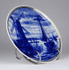 Régi, arannyal és kobaltkékkel díszített porcelán dísztál, fali dísz tányér. Akasztási lehetőséggel rendelkezik.