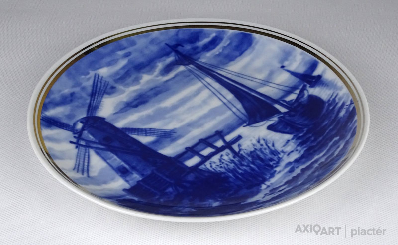 Régi szélmalomos Wallendorf porcelán dísztál 19.5 cm