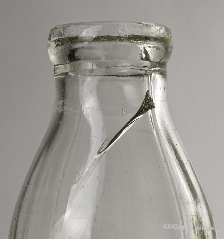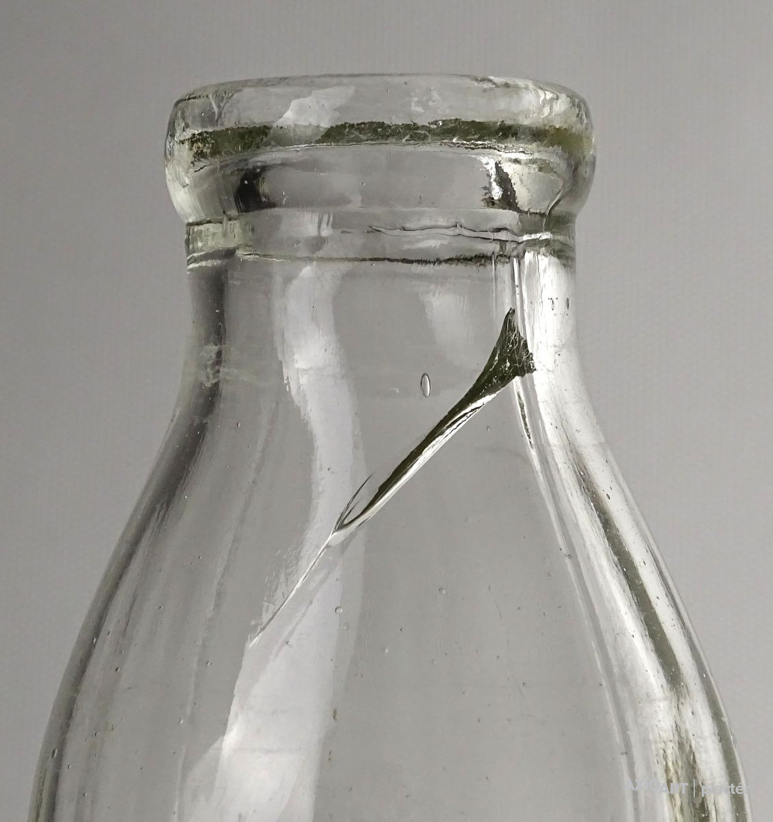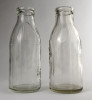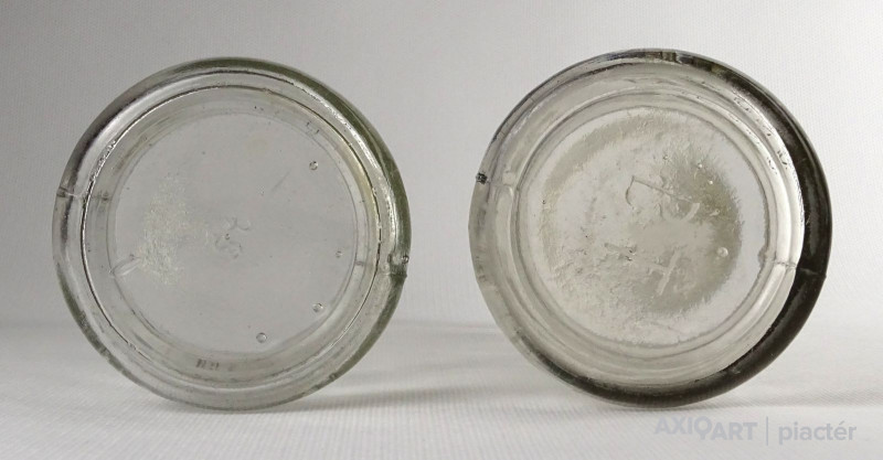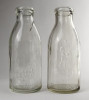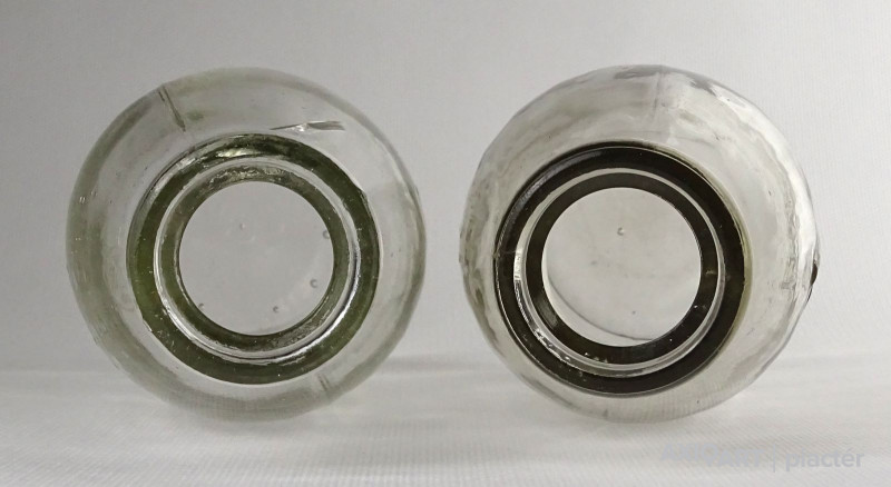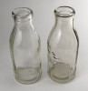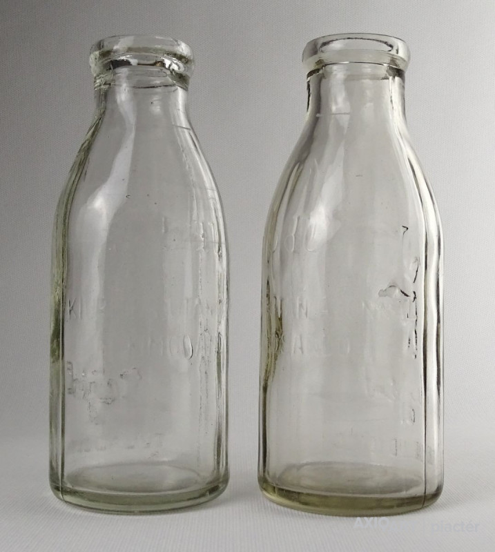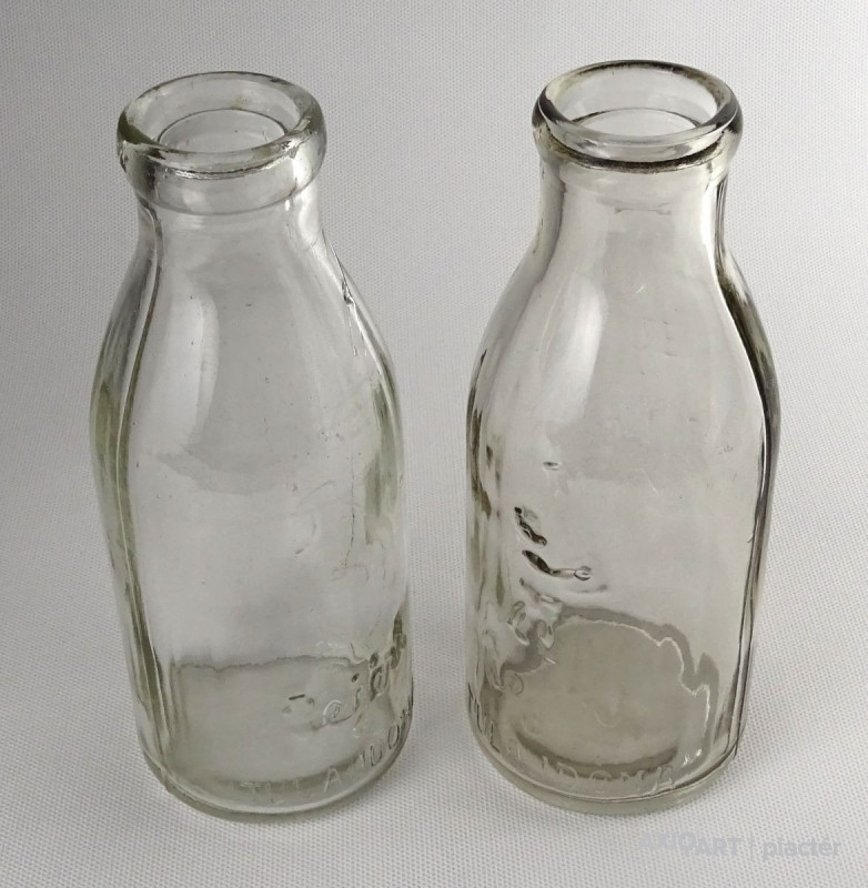 Régi, szép állapotú, tejes üveg palack pár. Az egyik palack nyakán nem kitapintható kisebb repedés található, mellette koronás 1958-as hitelesítő pecsét található.