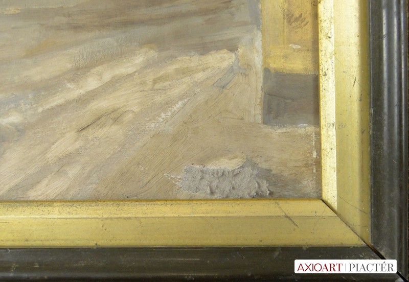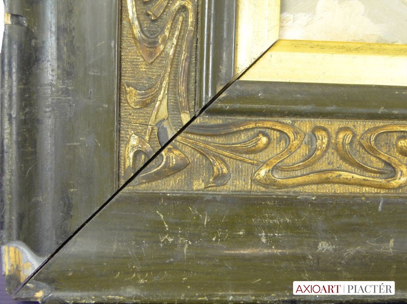 Olaj karton festmény, régi szecessziós keretben, a keret kissé kopott.
