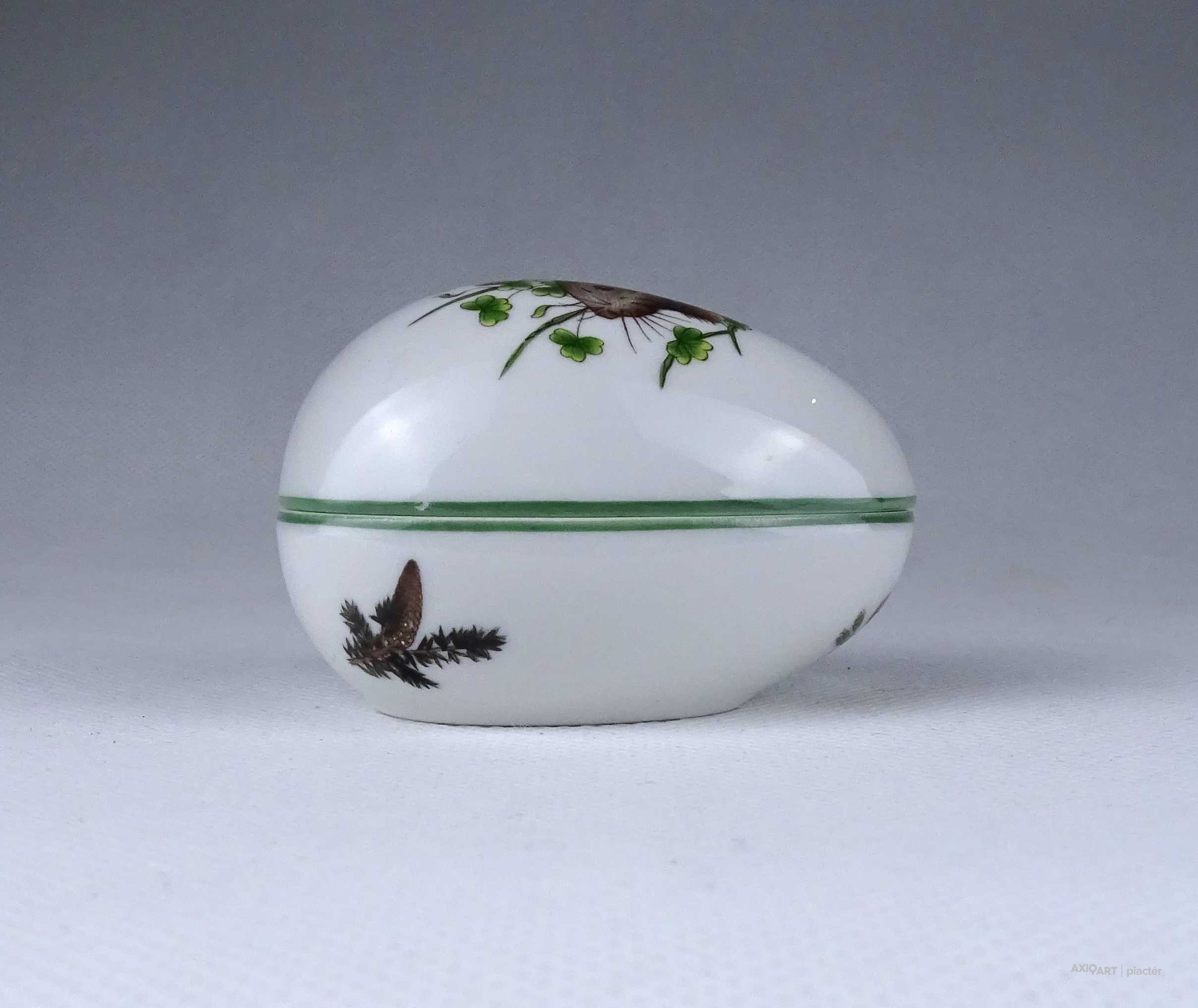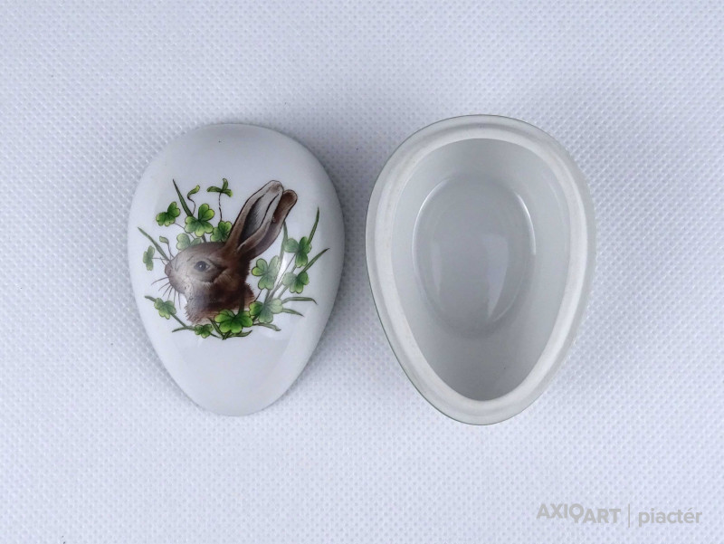 Régi vadász mintás nyulas Herendi porcelán tojás bonbonier