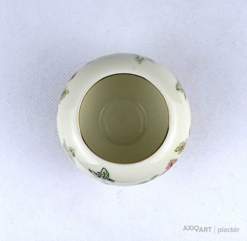 Vajszínű pillangó mintás, aranyozott Zsolnay porcelán díszváza 8 cm