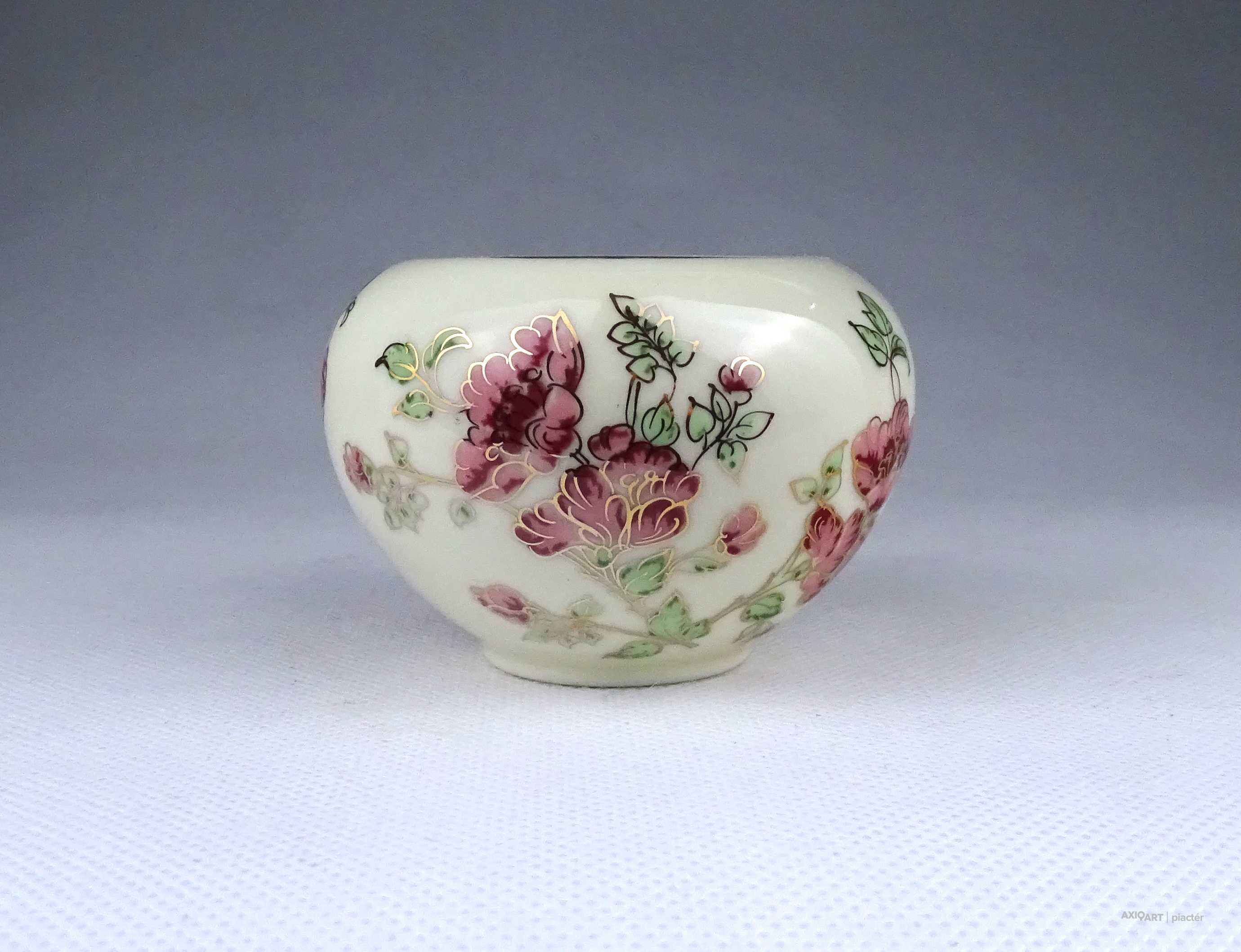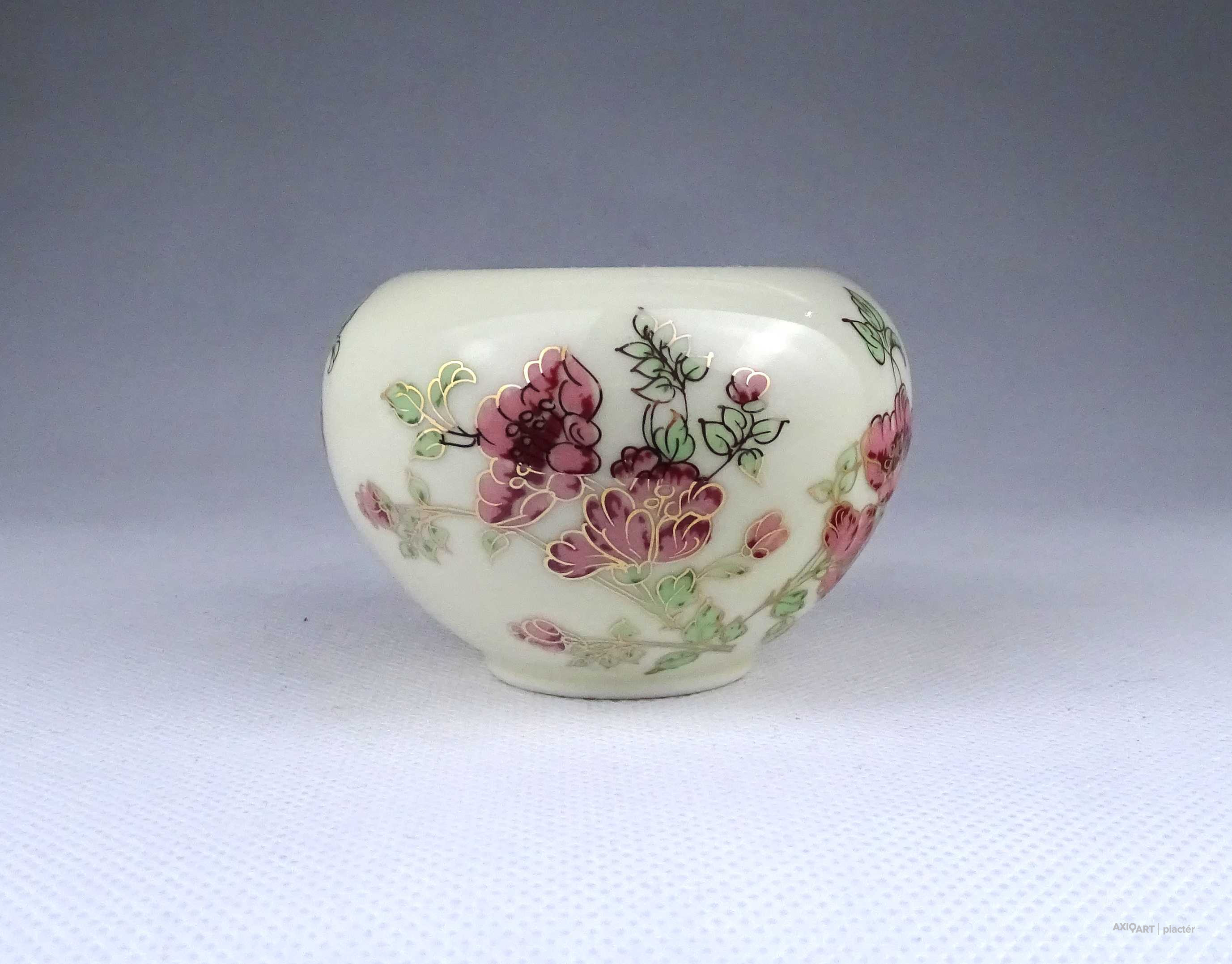 Kisméretű vajszínű virágmintás Zsolnay porcelán váza 6.6 cm