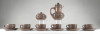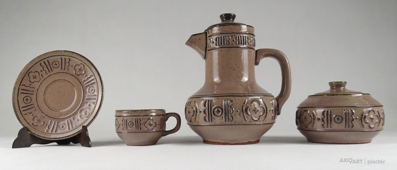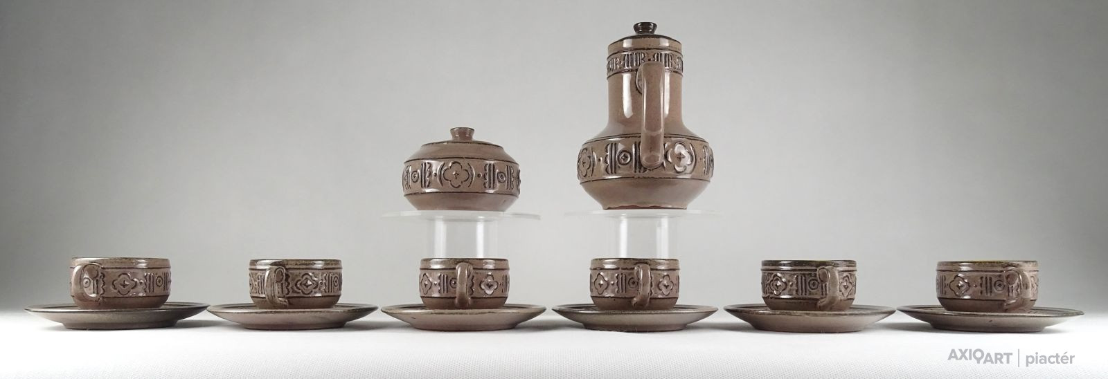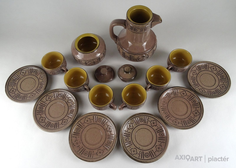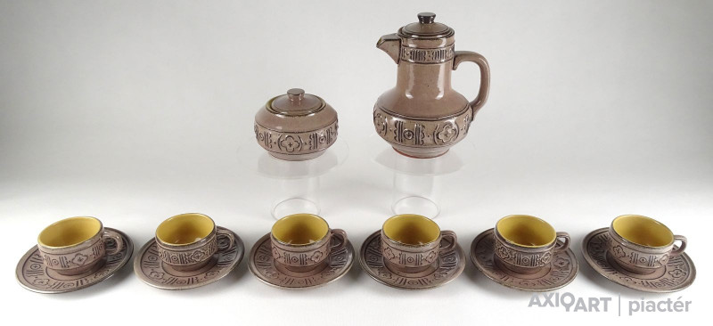 Régi hat személyes hibátlan állapotú komplett Városlődi majolika kávéskészlet, mokkáskészlet.