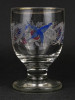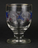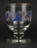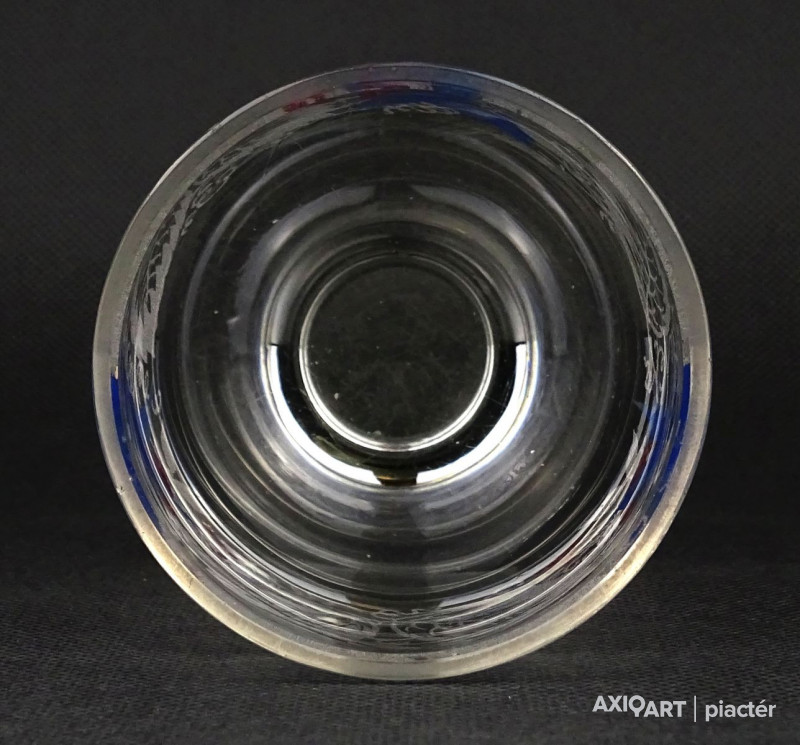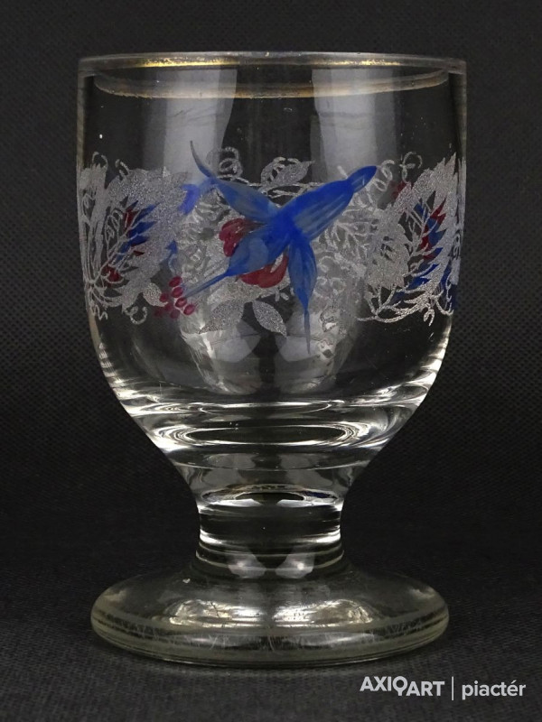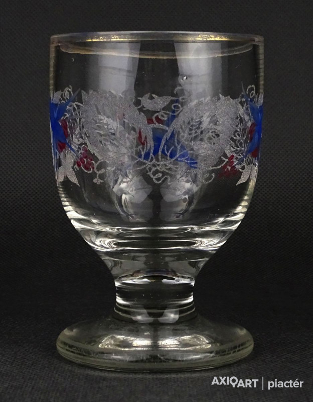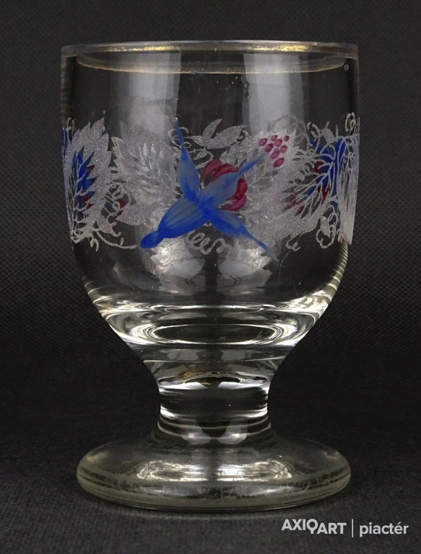 Hibátlan állapotú, régi vastagfalú kézzel festett talpas fúvott üveg pohár üveg kupa. Biedermeier üveg pohár.