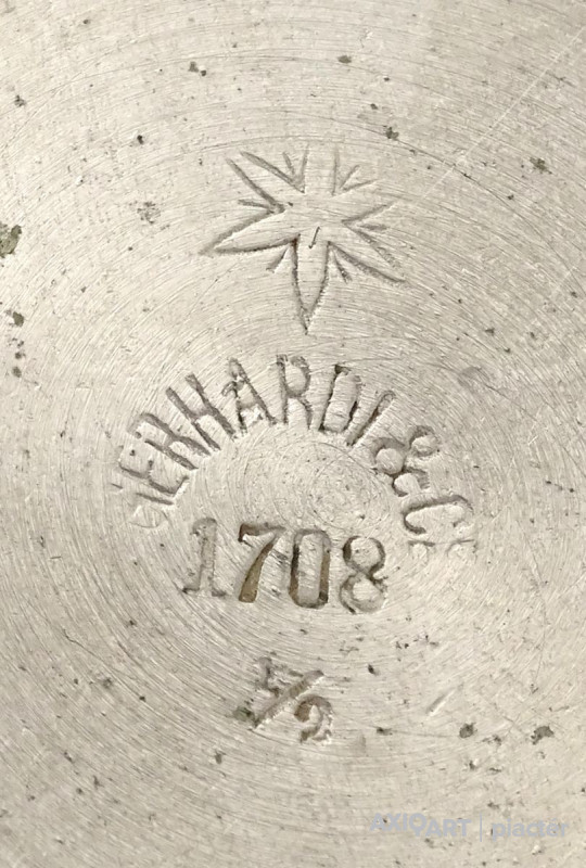 [1P795/X003] Antik kis méretű jelzett fém kiöntő, kis méretű kancsó. Alján jelzés: GERHARDI & Co. 1708 Magasság: 7.8 cm Szélesség: 6.3 cm Hosszúság: 9.8 cm Súly: 0.16 kg