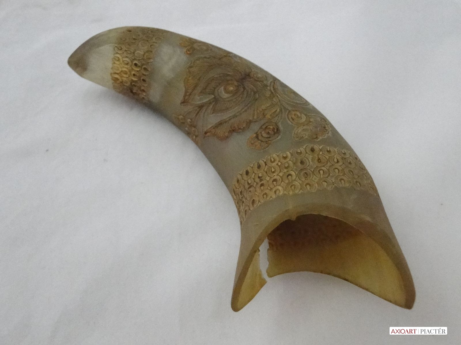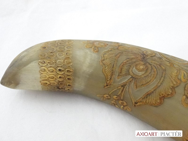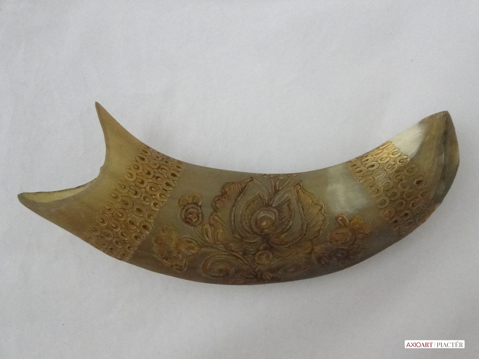 Virágos díszítéssel vésett régi szarú szarv tokmány.