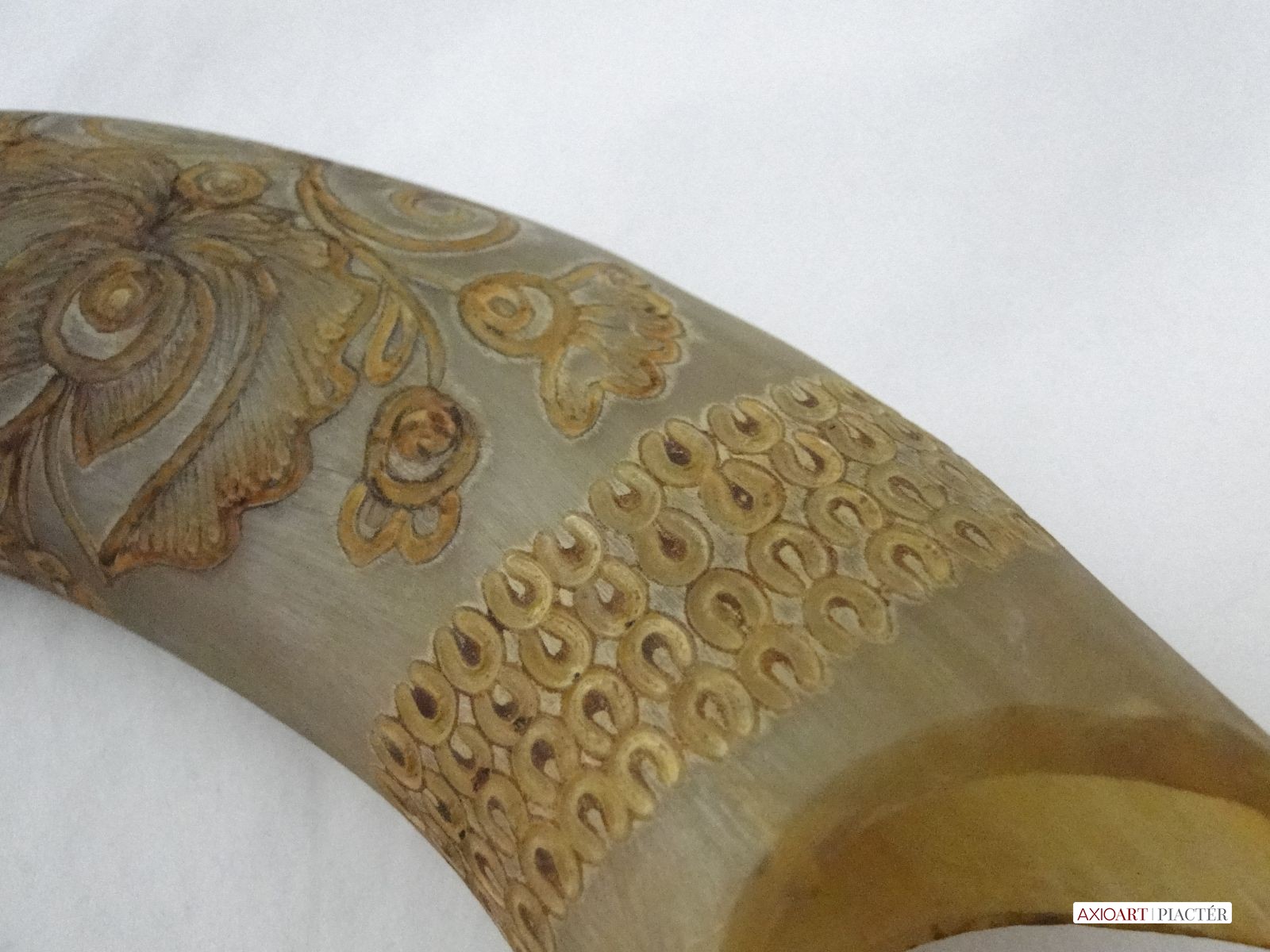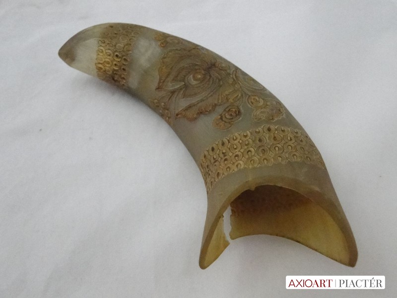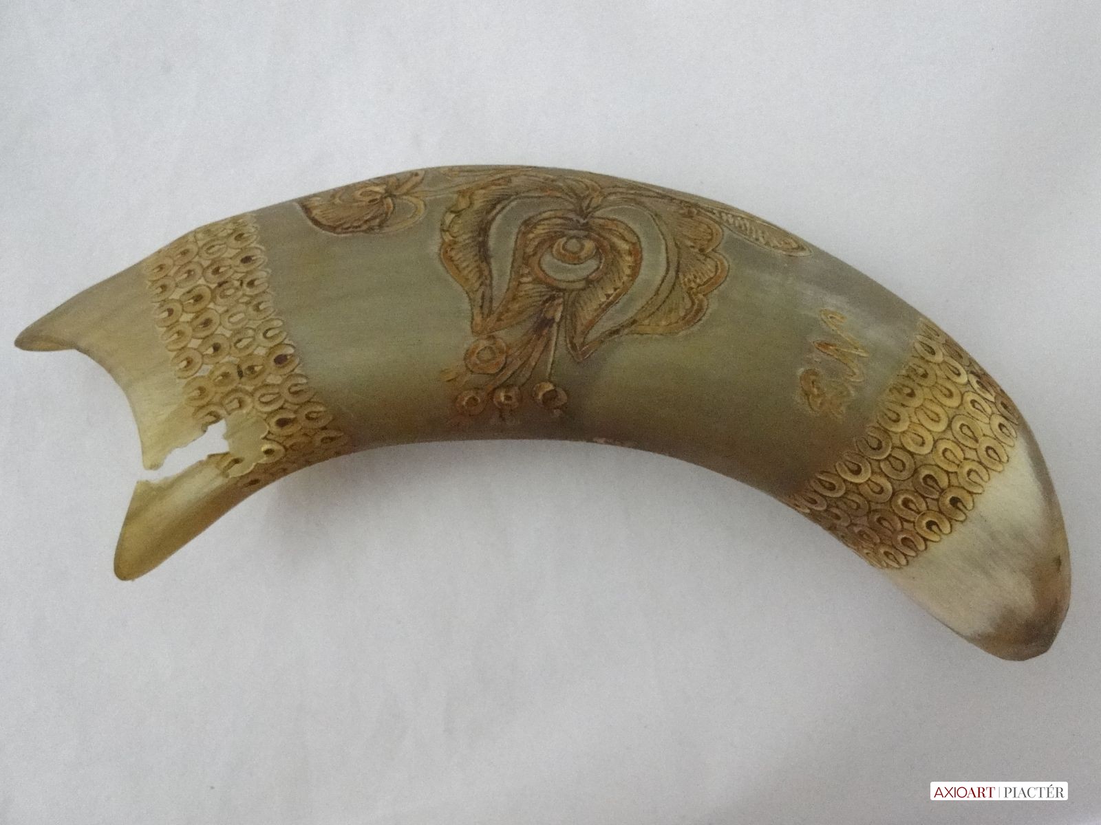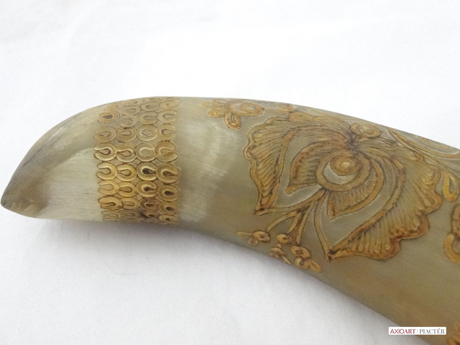 Virágos díszítéssel vésett régi szarú szarv tokmány.