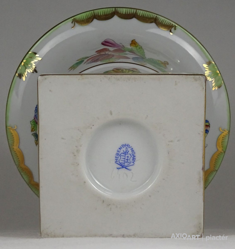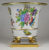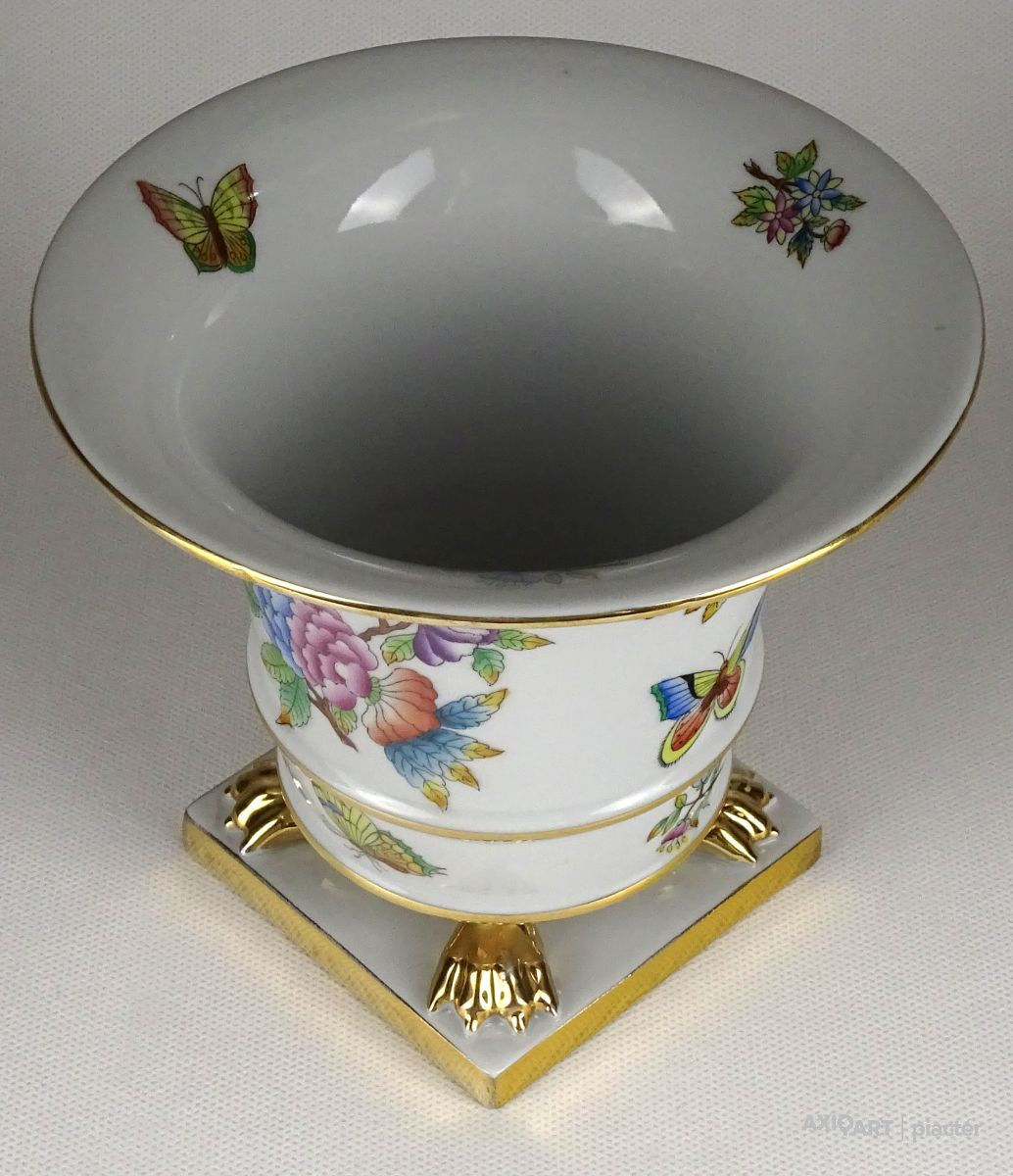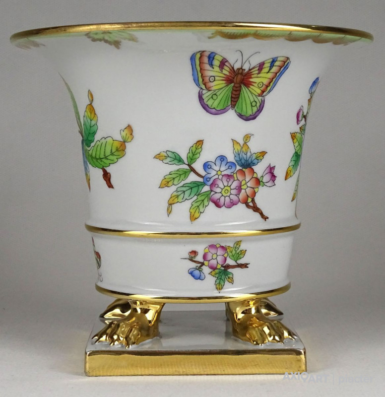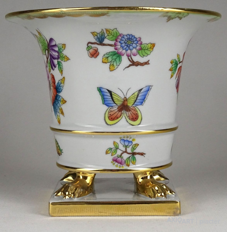 [1S406/Z017] Hibátlan állapotú, oroszlán karmos, Viktória mintás Herendi virágkaspó, díszkaspó. Alján kék Herendi jelzés: HEREND HUNGARY Mélynyomással: HEREND Formaszám: 6402 Magasság: 13 cm Szélesség: 14.5 cm Súly: 0.53 kg