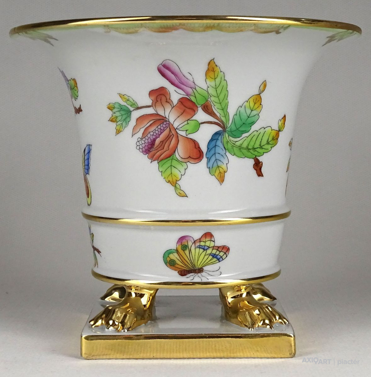 Hibátlan állapotú, oroszlán karmos, Viktória mintás Herendi virágkaspó, díszkaspó.