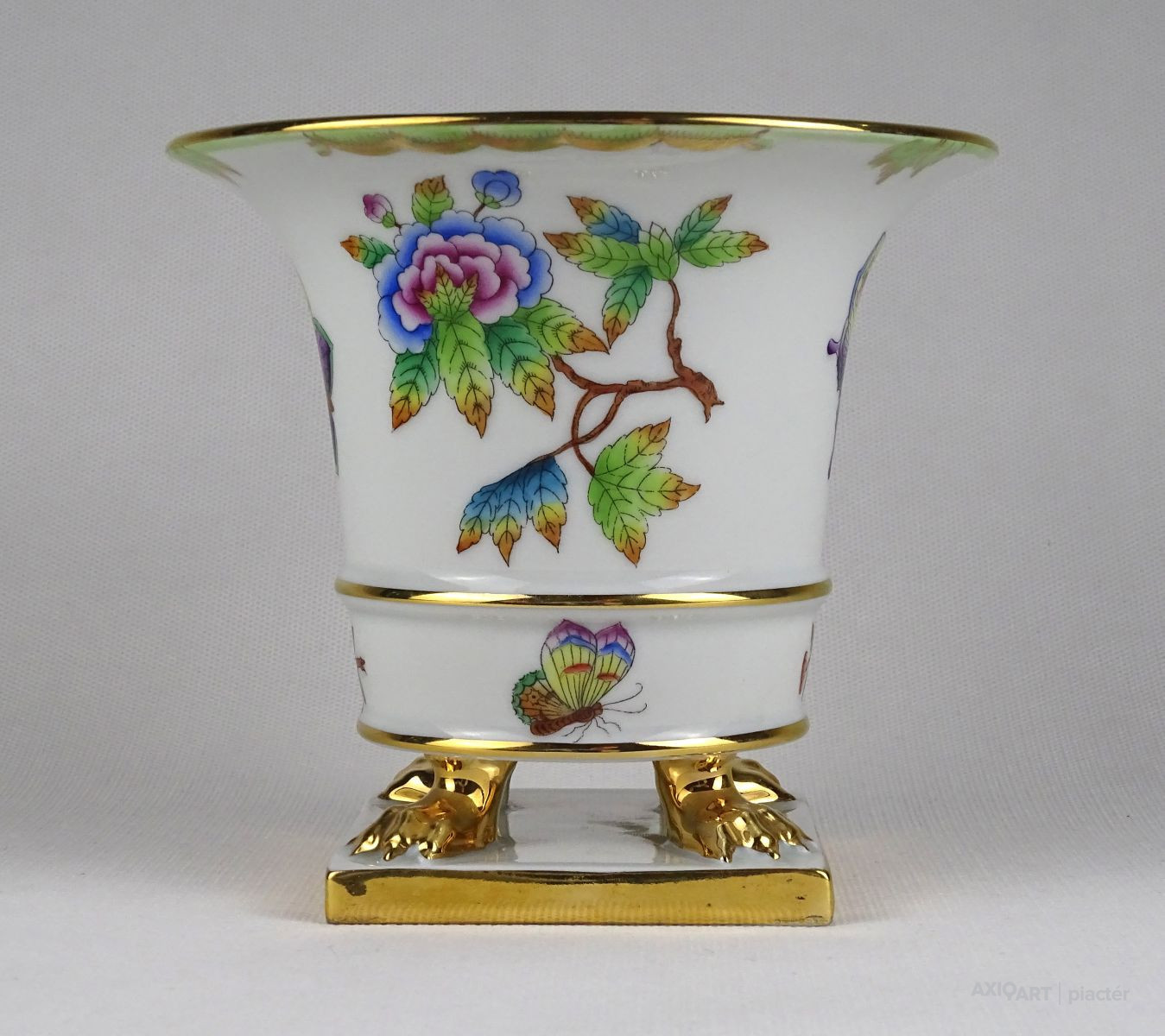Hibátlan állapotú, oroszlán karmos, Viktória mintás Herendi virágkaspó, díszkaspó.