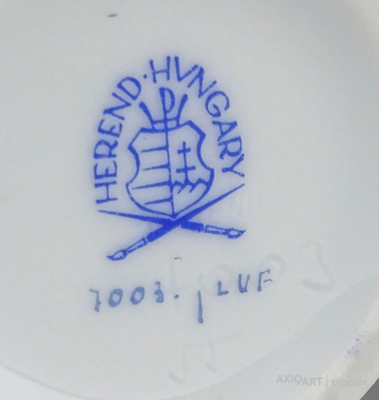 [1B457/VTR-12] Hibátlan állapotú, kézzel festett pillangós mintával díszített Herendi porcelán váza. Alján kék Herendi jelzés: HEREND HUNGARY Formaszám kékkel: 7003/LVF Mélynyomással: HEREND Díszítő motívum: LVF = VICTORIA, PAPILLONS ET FLEURS (Viktória, pillangók és virágok) Magasság: 14 cm Szélesség: 8.3 cm Súly: 0.265 kg