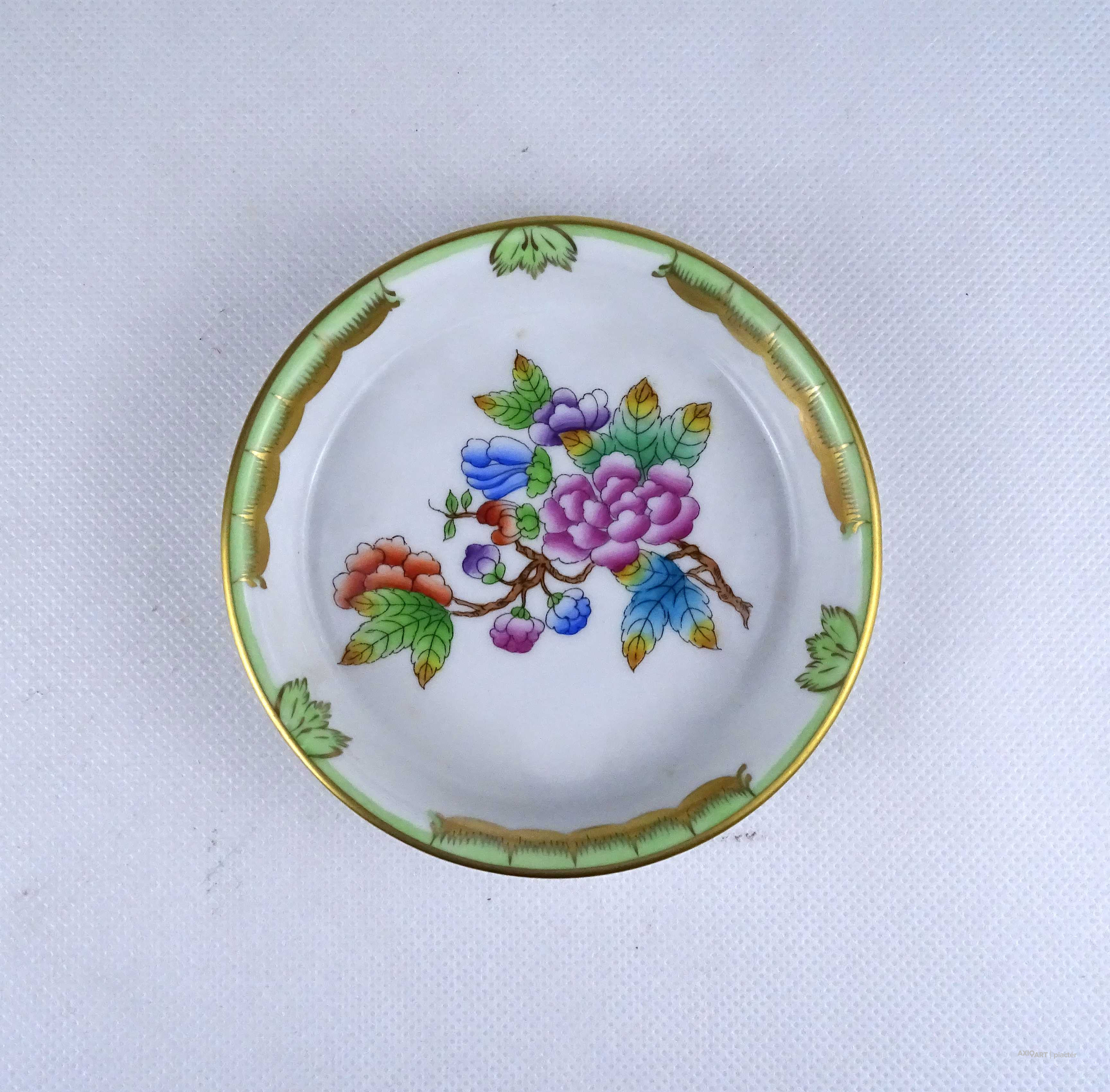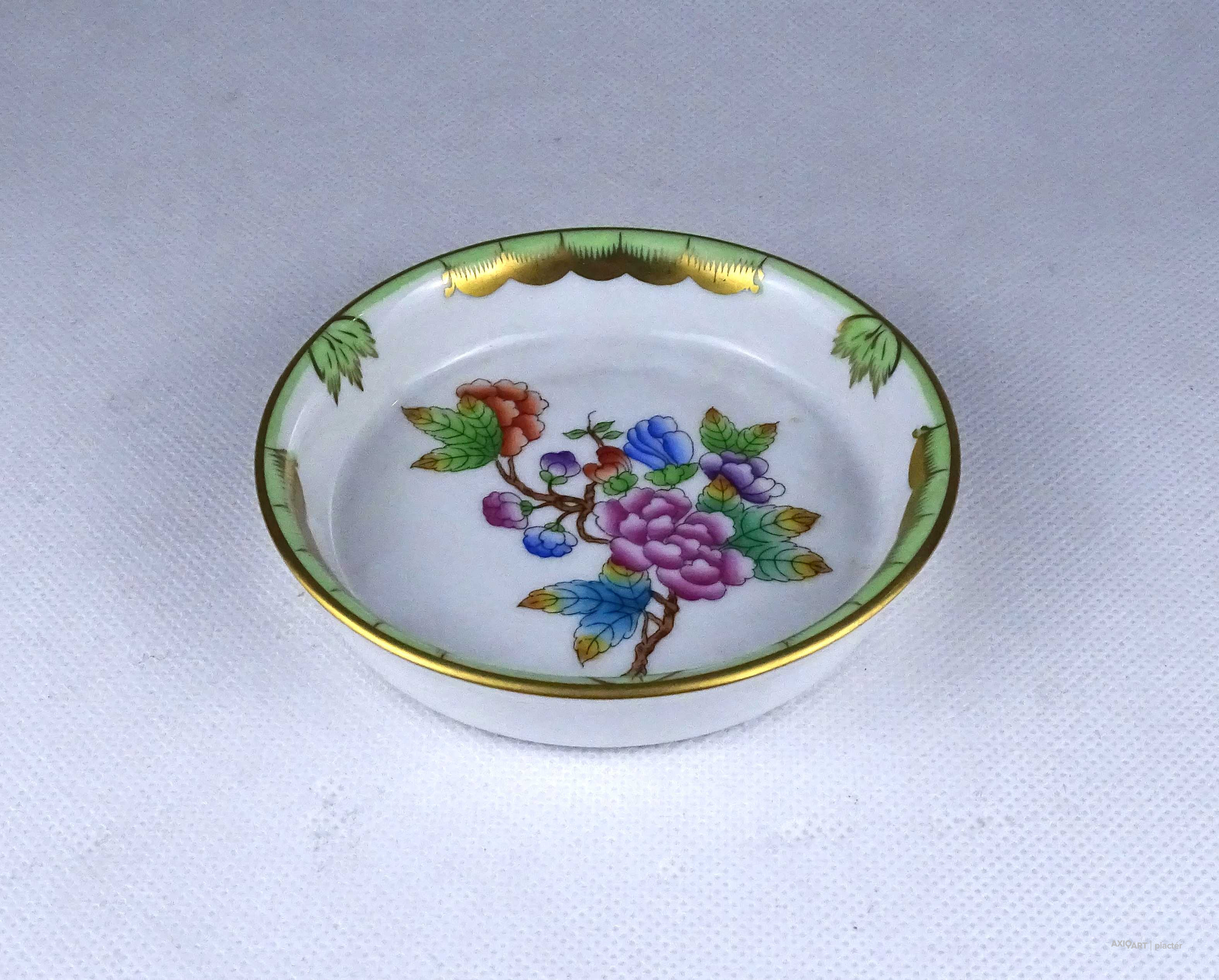[1Z687/Z016] Régi, hibátlan állapotú, Viktória mintás Herendi porcelán kistál, tálka, hamutál. Alján kék jubileumi Herendi márkajelzés: HEREND HUNGARY 1826 1976 HANDPAINTED 150 Mélynyomással: HEREND Formaszám pirossal: 7260 / VBO Magasság: 2.2 cm Szélesség: 11.5 cm Súly: 0.135 kg