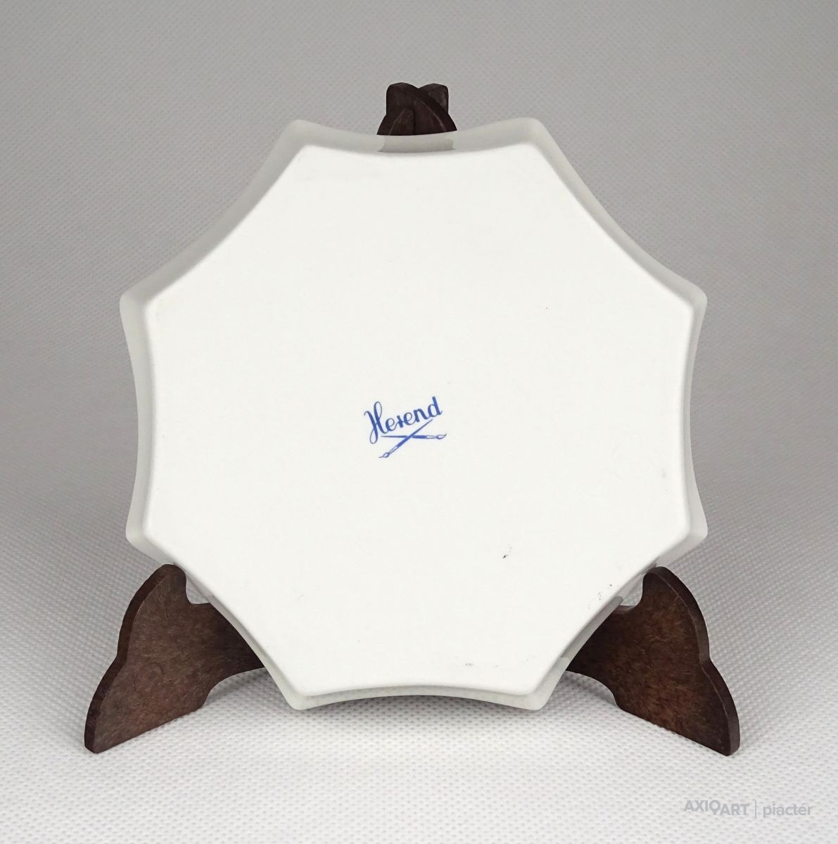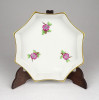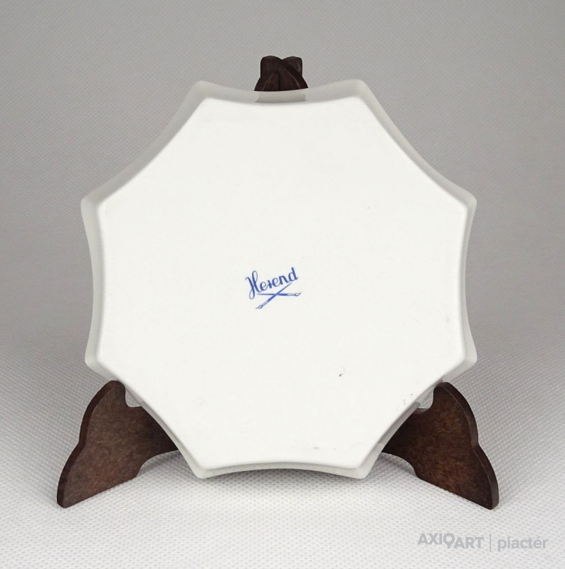 [1D159/Z022] Hibátlan állapotú, apró virág mintás Herendi porcelán tálka, hamutál. Alján kék Herendi ecsetes jelzés: HEREND Mélynyomással: HEREND Formaszám: 8753 Szélesség: 11 cm Súly: 0.07 kg     Mérete: 12,5 x 8,5cm