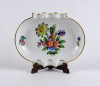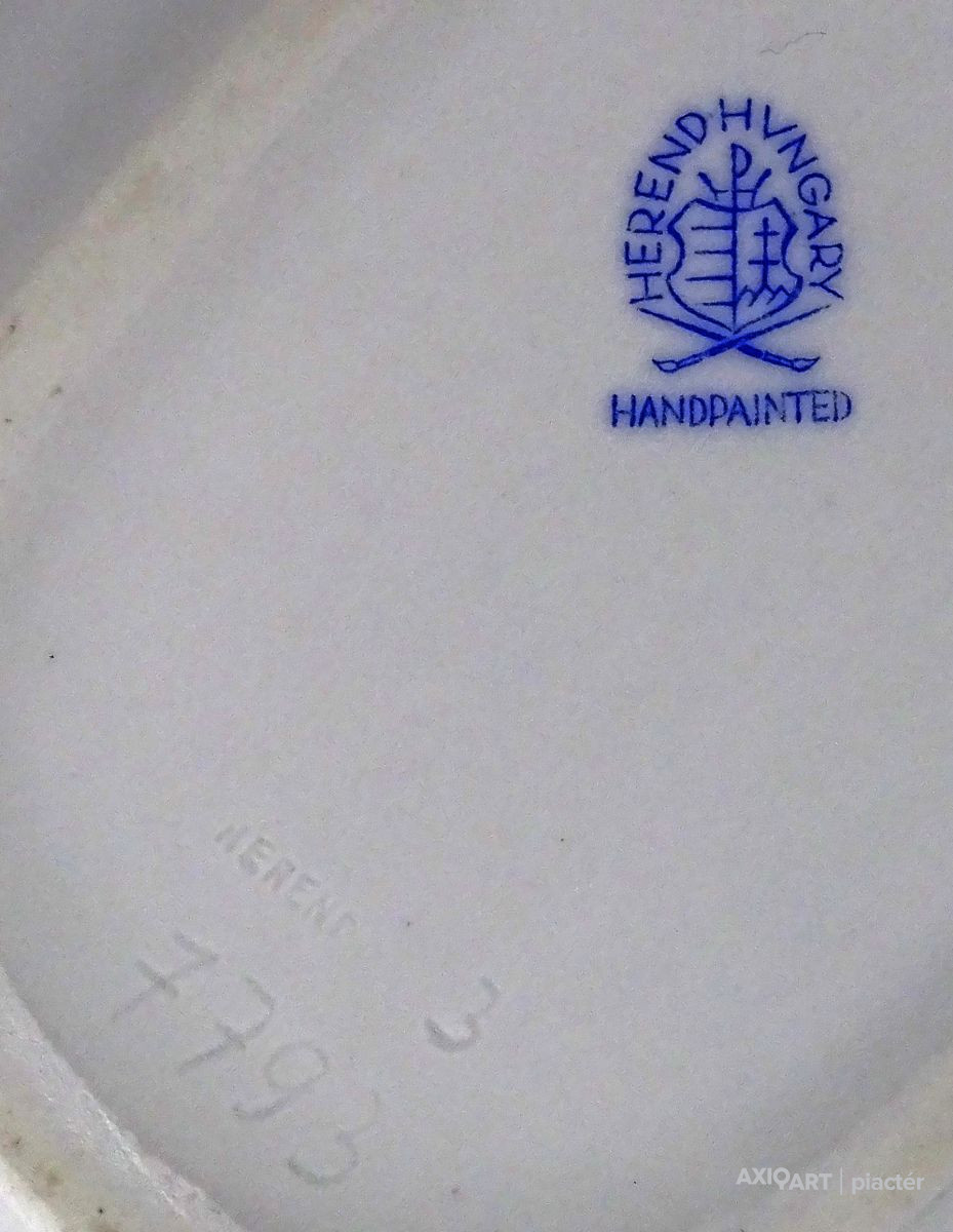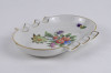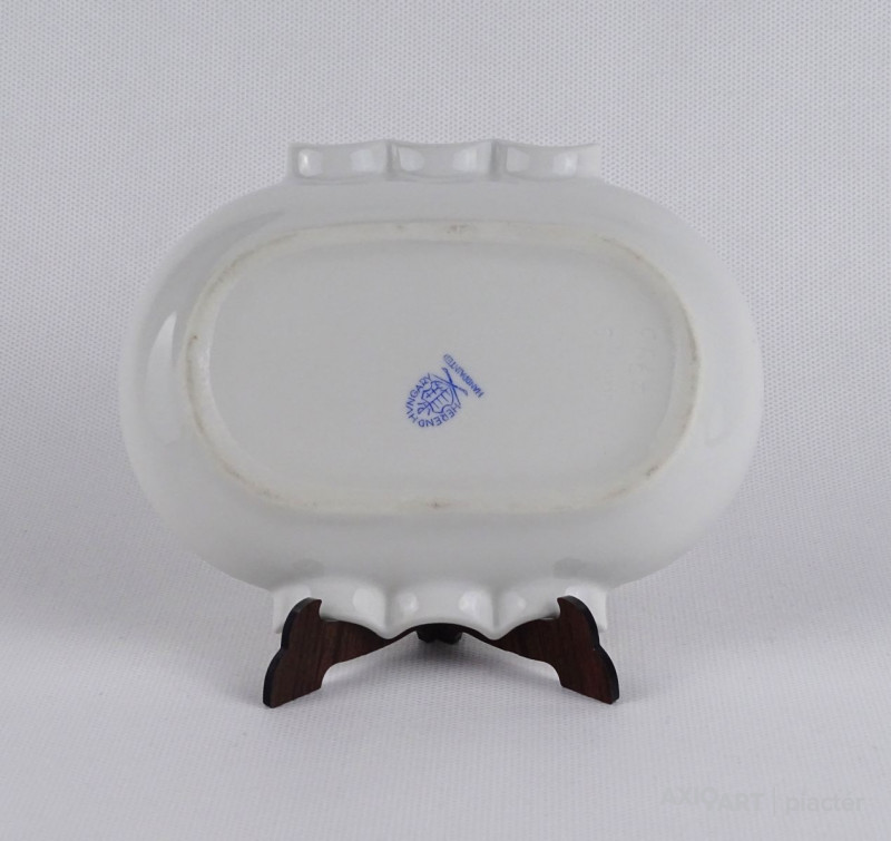 [1T577/Z022] Hibátlan állapotú, hatállásos, ritka virág mintás Herendi porcelán tál, hamutál. Alján kék Herendi jelzés: HEREND HUNGARY HANDPAINTED Mélynyomással: HEREND Formaszám: 7793 Szélesség: 10.8 cm Hosszúság: 13.8 cm Súly: 0.125 kg