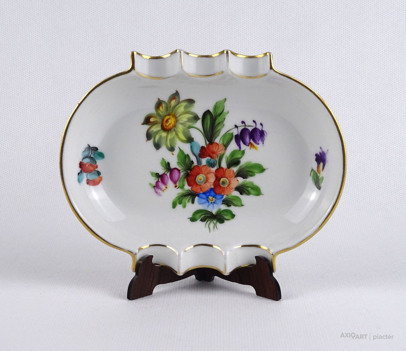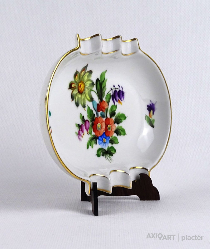 Hibátlan állapotú, hatállásos, ritka virág mintás Herendi porcelán tál, hamutál.