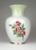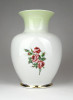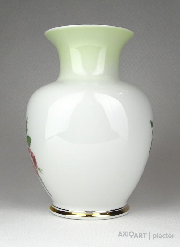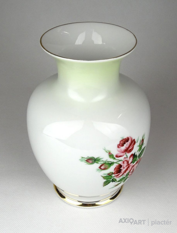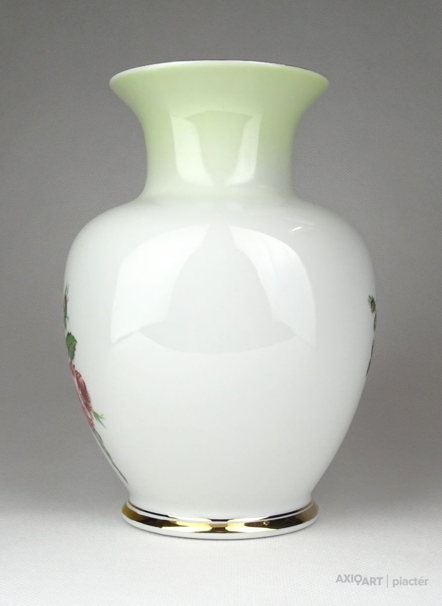 Régi, halványzöld és fehér színű, aranyozással és virág motívumokkal díszített, hibátlan állapotú régi porcelán váza.
