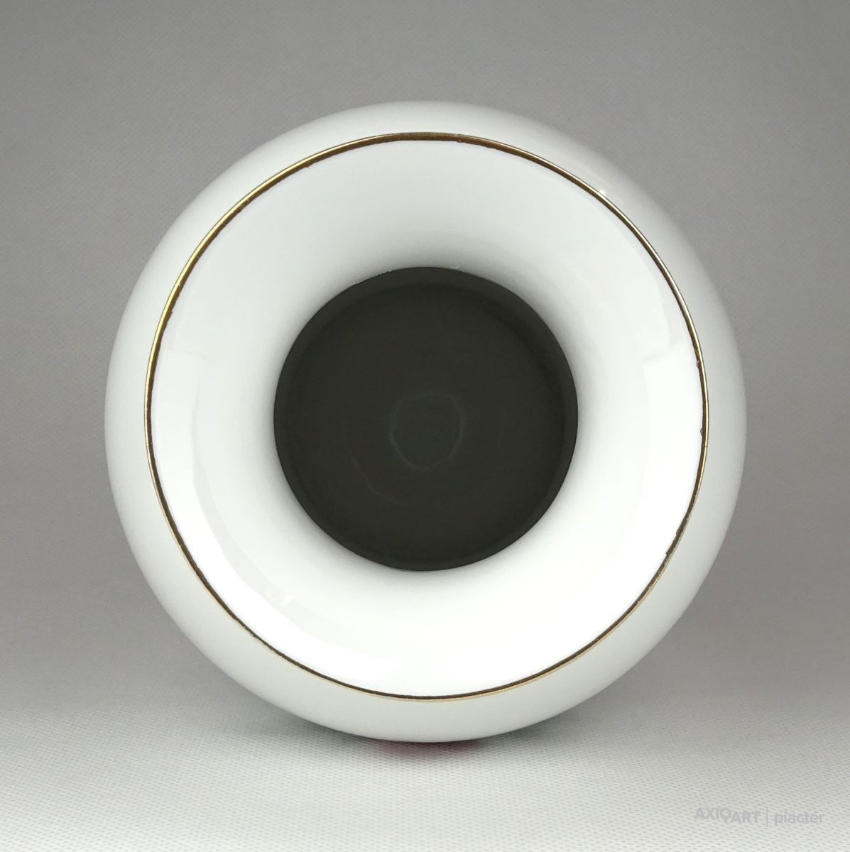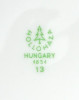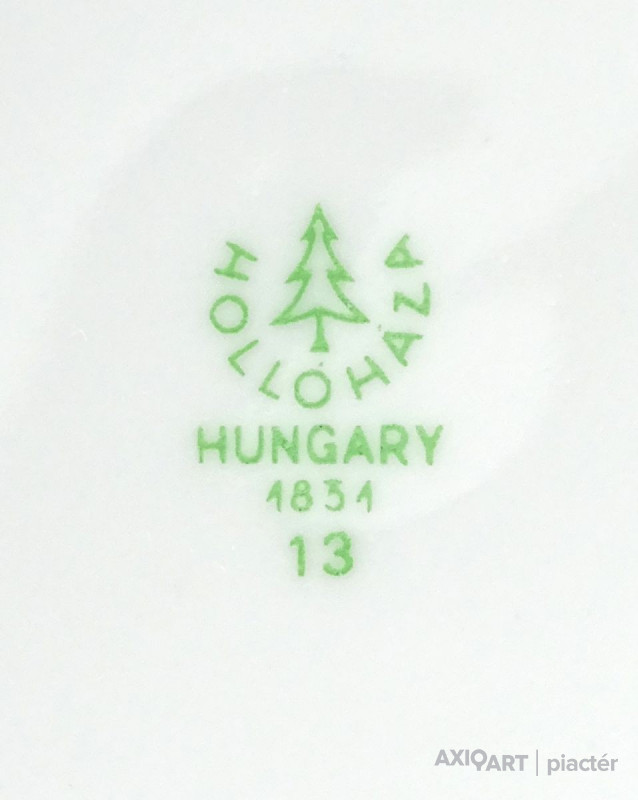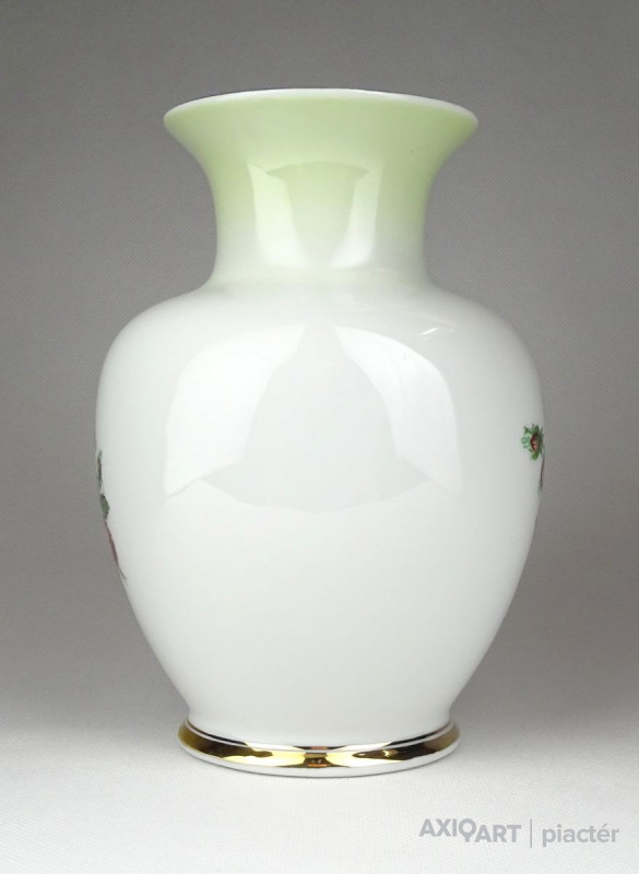 [1D913/X210] Régi, halványzöld és fehér színű, aranyozással és virág motívumokkal díszített, hibátlan állapotú régi porcelán váza. Alján zöld márkajelzés: HOLLÓHÁZA HUNGARY 1831 Magasság: 17 cm Szélesség: 12 cm Súly: 0.49 kg