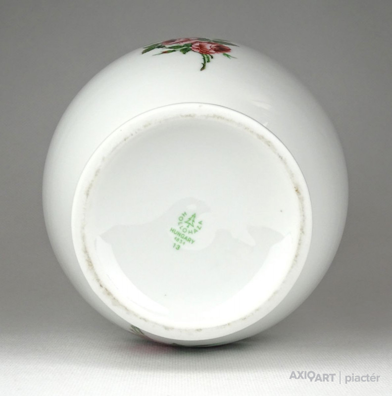 Régi virágdíszes Hollóházi porcelán váza 17 cm