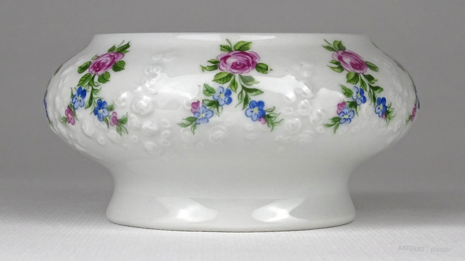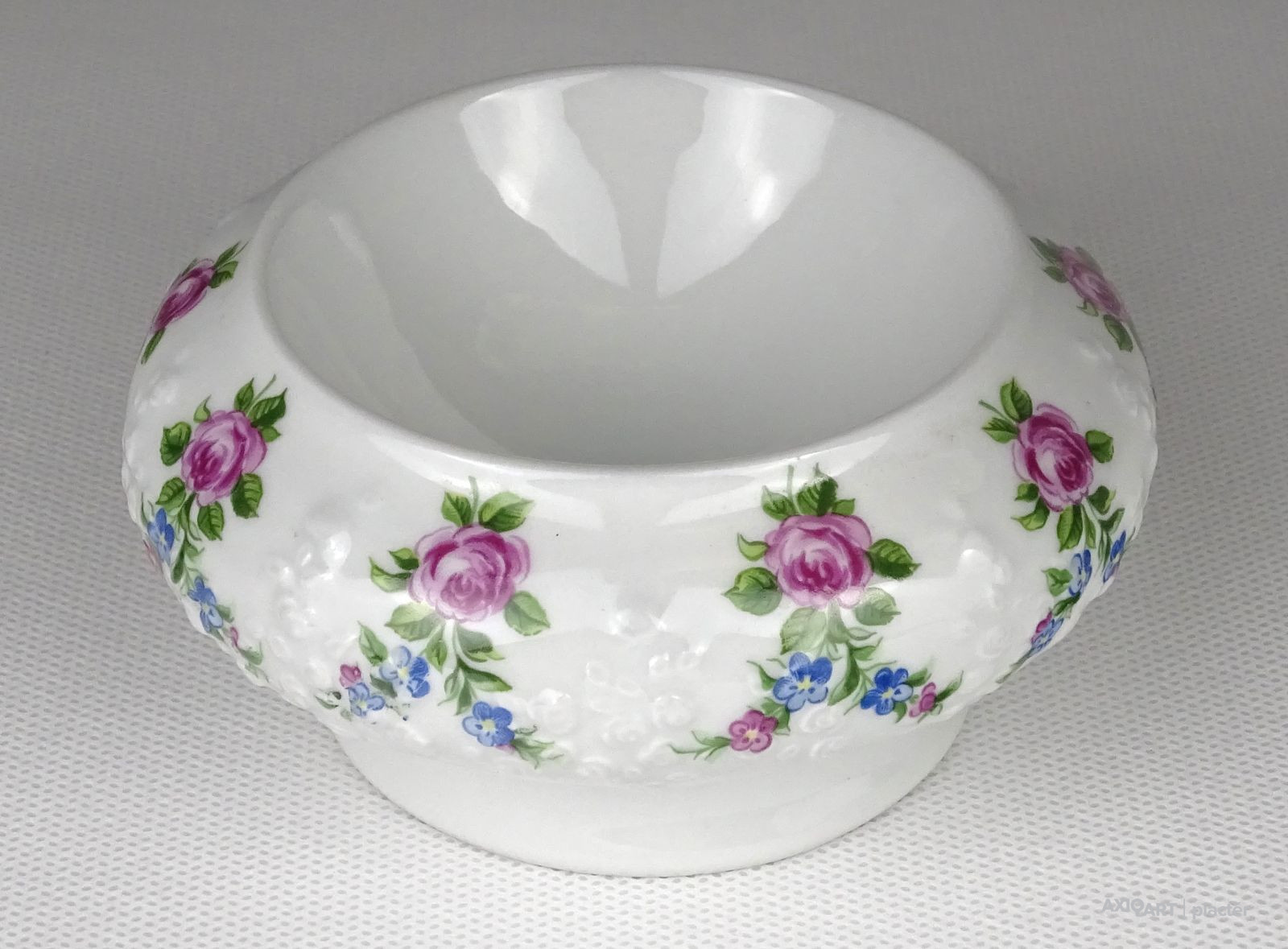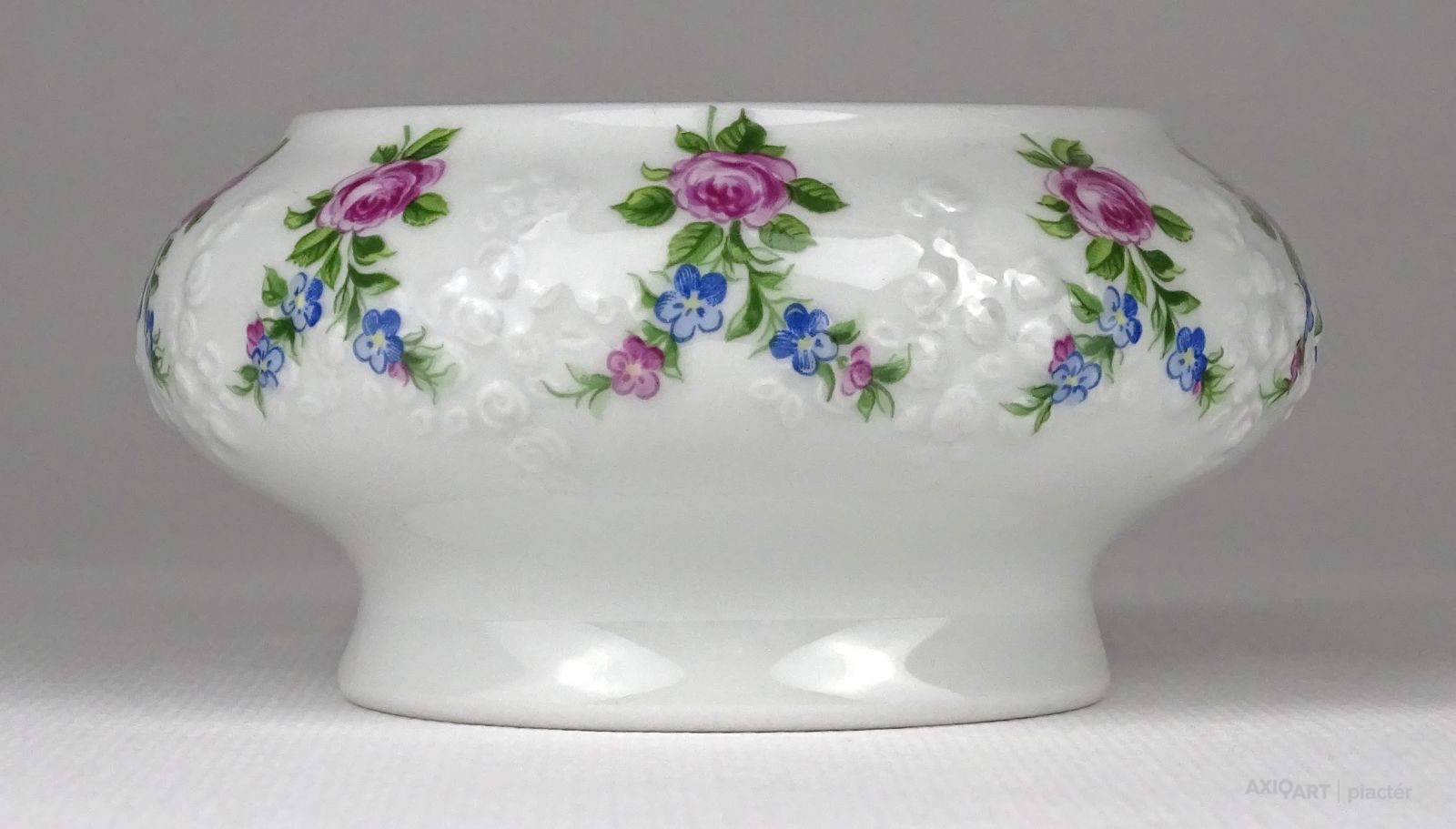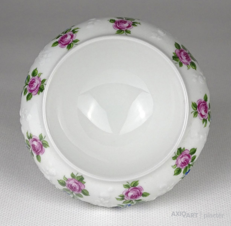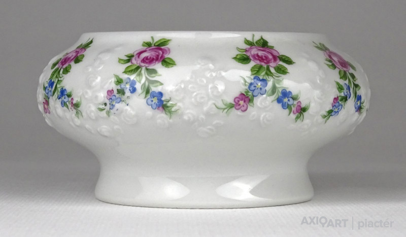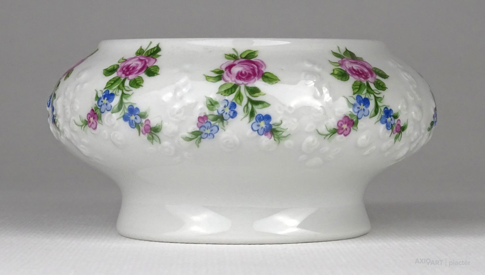 Régi, hibátlan állapotú nyitott rózsadíszes porcelán ékszertartó, gyűrűtartó.