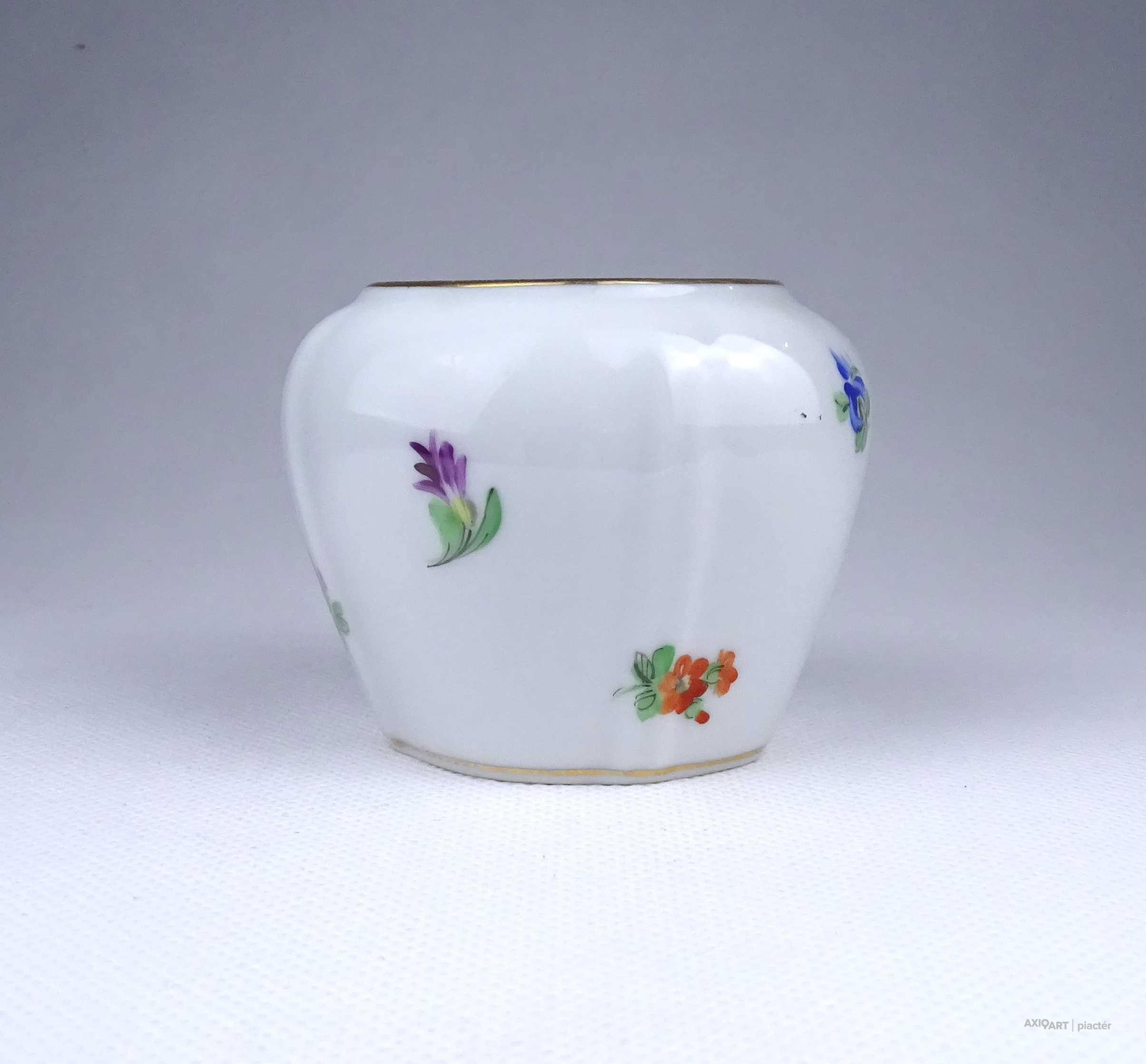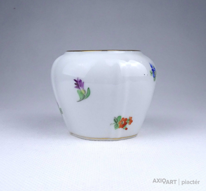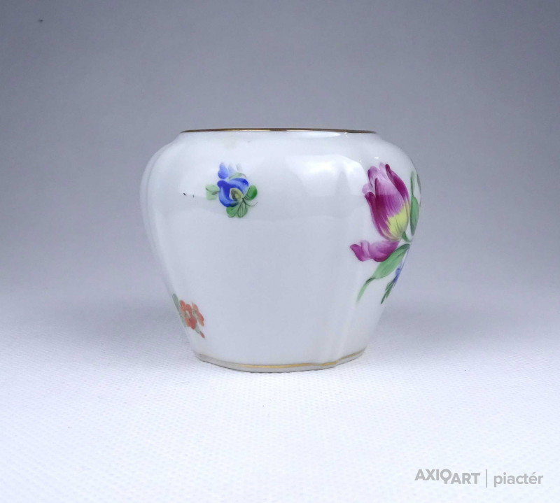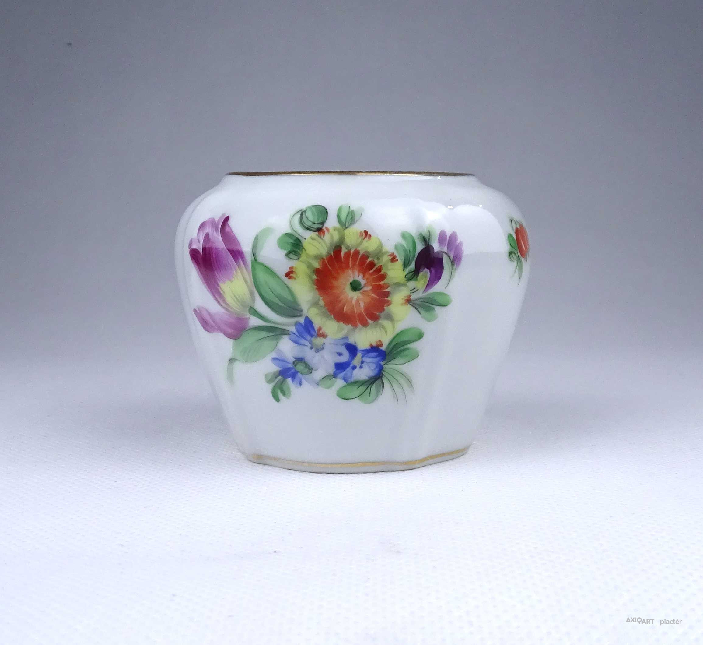 Régi, hibátlan állapotú, virágmintás Herendi porcelán öblös kisváza vagy kis kaspó.