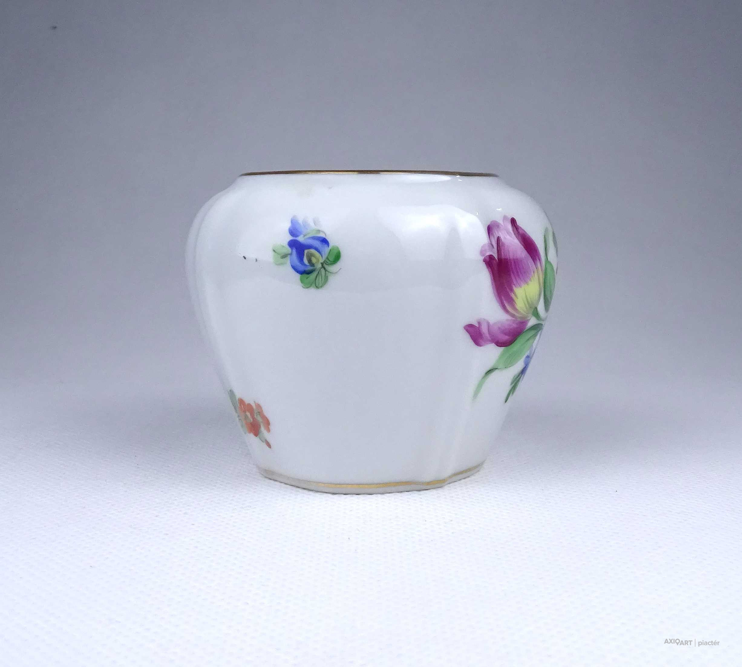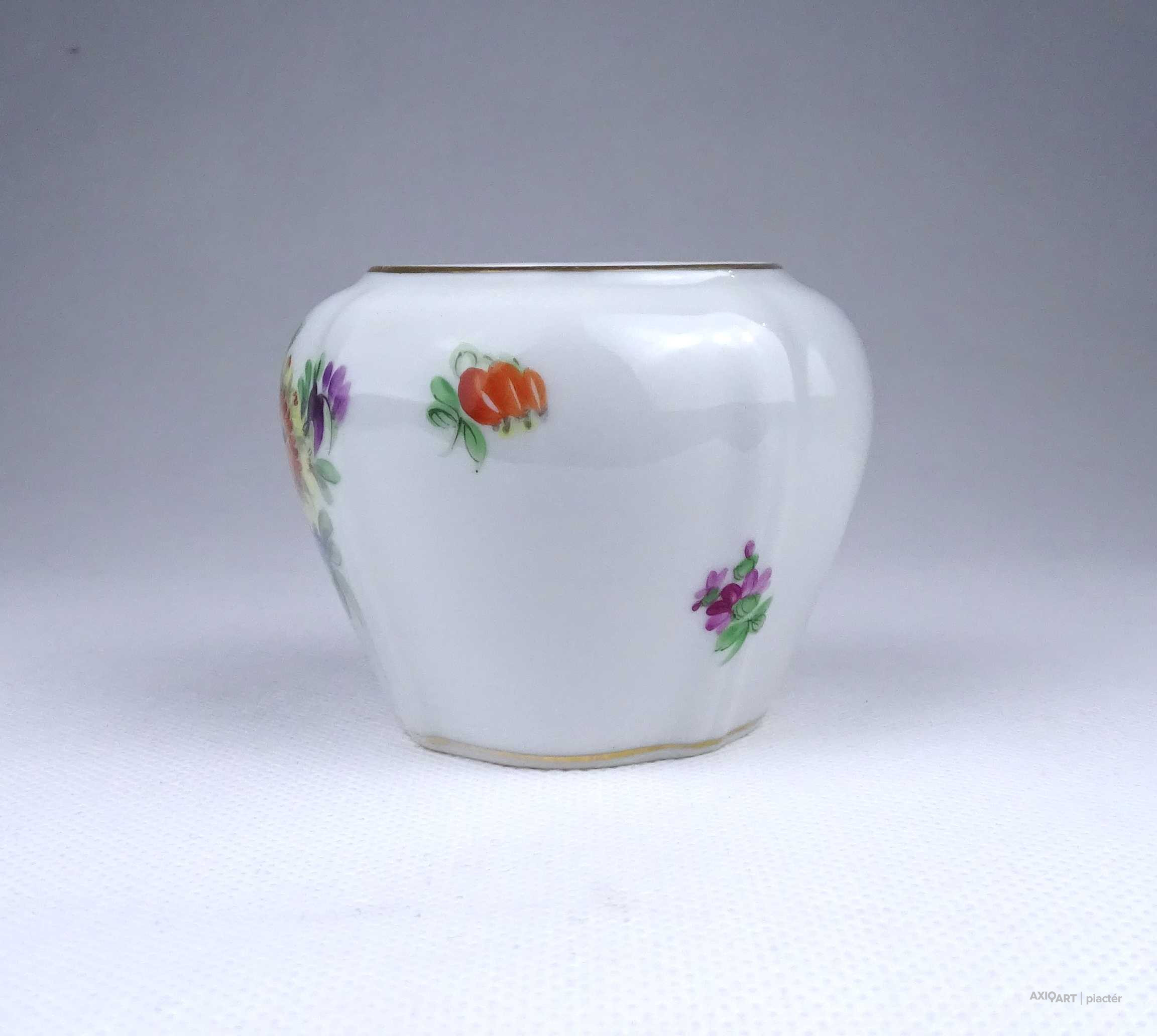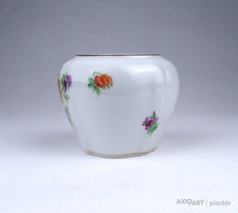 Régi, hibátlan állapotú, virágmintás Herendi porcelán öblös kisváza vagy kis kaspó.