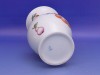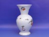 A váza testén kézi festésű virág, csipkebogyó, cseresznye, körte, lepke és rovar díszítések láthatóak.