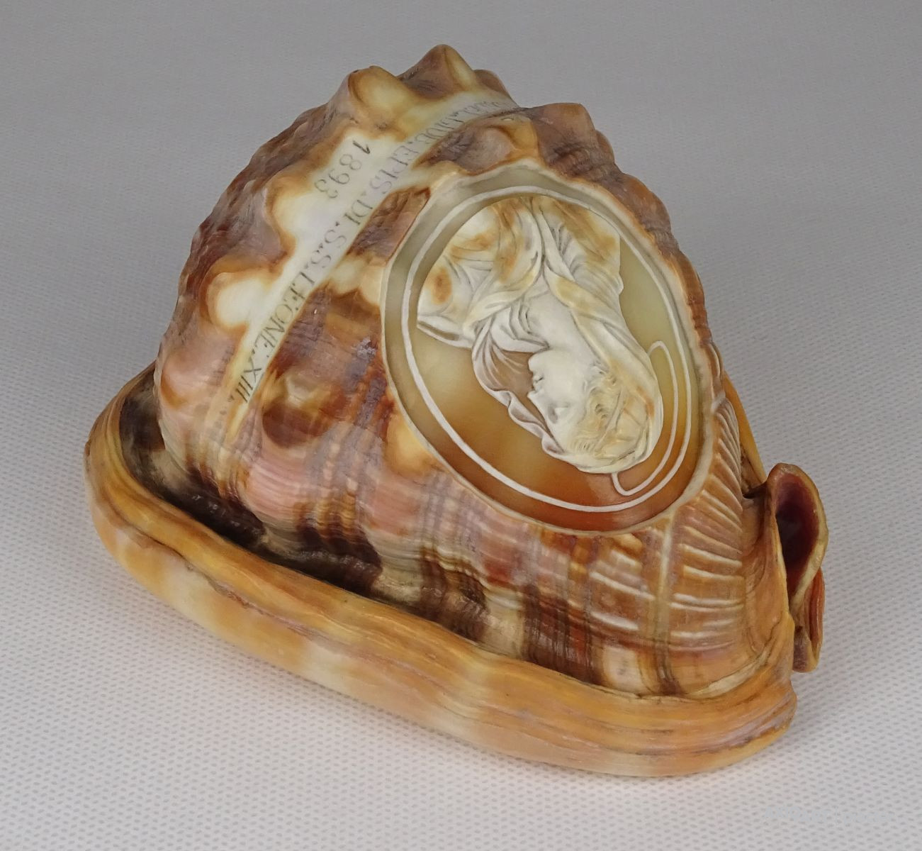 Régi XIII. Leó pápa csiszolt csiga emléktárgy Mária portréval