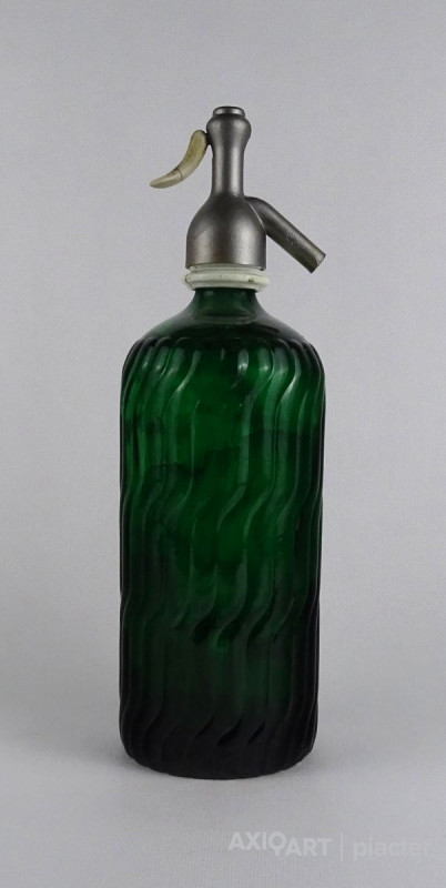 Régi zöld art deco szódásüveg 30 cm
