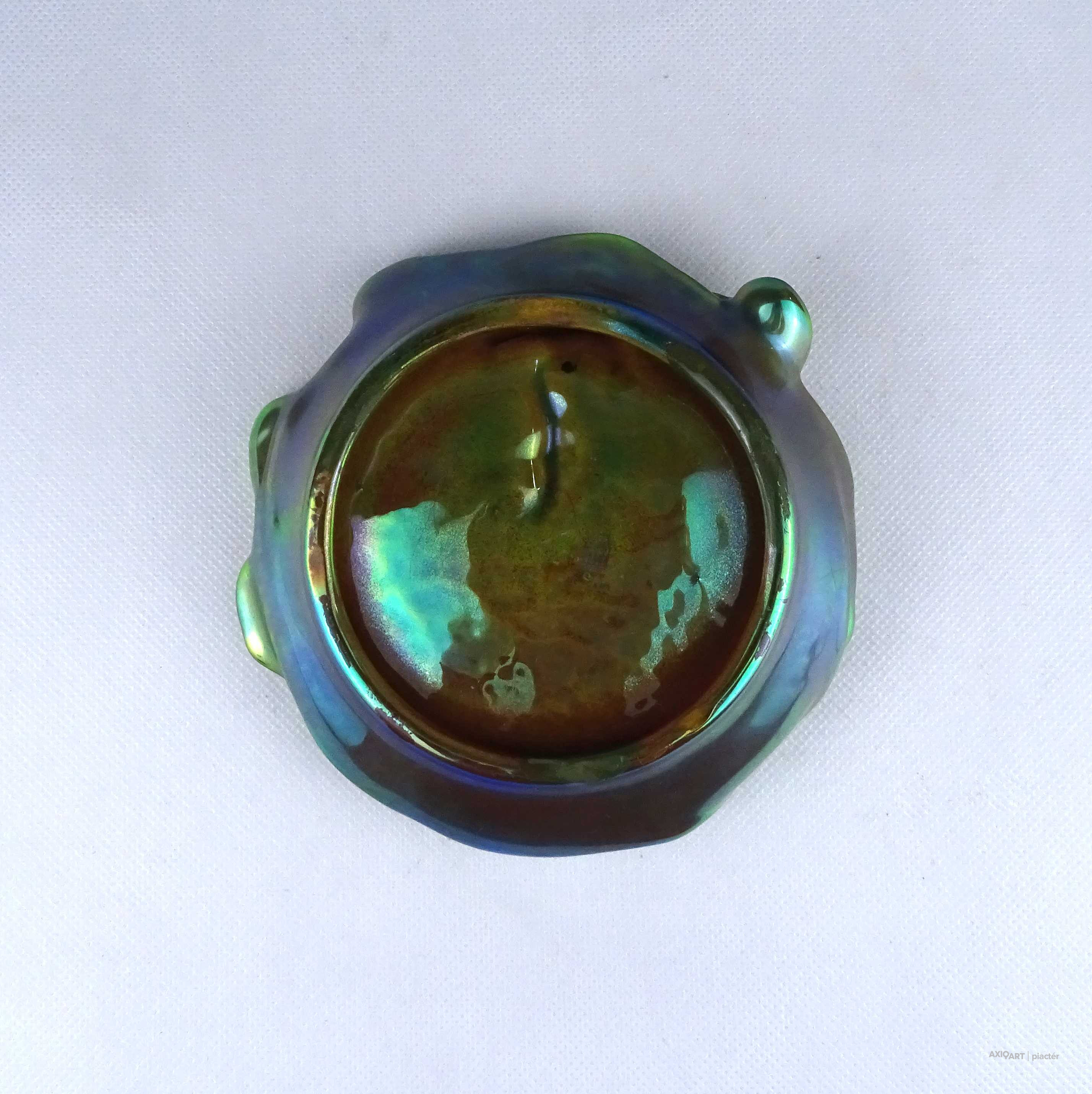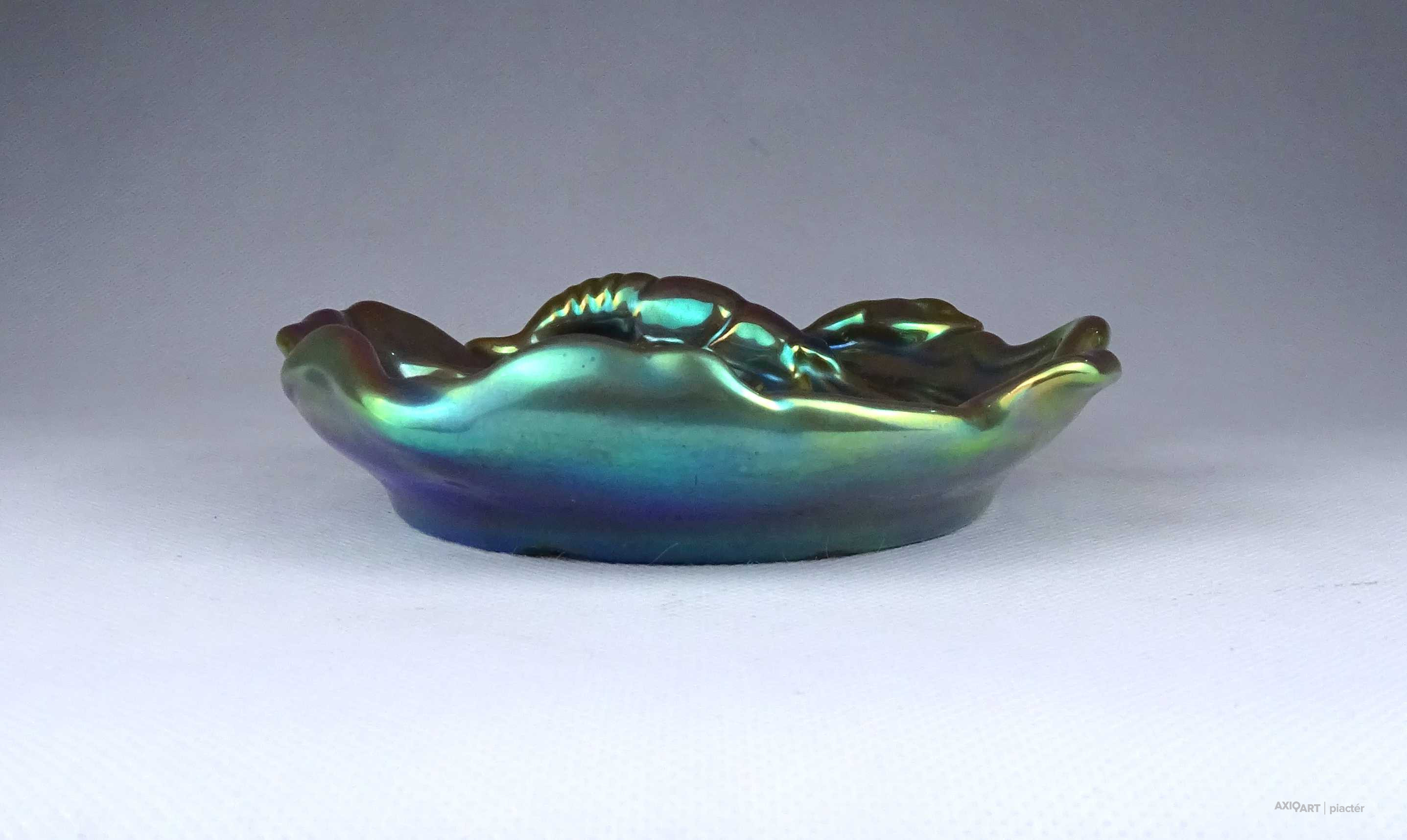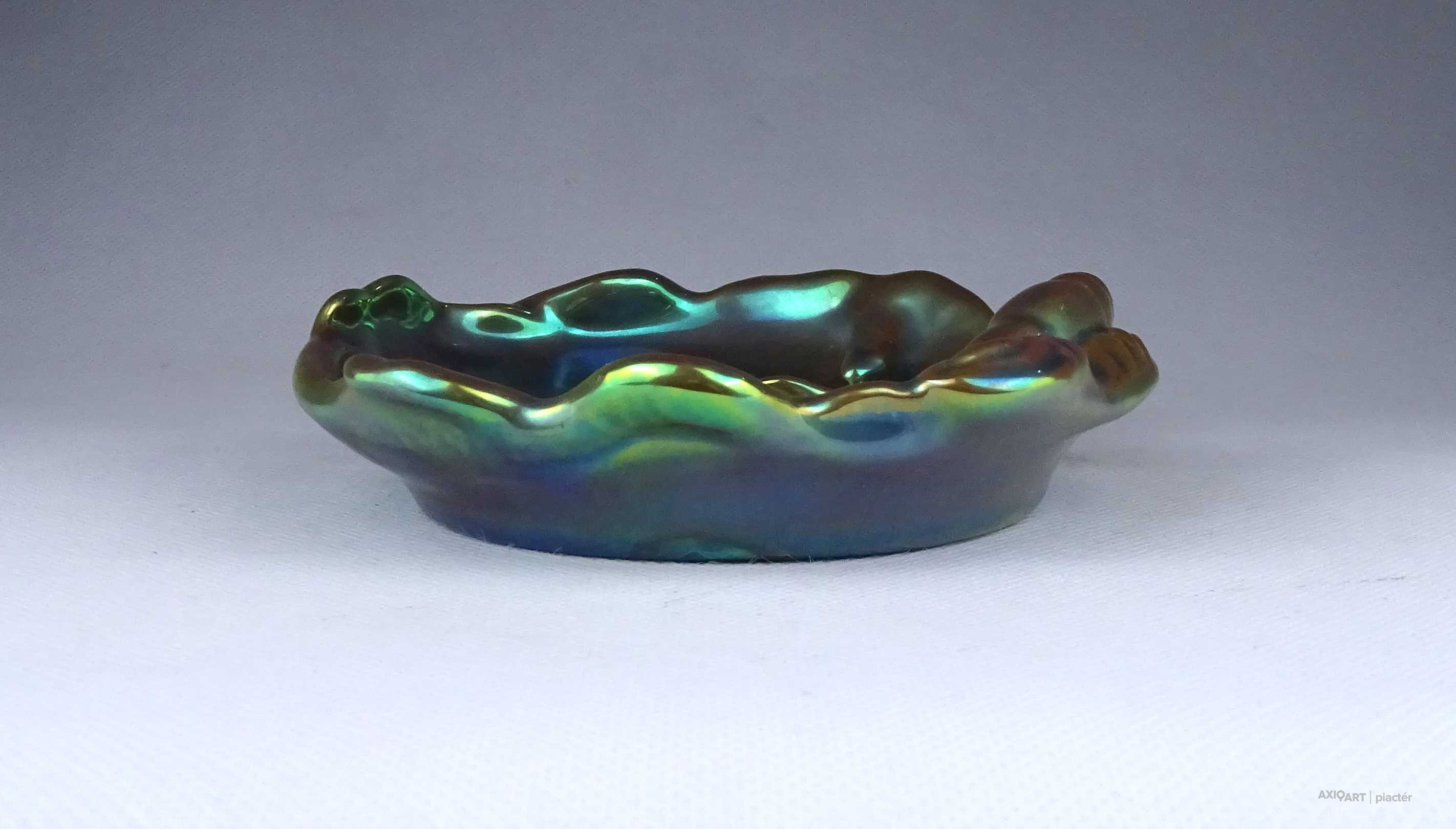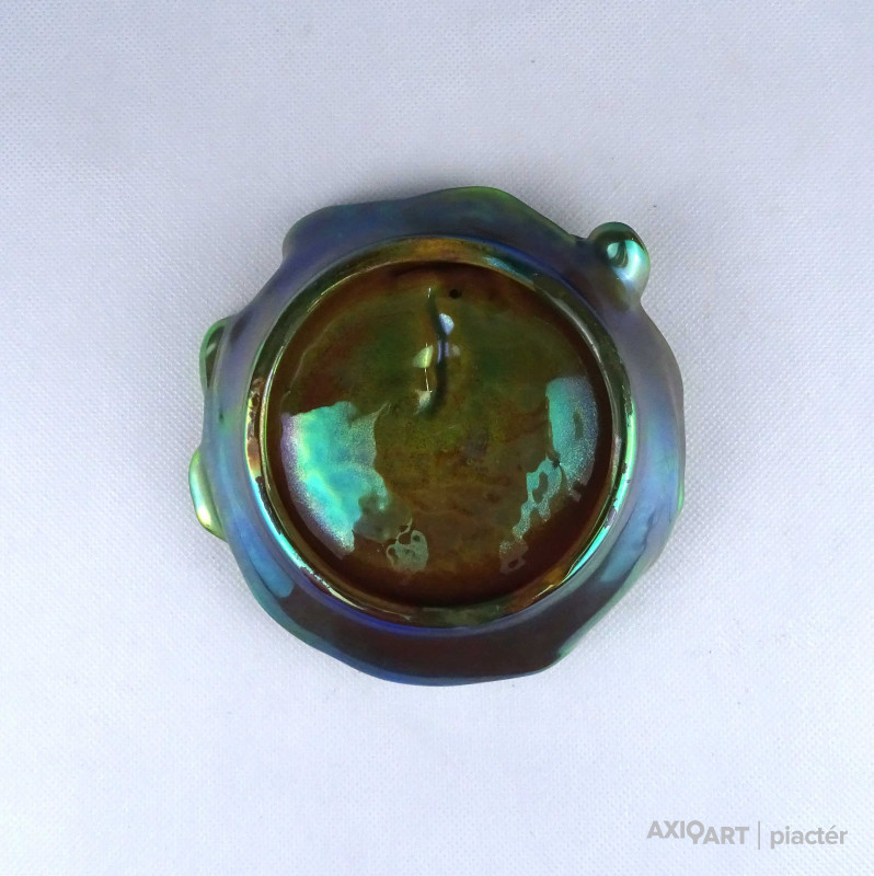 Régi zöld eozin mázas Zsolnay porcelán rákos tál 15 cm