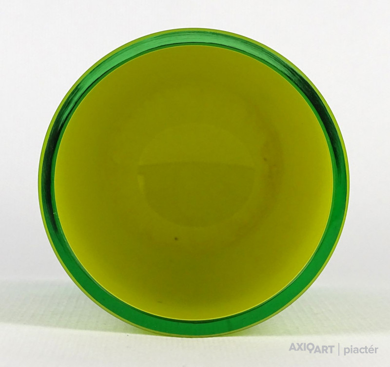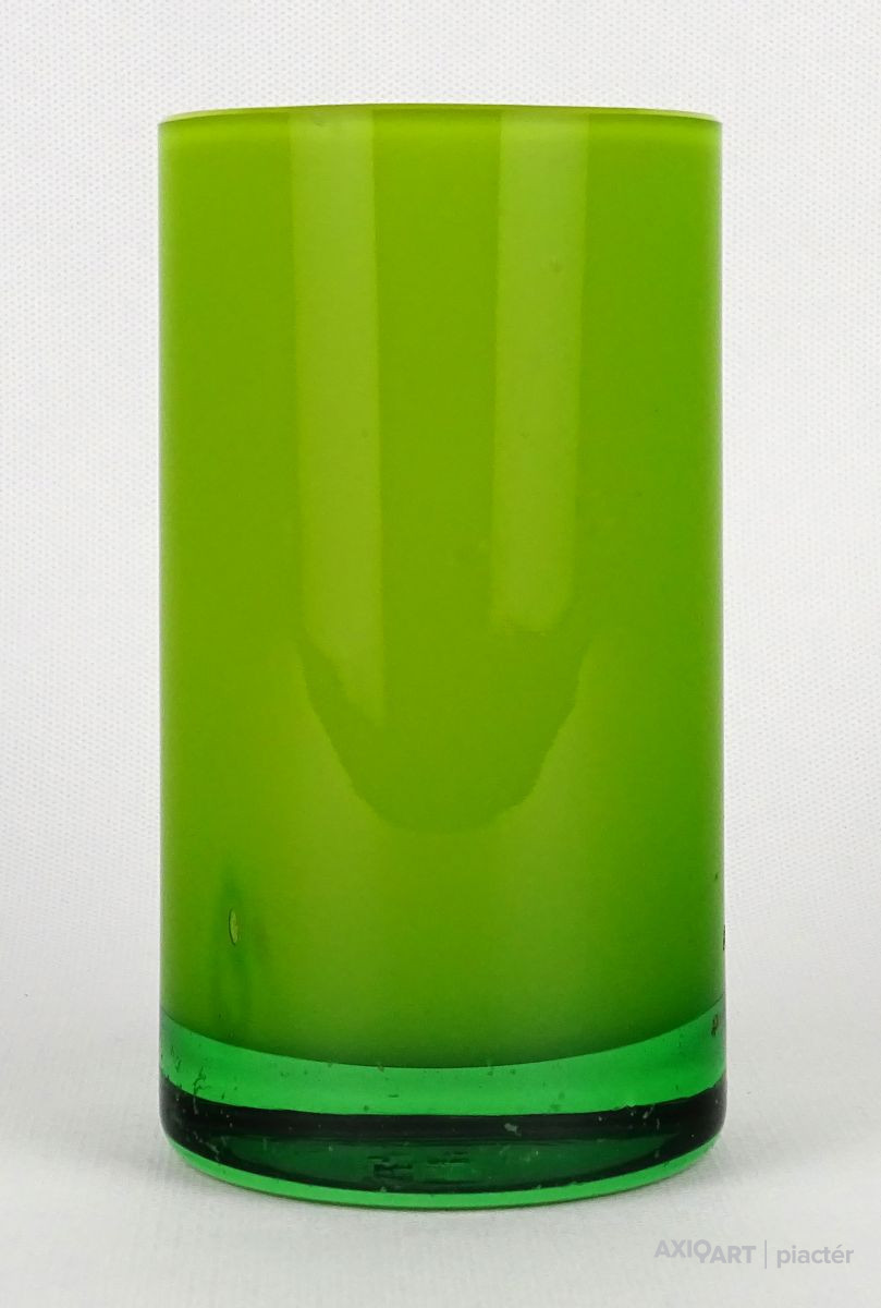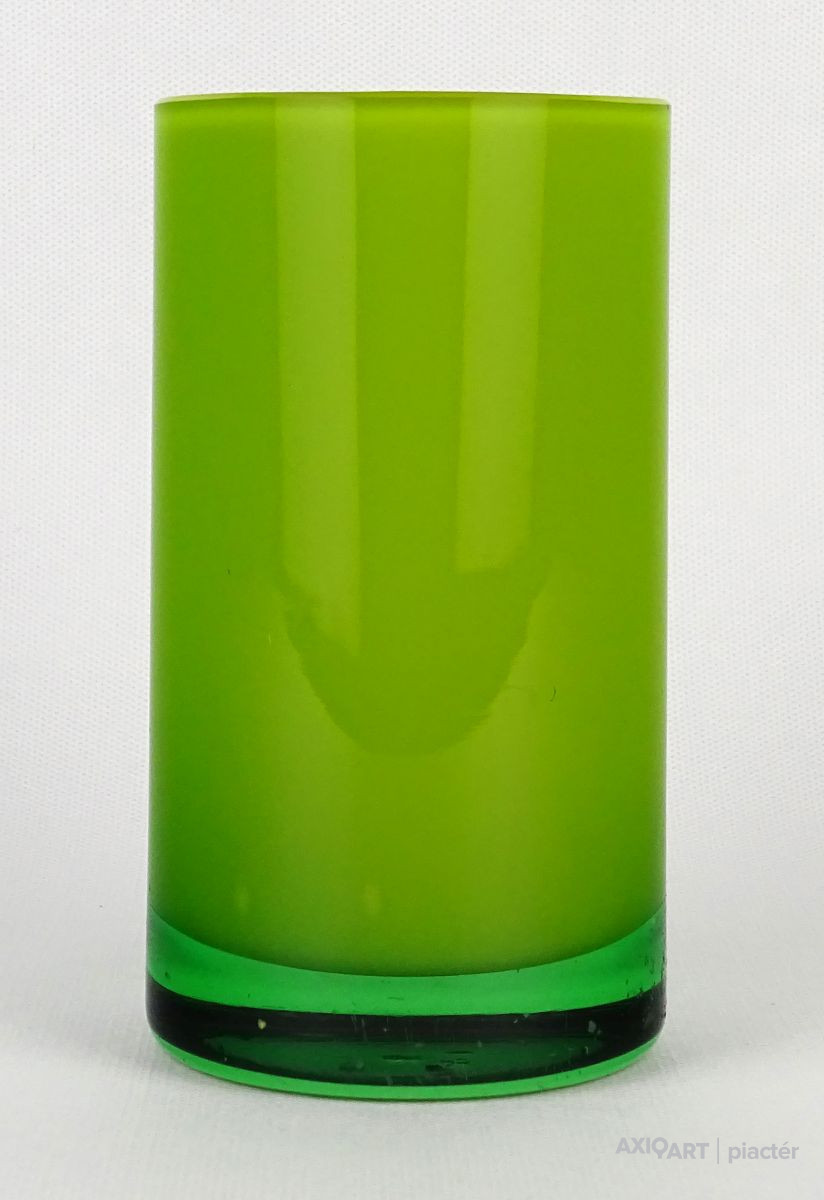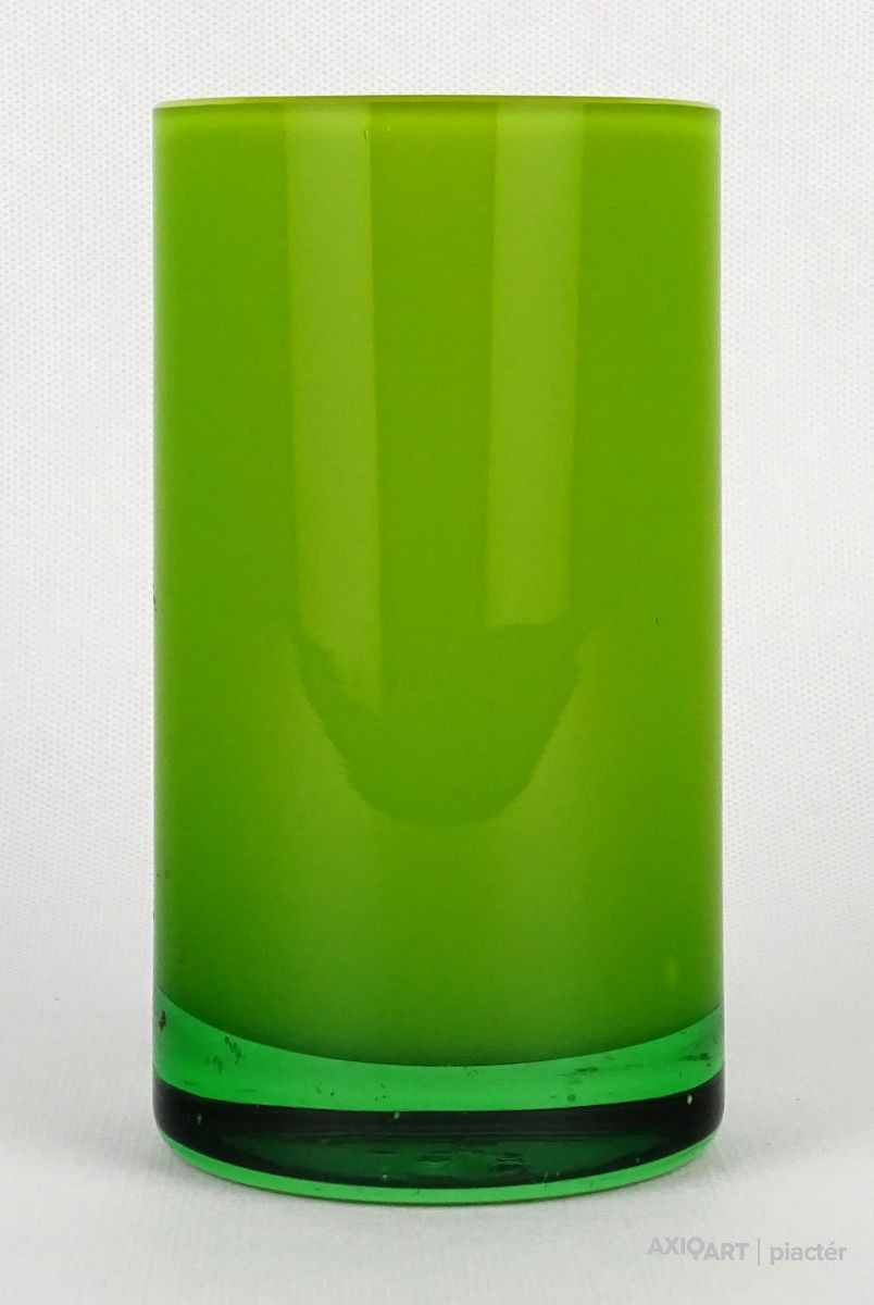 [1O212/Z046] Hibátlan állapotú, színezett fúvott üveg váza, talpas üveg váza vagy üveg kupa. Skandináv design üveg. Talpán a fúvás szakítás nyoma szépen kivehető. Magasság: 14 cm Szélesség: 6.5 cm Súly: 0.215 kg Erik Höglund  Ugrás a navigációhozUgrás a kereséshez A papról (1902–1971) lásd Erik Höglund (pap) . Erik Höglund Született 1932. január 31. Karlskrona , Blekinge megye Halál 1998. január 27. (65 éves) Maria Magdalena plébánia , Stockholm Állampolgárság svéd Foglalkozás/megbízás Tervező, művész Ismert Tervezés Koszta Boda számára Feleség Maerit Levin (sz. 1953–1967; elvált) Ingrid Höglund (sz. 1974–1998; halála) Partner Monica Backström (partner 1968-1972) Rokonok Anna Höglund (lánya) Erika Höglund (lánya) Albin Höglund (fia)  Erik Sylvester Höglund , 1932. január 31-én született Karlskronában , 1998. január 27-én halt meg a stockholmi Maria Magdalena plébánián , svéd szobrász , festő , grafikus és üvegművész . Életrajz  Erik Höglund Torsten Höglund és Jenny Jonsson könyvelő fia, valamint Tore Enar Höglund szobrász és grafikus öccse volt . Tanulmányait a stockholmi Konstfackban végezte , először dekorfestészetet Fritz Sjöströmnek , majd szobrászatot Robert Nilssonnak , végül 1951–1952-ben Harald Sallbergnek grafikát . Erik Rosén , a Boda Üveggyár 1953 és 1973 között dolgozó tervezője fogadta be , és ez idő alatt jött el, hogy átalakítsa a svéd műüveggyártást az üvegtermékek kinézetére vonatkozó új ötletek bevezetésével. Ösztöndíja többek között metszetekkel kapcsolatban, a színek és a földes, aszimmetrikus dizájn sikeres lett a külpiacon. Bodán töltött ideje alatt fenyővel, vasalással és bútorokkal is foglalkozott. Később más üveggyárakkal is együttműködött, például a Pukeberggel , a Lindshammarral és a Studioglas Strömbergshyttannal . 1968-ban Monica Backström üvegművésszel megalapította a Backström & Höglund Design AB formatervező céget, amely bútorok, háztartási eszközök és használati tárgyak tervezésével foglalkozik. Höglund tagja volt a Vet Hut AB-nek is, amelyet 1971-ben alapított a Boda glasbruk tíz tervezője szokásos munkájuk mellett: Erik Höglund, Monica Backström, Ann Wolff , Göran Wärff , Bertil Vallien , Ulrica Hydman-Vallien , Per Arne. Lundahl, Liselotte Jörgensdotter, Gunhild Sinnemark és Rolf Sinnemark . Erik Höglund szobrászként számos köztéri dekorációt készített különféle anyagokból, köztük téglából és betonból. Ezt követően gyakran dolgozott együtt olyan építészekkel, mint Jon Höjer a Höjer & Ljungqvistnél , Bengt Gate és Lars Ågren .  Kiállítás  A stockholmi Palmcrantzska gyárban korábban Ulf G. Lindén állandó kiállítása volt Erik Höglund alkotásaival. Ezt a gyűjteményt 2009 szeptemberében a karlskronai Blekinge Múzeumnak adományozták.  Közművek válogatásban  Két állat és egy játék (1966), gránit, Bredängs Torg Stockholmban. Fiskargumman a karlskronai halpiacon. Négyzet alakú oszlop Gävle-ben Erik Höglund mintegy 150 köztéri dekorációt készített üvegből, bronzból, kovácsolásból, téglából, gránitból és betonból. Kerékpárosok I (1956), bronz, a trelleborgi oktatási intézmény Kerékpárosok II (1957), bronz, a karlskogai oktatási intézmény Kerékpárosok III (1957), bronz, stockholmi Hökarängens iskola Az élő szó (1958), festmény a nybrói városi könyvtárban Kerékpárosok IV (1958), bronz, Handverkstorget Sandvikenben Kerékpárosok V (1959), Sjöboskolan, Borås Falfestmény üvegablak (1962) a borgholmi templomban Kristallglasskogen (1964), üvegmozaik fal, Ellagårdsskolan Täby községben A tudás fája (1966), vasműves és üveg, Folkets Hus Nybroban Állatszobrok (1964-67), gránit, Hallsberg Két állat és egy játék (1966), gránit, Bredängs torg Stockholmban Tó szökőkúttal (1967), gránit, Trelleborg Ülő terhes nő (1971), bronz, Haganässkolan Älmhultban Hajó halászokkal (1972), vas, üveg és fa, Hotel Witt Kalmarban Négyzet alakú oszlop (1971-74), beton, Stortorget Gävle -ben A súlyemelő (1974), bronz, az östersundi sportcsarnok Gyűrűk a vízen (1976-77), bronz, Rödeby Torg , Karlskrona önkormányzat Az élet játéka , tégladomborműves fal és régi érmék , üveg, mindkettő 1979–1980, Sparbanken Linköpingben Úszók (1980), kovácsoltvas, úszócsarnok Rödebyben , Karlskrona önkormányzat Cirkuszgömb (1980-81), kovácsoltvas, Kristianstad megyei tanács Fiskargumman (1981-82), bronz, halpiac Karlskronában Az olvasócsalád (1983), bronz és üveg, Kalmár Városi Könyvtár Életmentő (1985), réz, úszócsarnok Haganässkolanban Älmhultban Dans bort i vägen (1985), bronz, Torsås volt Anya és gyermeke , bronz, Trelleborg A büszke apa és Két ember , bronz, Eskadern lakónegyed Linköpingben Játssz szobrot téglából, Lönneberga óvoda, Norra Fäladen Lundban  Forrás: wikipédia