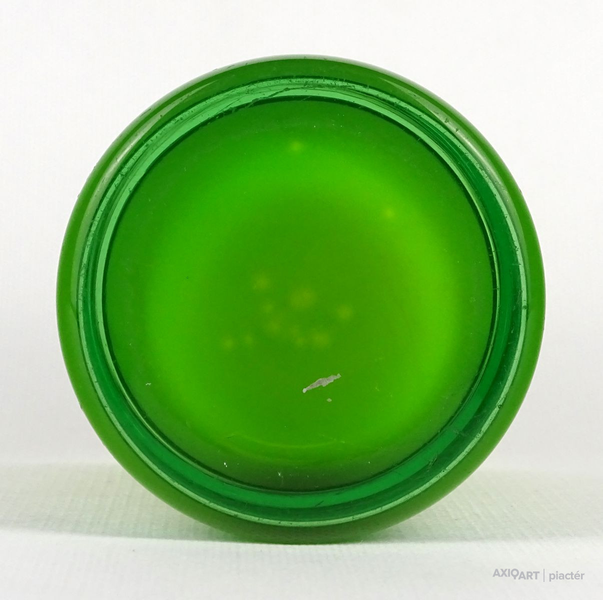 Hibátlan állapotú rétegelt vastagfalú zöld skandináv üveg váza, svéd üveg váza. Fúvott üveg váza.