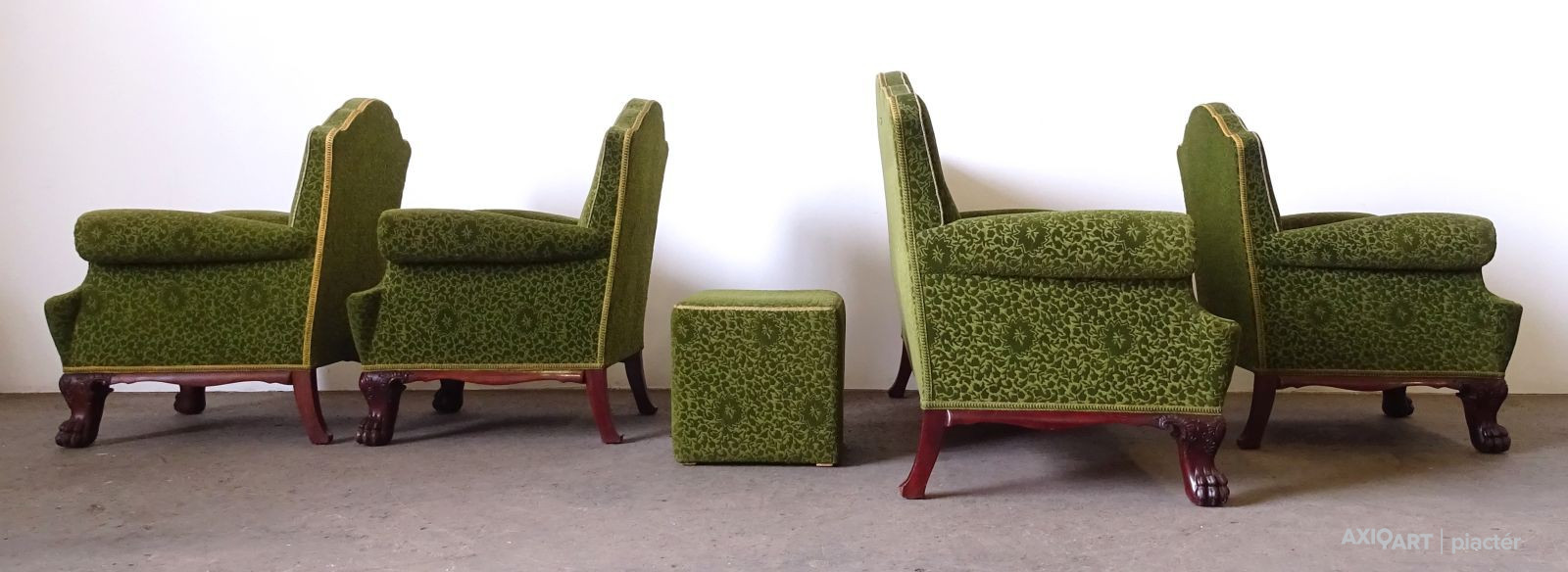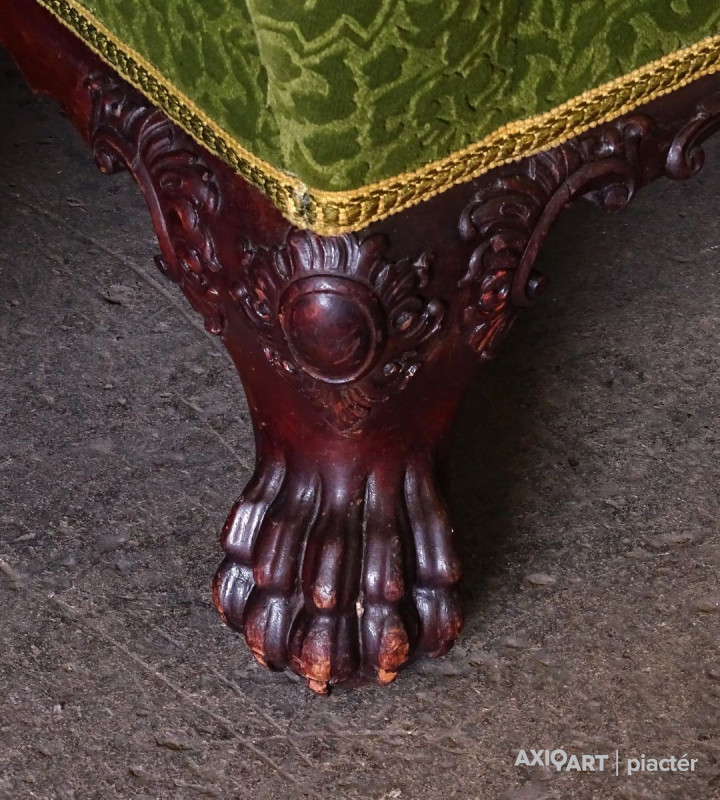 Régi zöld kárpitozott oroszlánlábas Berger ülőgarnitúra