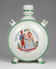 Szép állapotú, Zsolnay porcelán kulacs. Egyik oldalán magyaros huszár és menyecske, másik oldalán szerenádot adó legény jelenet.