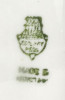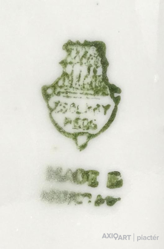 Alján zöld Zsolnay-Pécs öttornyú márkajelzés:
