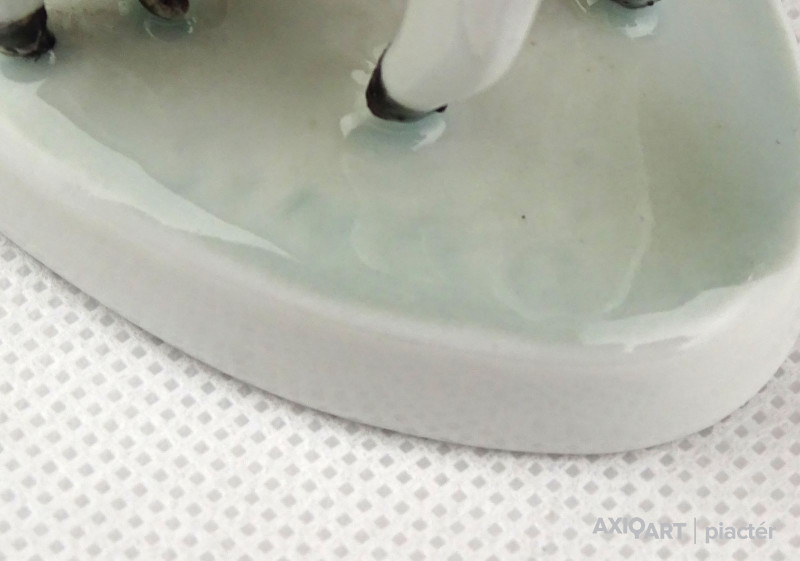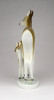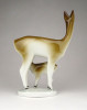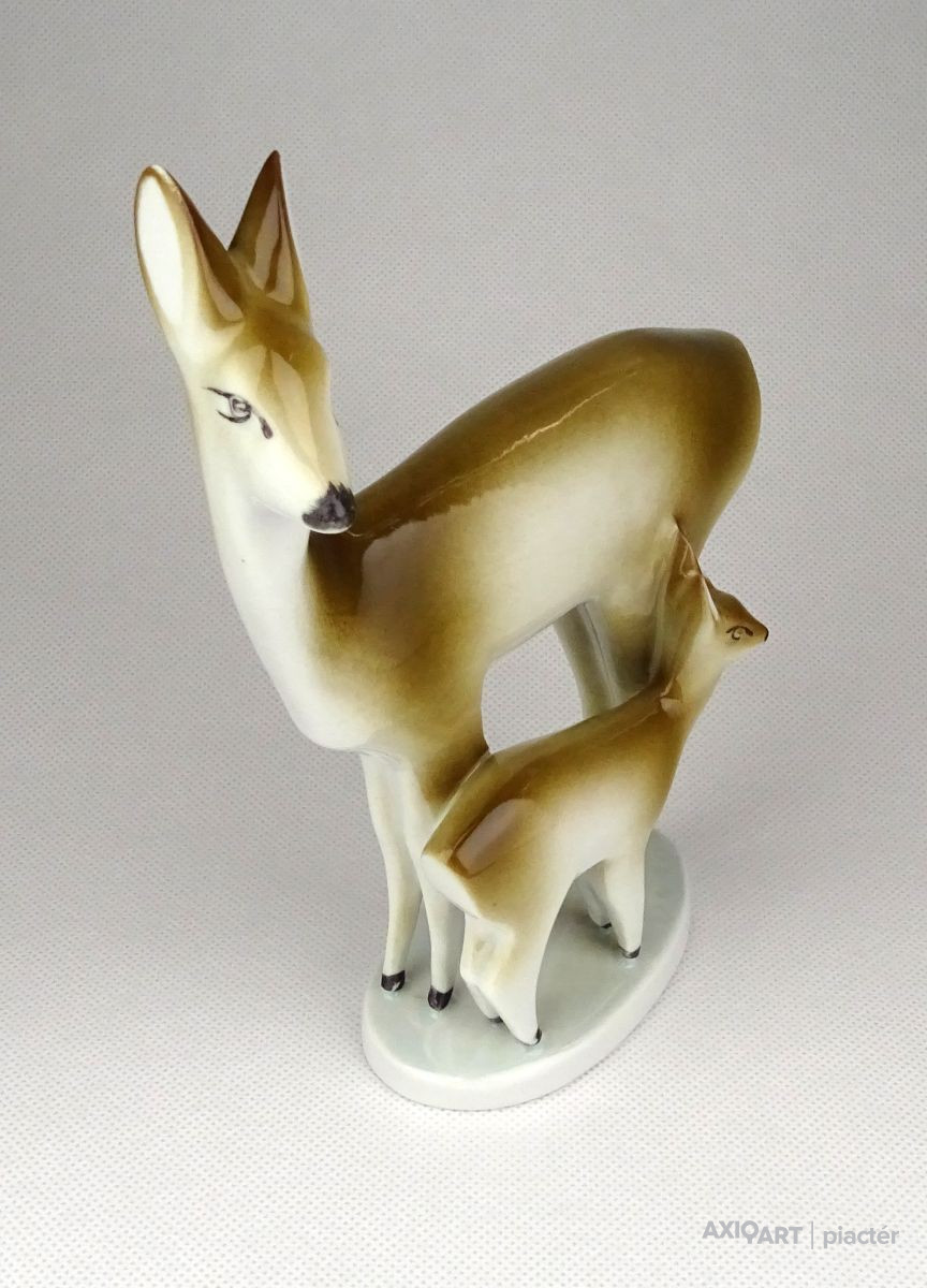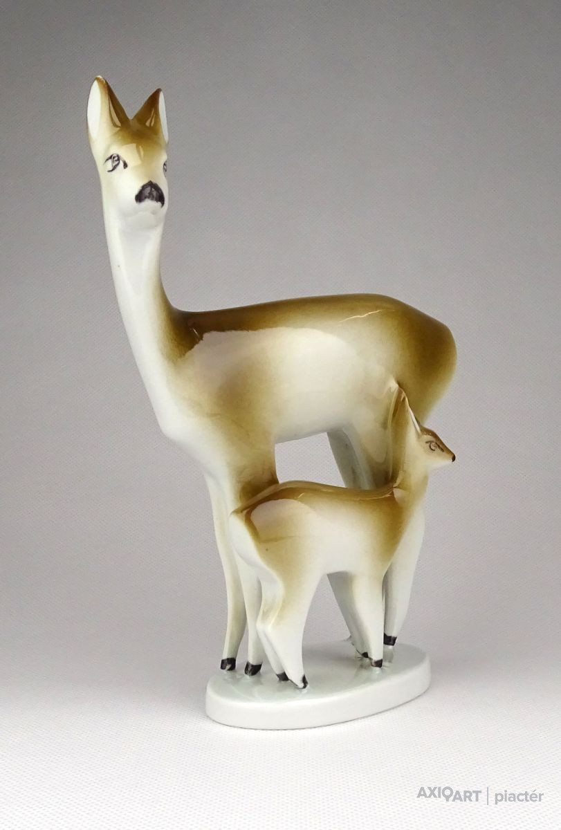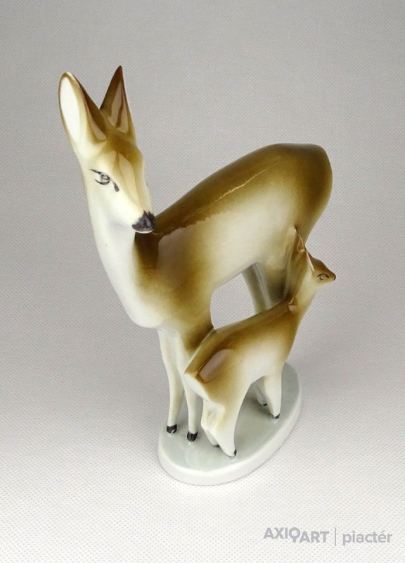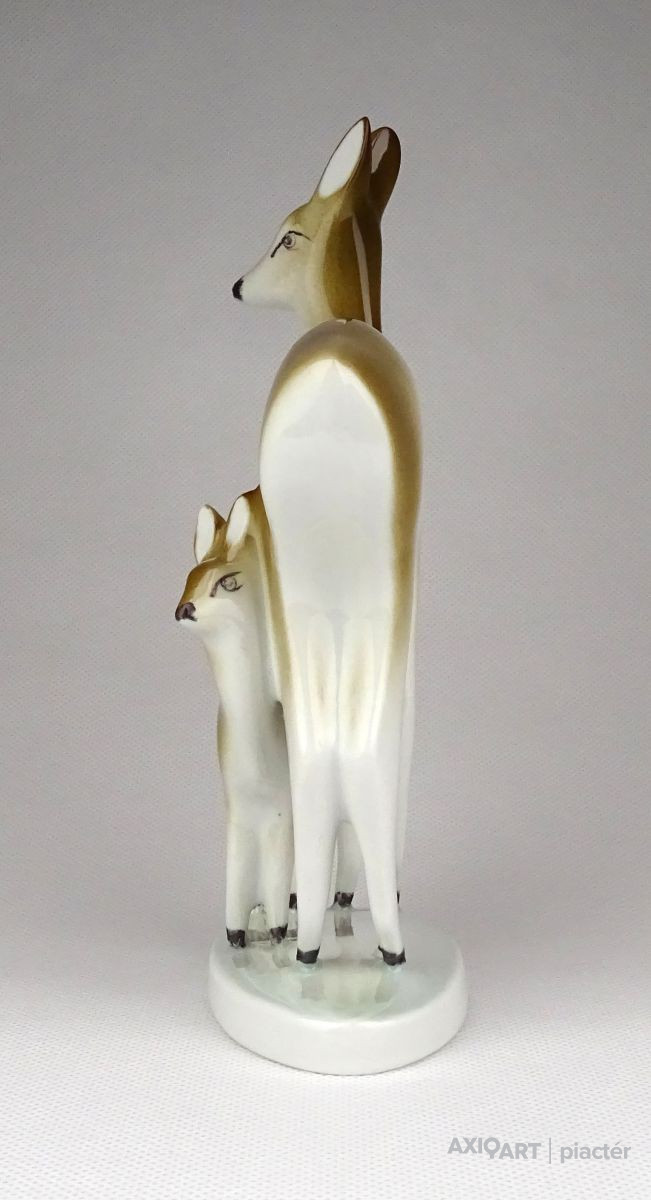 Régi, hibátlan állapotú Zsolnay porcelán őz, őzike páros, szobor talapzaton. Anya és gidája.